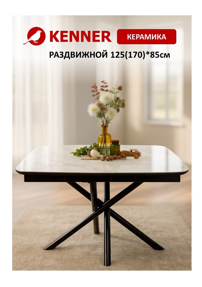Стол DF1250 черный/керамика белая глянец