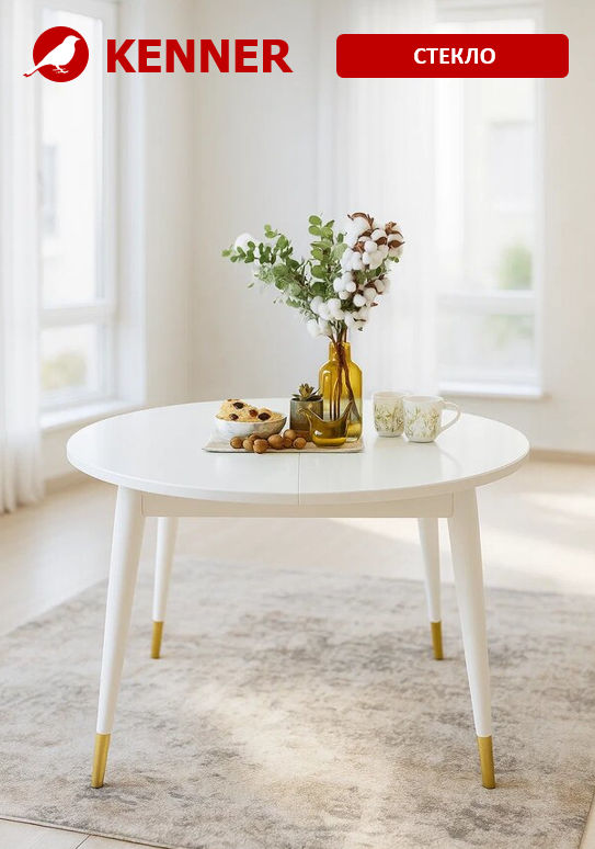Стол раскладной KENNER K1000 цвет венге, столешница - стекло белое сатин. Размер стола компактный и в то же время достаточно вместительный для ежедневного использования 4 человек; по каждой стороне достаточно места чтобы поставить 4 широких стула вокруг стола; механизм раздвижения со стеклянной вставкой позволяет комфортно посадить еще 2 гостей.