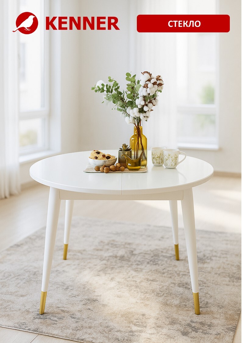 Стол раскладной KENNER K1000 цвет венге, столешница - стекло белое сатин. Размер стола компактный и в то же время достаточно вместительный для ежедневного использования 4 человек; по каждой стороне достаточно места чтобы поставить 4 широких стула вокруг стола; механизм раздвижения со стеклянной вставкой позволяет комфортно посадить еще 2 гостей.