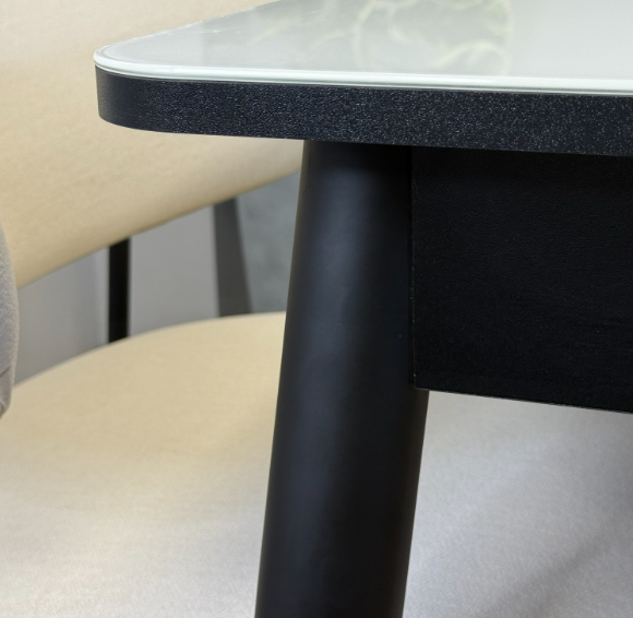 Компактный и очень функциональный стол, идеален для использования как на небольшой кухне, так и в качестве уютной обеденной зоны в гостиной. Столешница из стекла надежно защищает стол от влаги и горячего. Синхронный механизм раскладки позволяет легко раздвинуть стол одной рукой любому члену семьи. Вставка с материалом столешницы осталяет стол монолитным в разложенном состоянии. Стол максимально устойчив благодаря особому, усиленному креплению опор и регулировочным винтам.