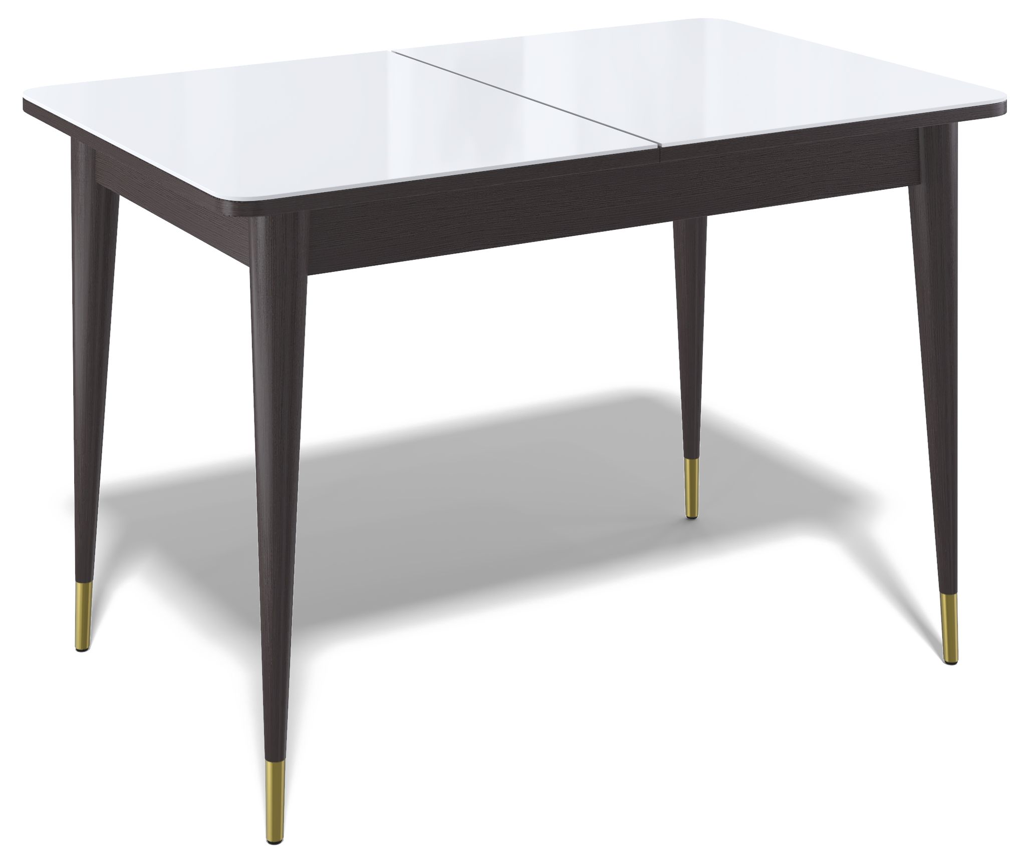 Стол обеденный KENNER K1100 цвет венге столешница - стекло белое. Самая функциональная форма стола из возможных. Стол можно поставить вплотную к стене по любому краю, царговый пояс позволяет поставить 2 стули шириной до 47см, широкая вставка со стеклом в цвет столешницы поможет вам удобно разместить еще 2 гостей.
