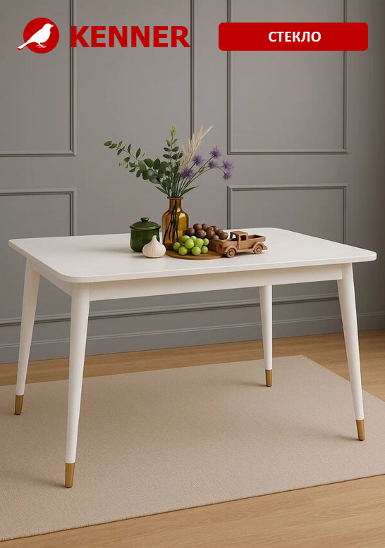 Стеклянный стол великолепен своим внешним видом и гармонично дополняет любые белые детали на вашей кухне. Благодаря устойчивой конструкции из дерева он обеспечивает комфорт при использовании.