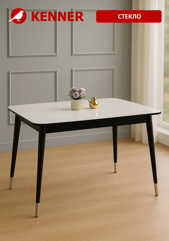 Стеклянный стол великолепен своим внешним видом и гармонично дополняет любые белые детали на вашей кухне. Благодаря устойчивой конструкции из дерева он обеспечивает комфорт при использовании.