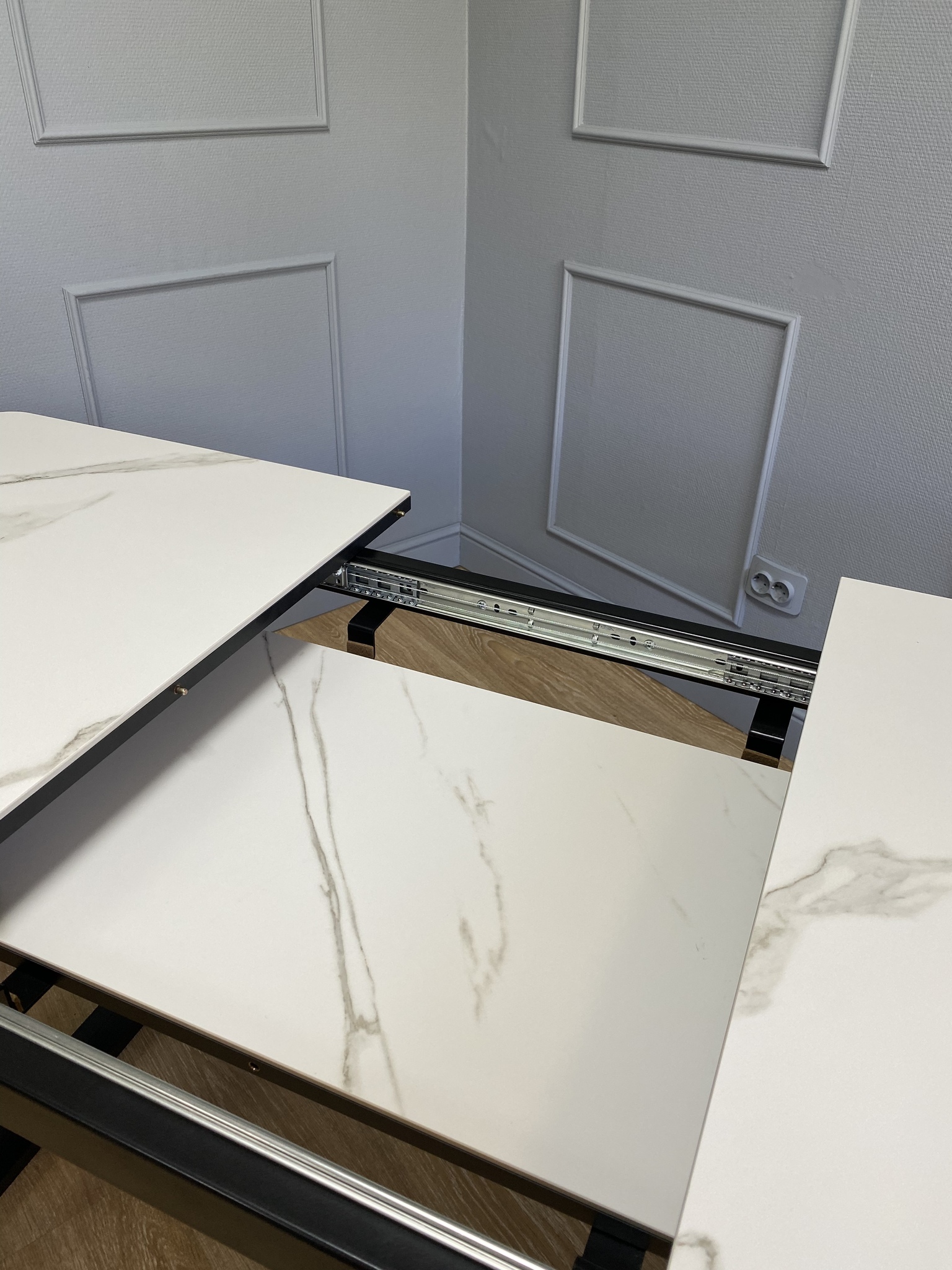 Стол с керамической столешницей и синхронным механизмом раскладки. Скругленные края для безопасности. Подстолье изготовлено из прочных материалов. Стильный дизайн и высокое качество сборки.