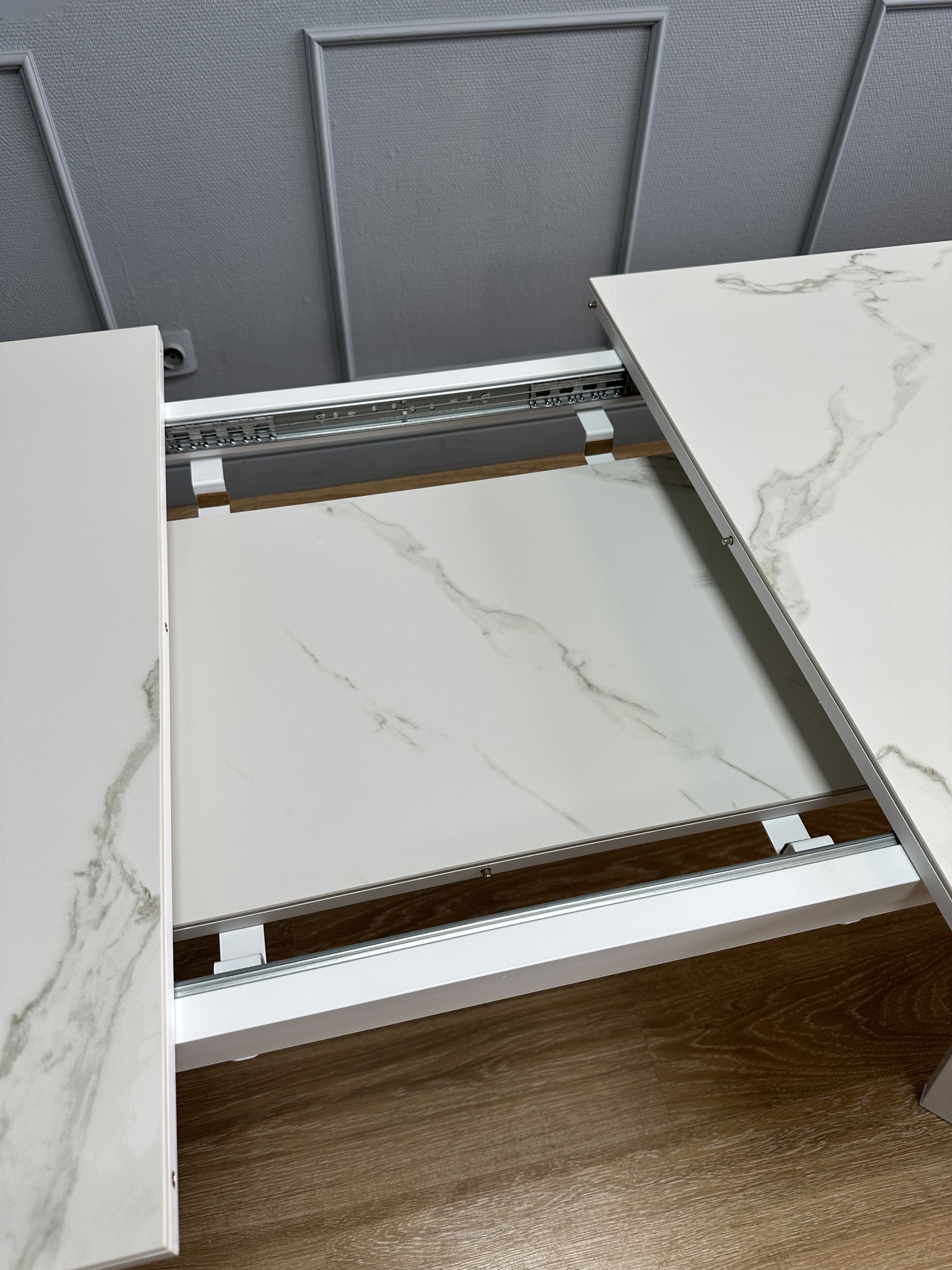 Стол с керамической столешницей и синхронным механизмом раскладки. Скругленные края для безопасности. Подстолье изготовлено из прочных материалов. Стильный дизайн и высокое качество сборки.