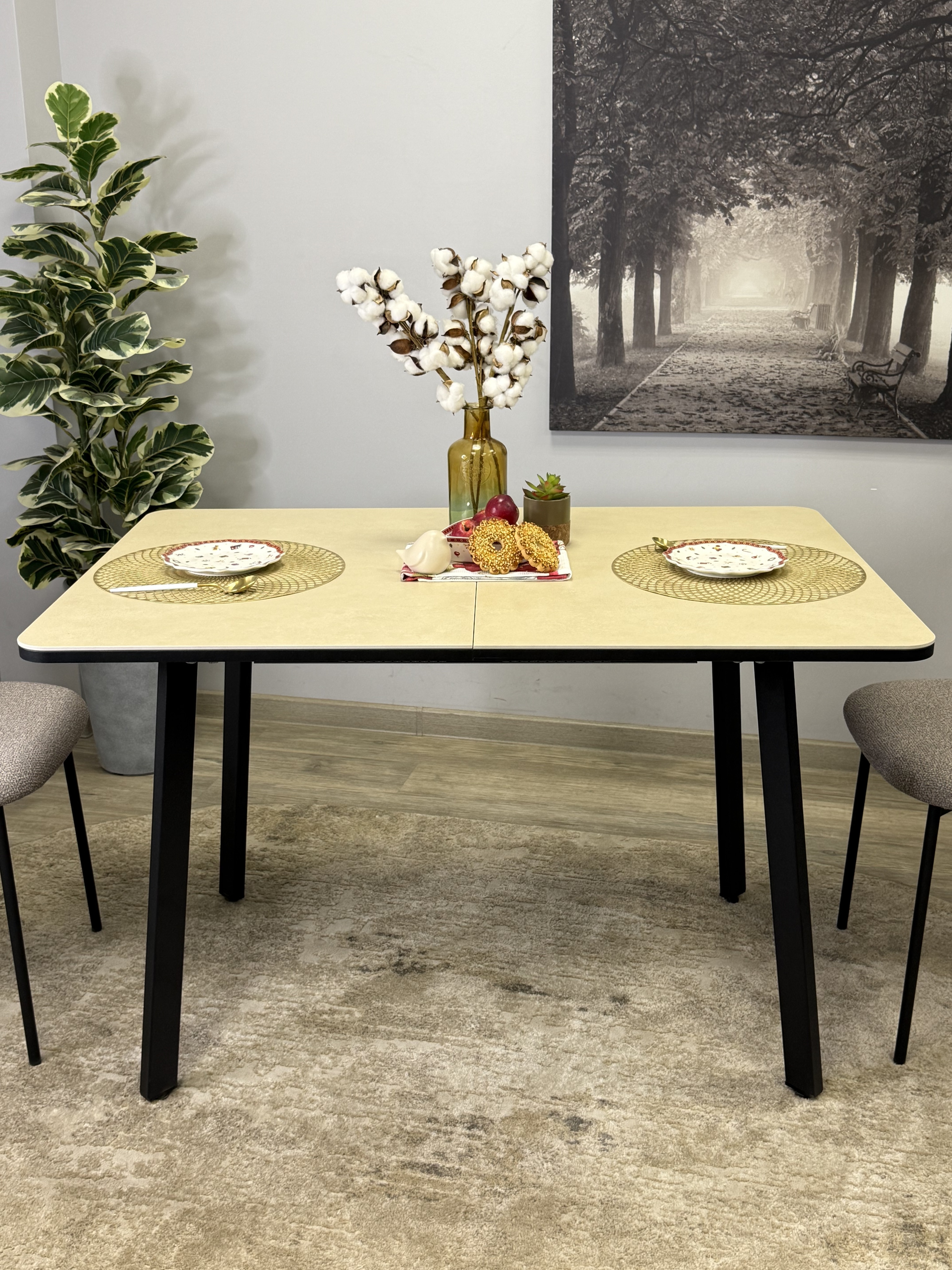 Идеальный стол для большой семьи, которая иногда собирается за одним столом. В сложенном виде стол достаточно компактный для ежедневного использования и максимально функционален. В разложенном - он комфортно разместит до 10 человек