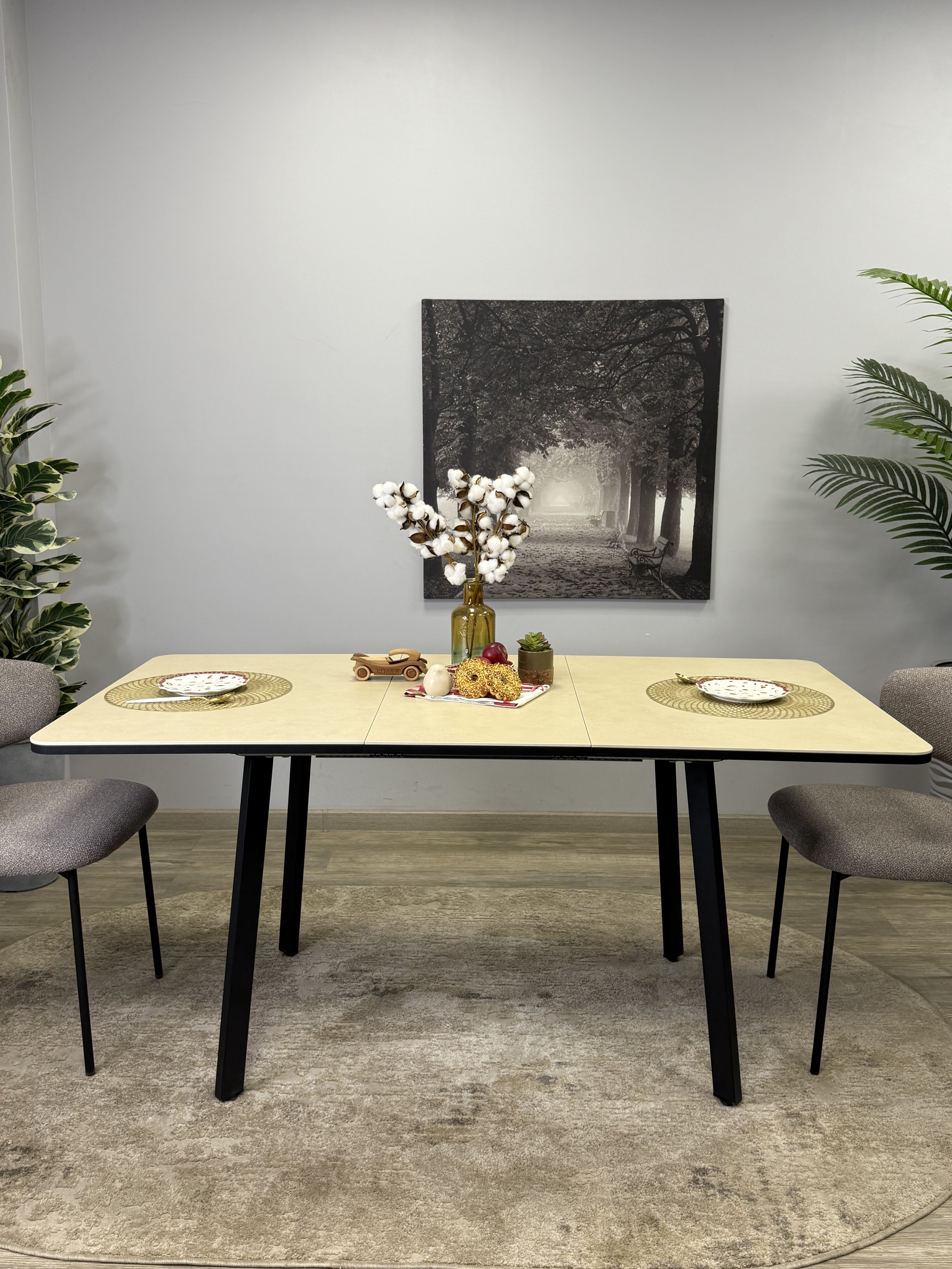 Стол KENNER AK900, Стол с керамической столешницей и красивыми, функциональными опорами. Система раскладки увеличивает стол еще на 30 см благодаря синхронному механизму раздвижения и прогрессивного механизму вставки "дельфин". Вставка с керамикой очень тяжелая и требует специального механизма, предназначенного для керамики. Стол сможет разложить даже ребенок