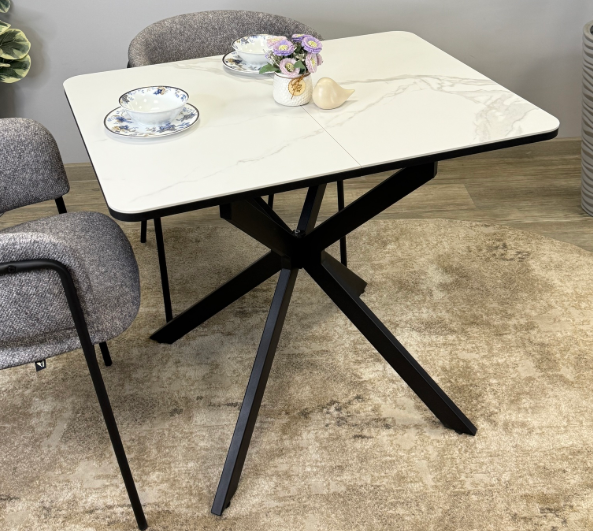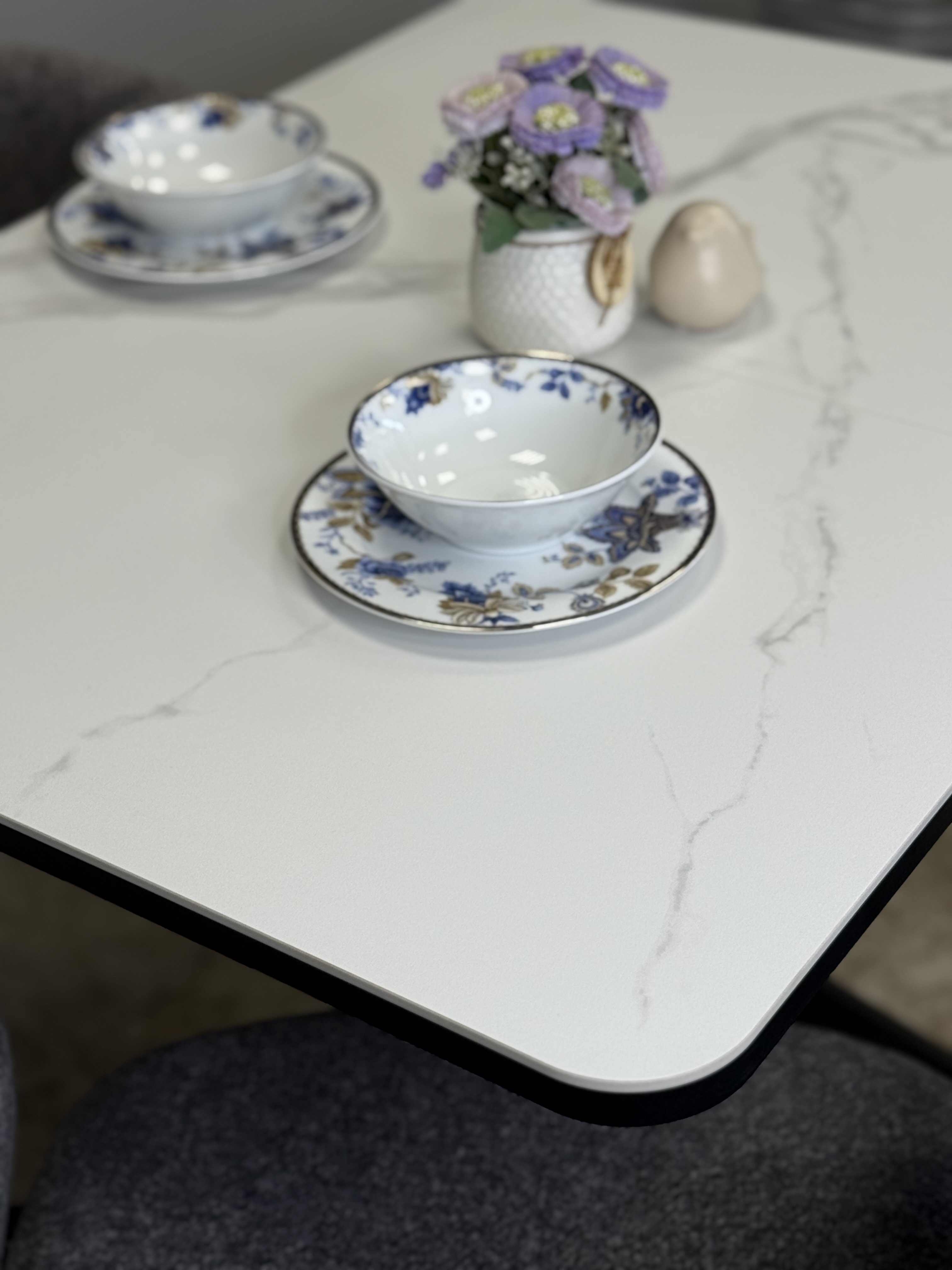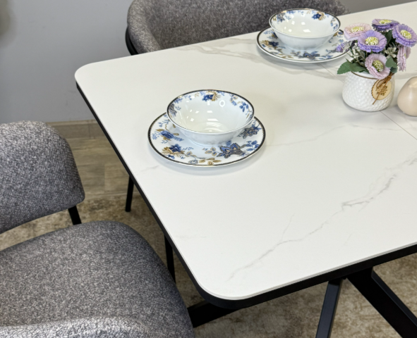 Прямоугольный стол с керамикой защищает стол от любого внешнего воздействия, а ножки выполнены настолько эргономично, что к столу удобно сесть с любой стороны