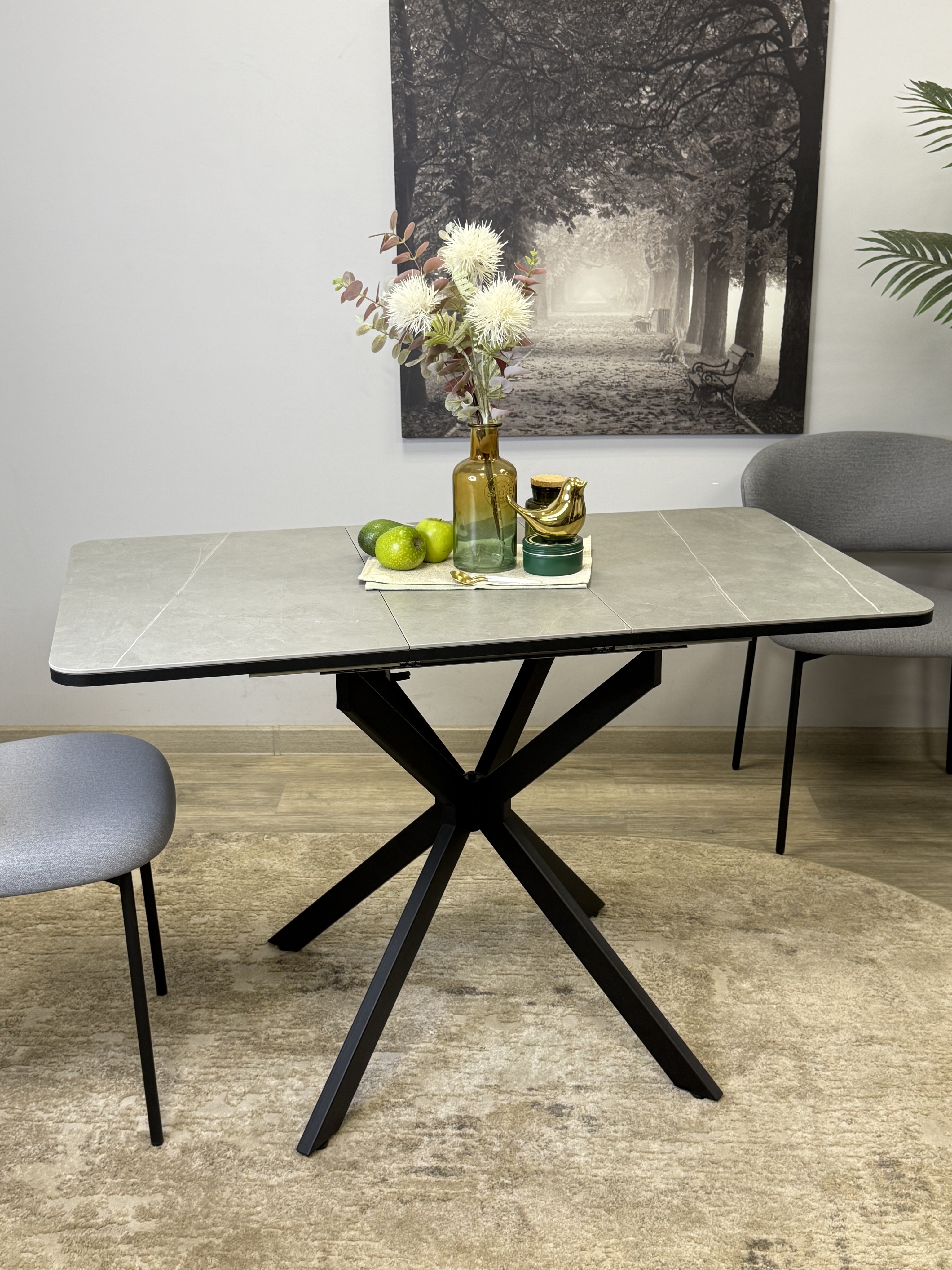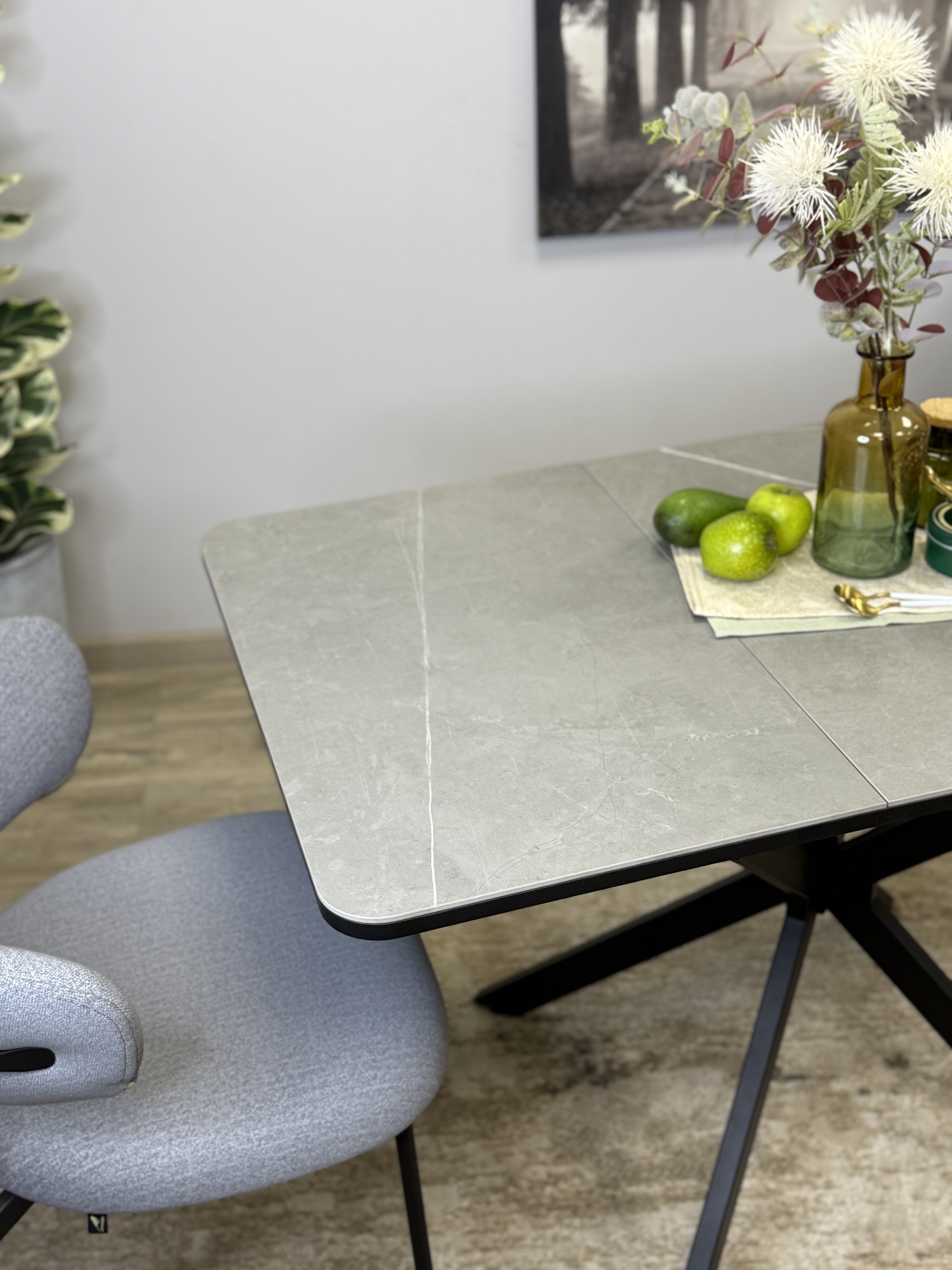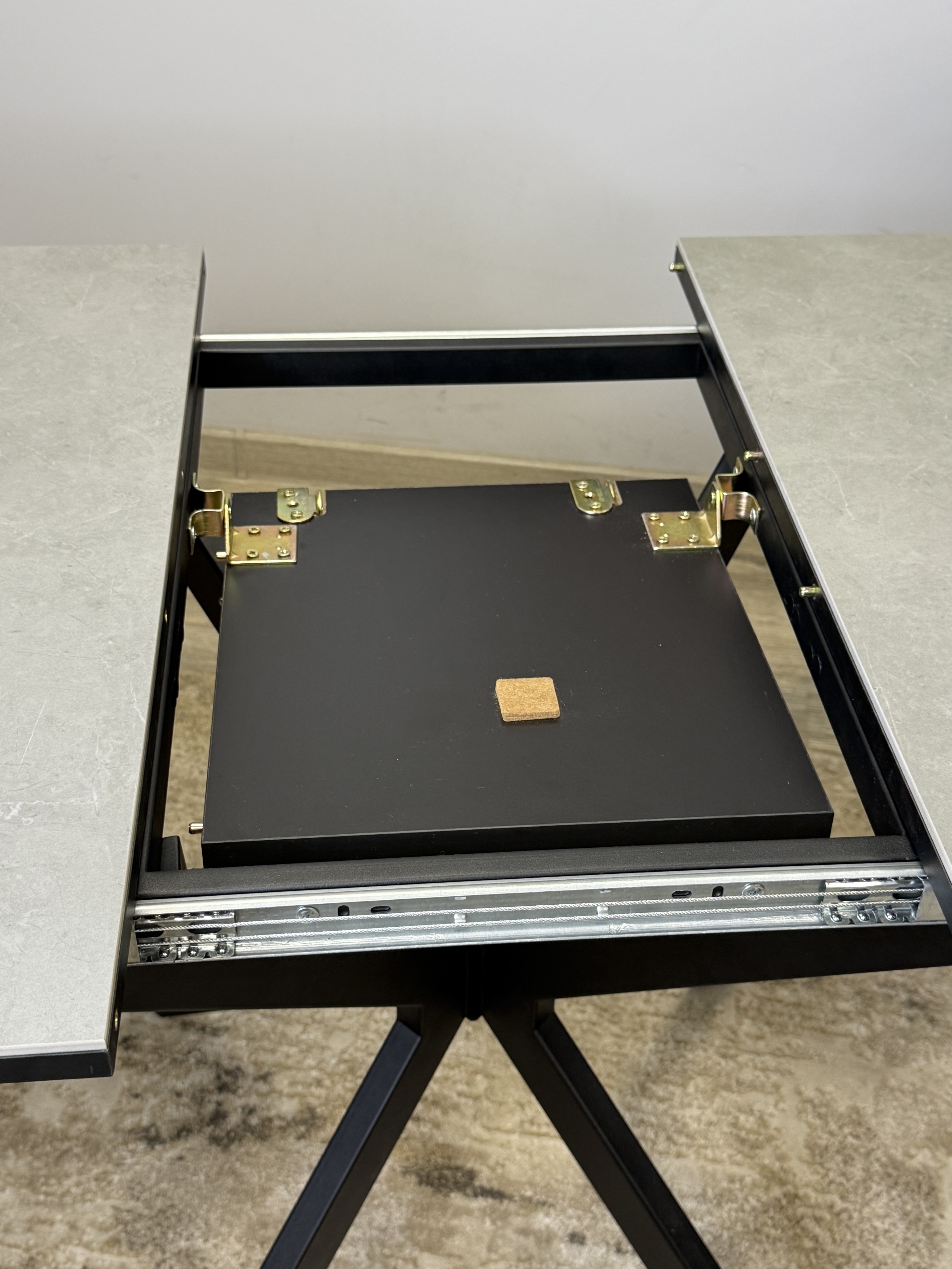 Прямоугольный, компактный стол с, который спокойно увеличит свой размер для ваших нужд. Качественная керамика защищает стол от любого внешнего воздействия, а ножки выполнены настолько эргономично, что к столу удобно сесть с любой стороны