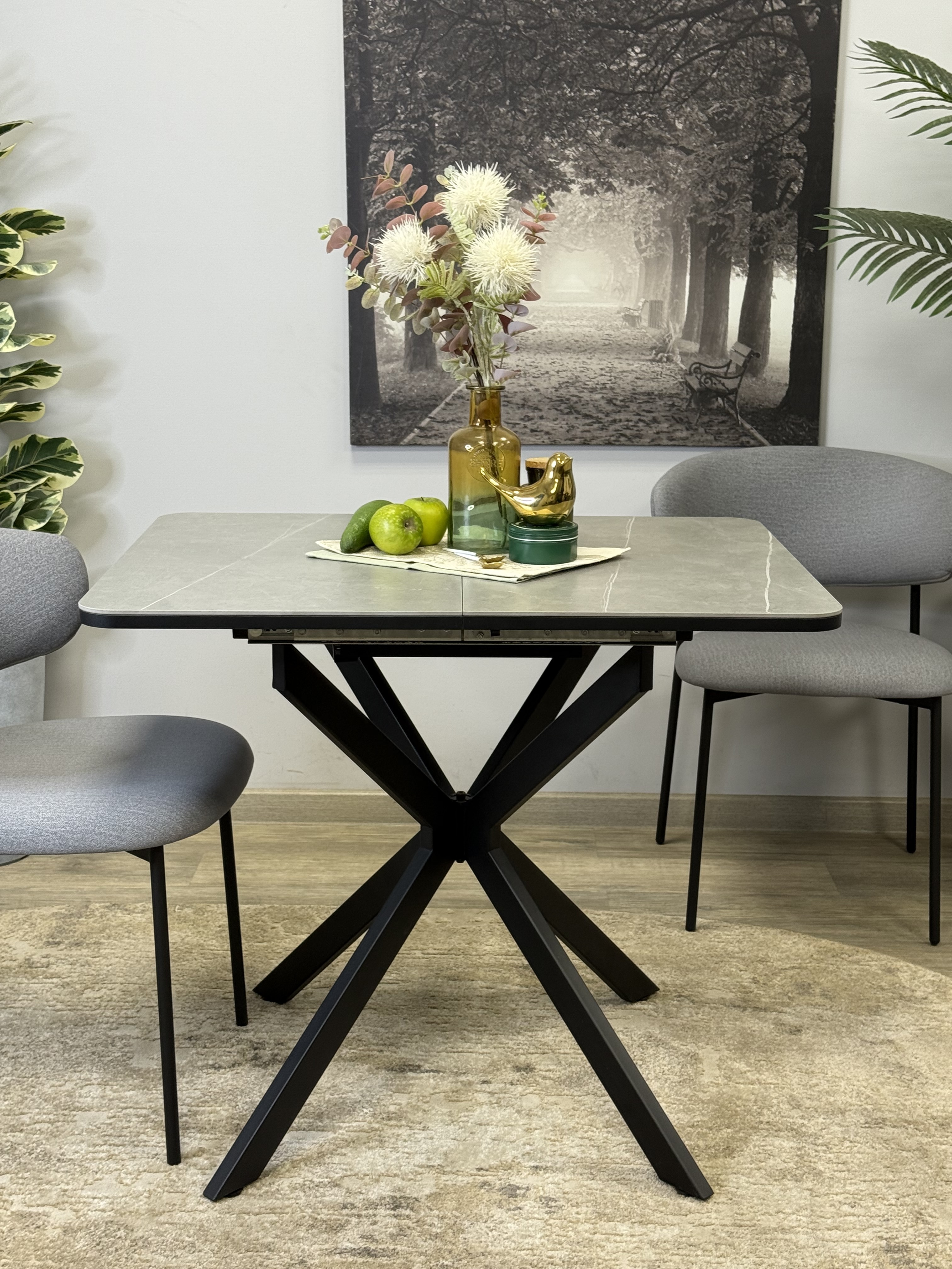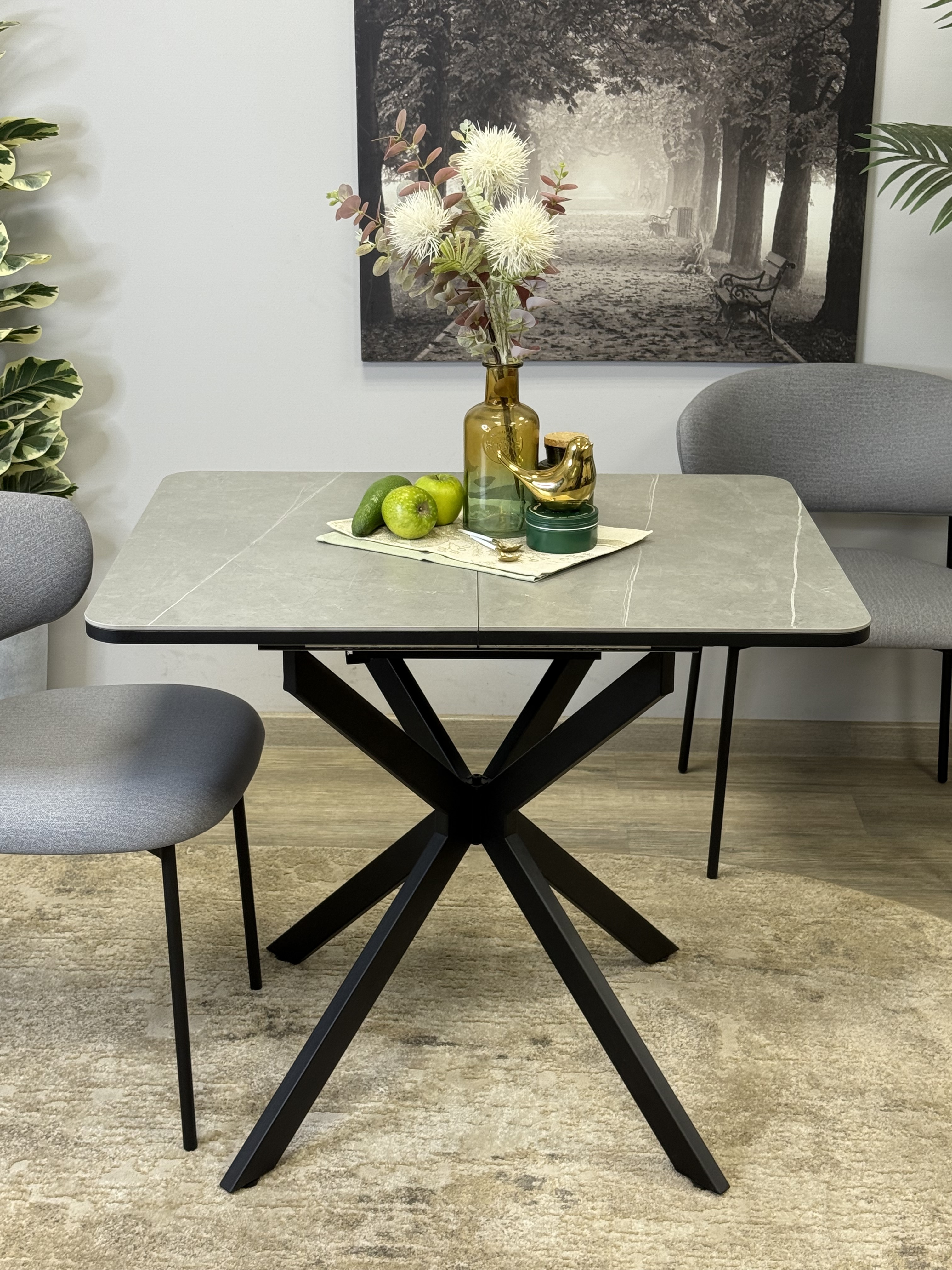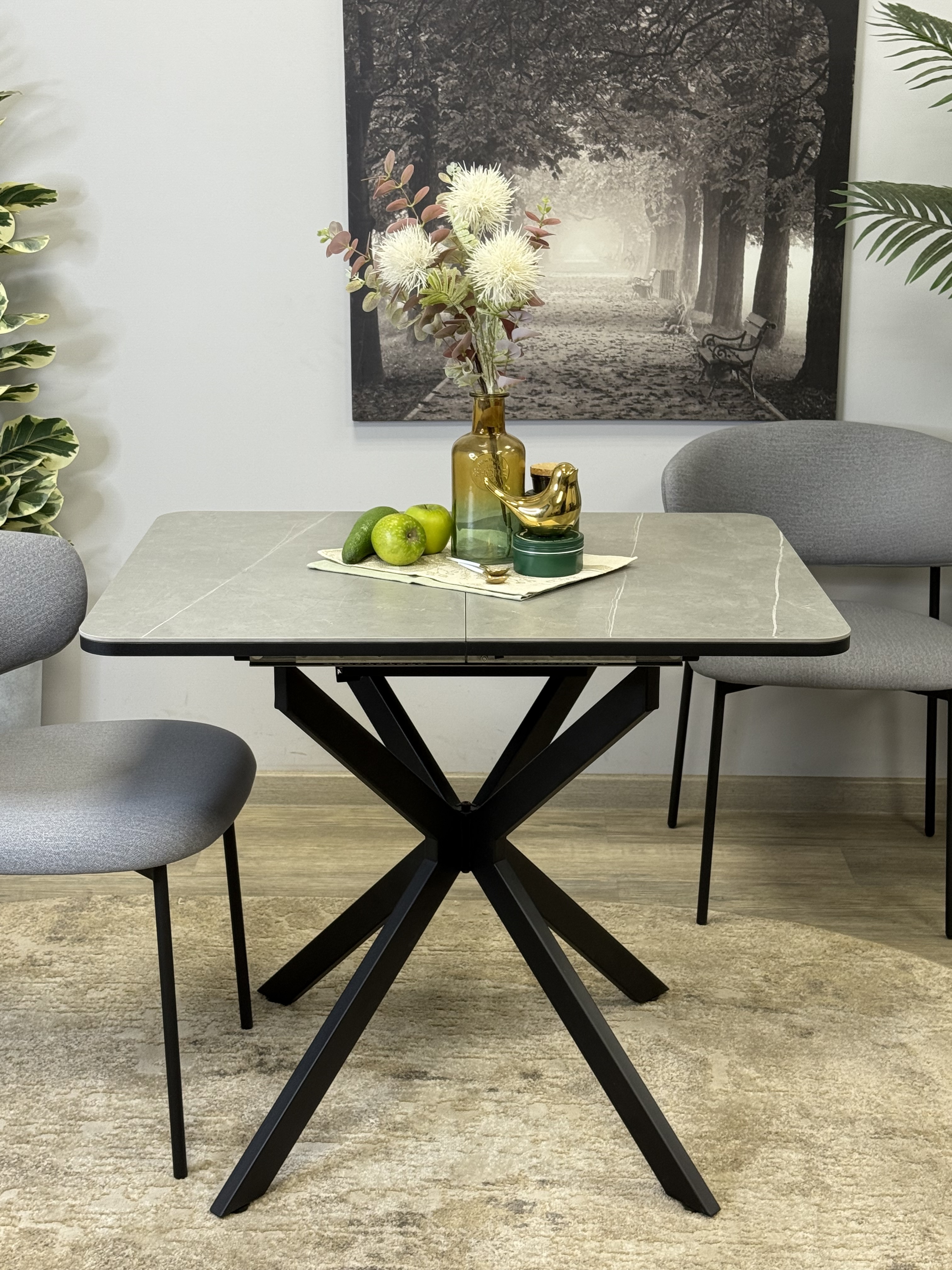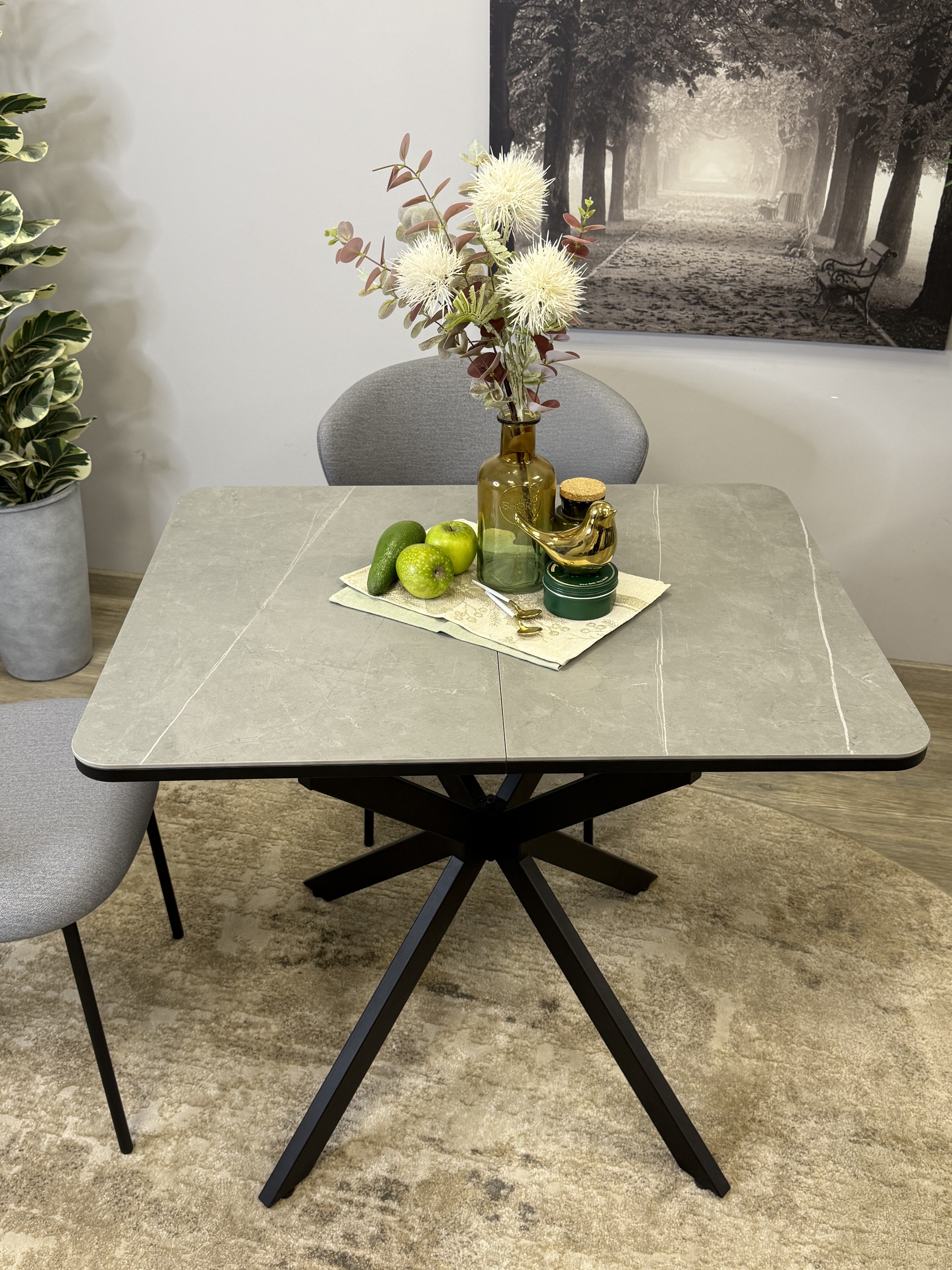 Прямоугольный, компактный стол с, который спокойно увеличит свой размер для ваших нужд. Качественная керамика защищает стол от любого внешнего воздействия, а ножки выполнены настолько эргономично, что к столу удобно сесть с любой стороны