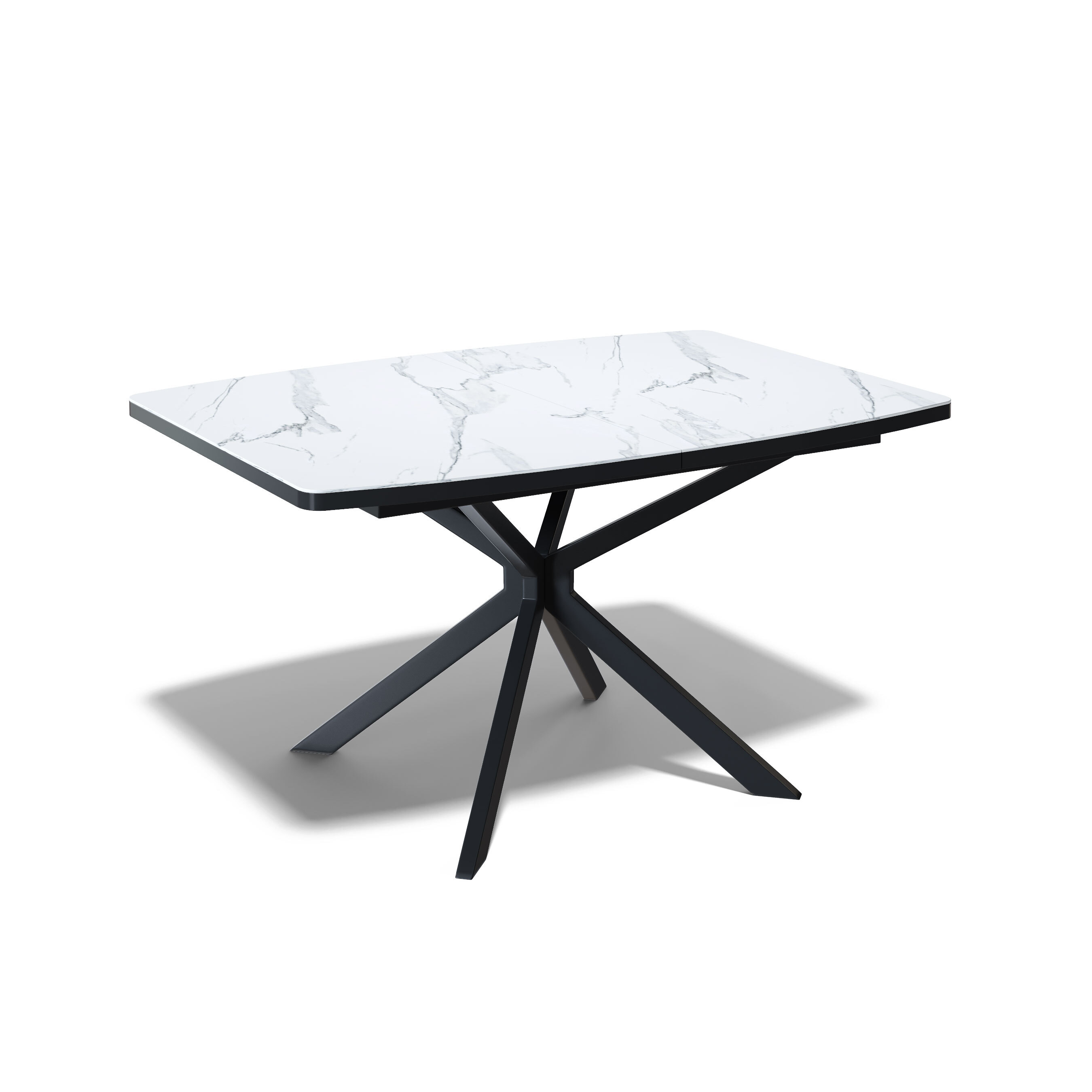 Современный стол на центральных металлических опорах, большого сечения, керамической столешницей с декором "мрамор белый". Стол в сложенном состоянии спокойно размещает 8 человек и 12 человек в разложенном. Большим преимуществом стола является торцевой механизм раскладки. . Механизм не перекашивается при открывании одной рукой, на каждое крыло может спокойно опереться человек.
