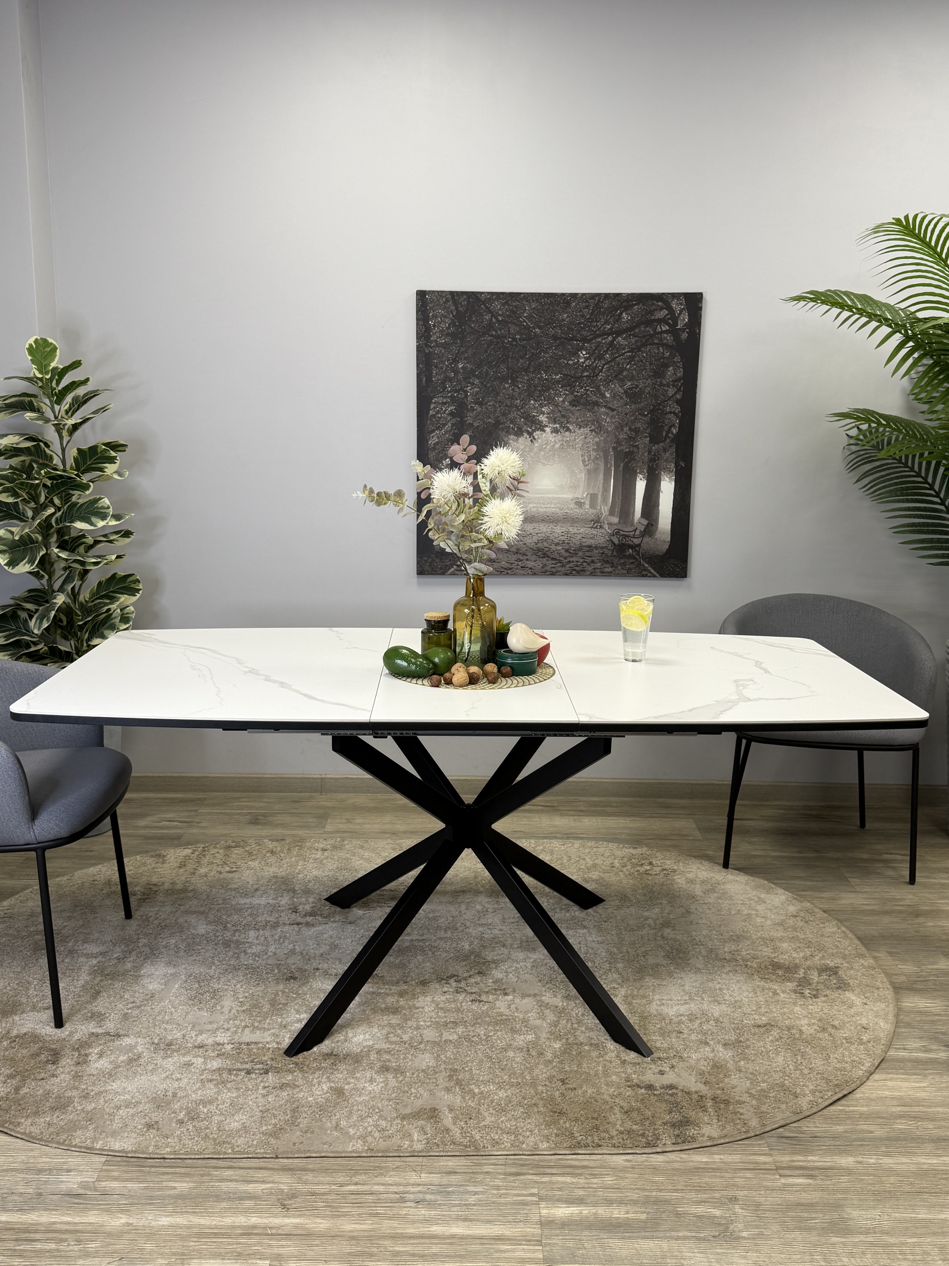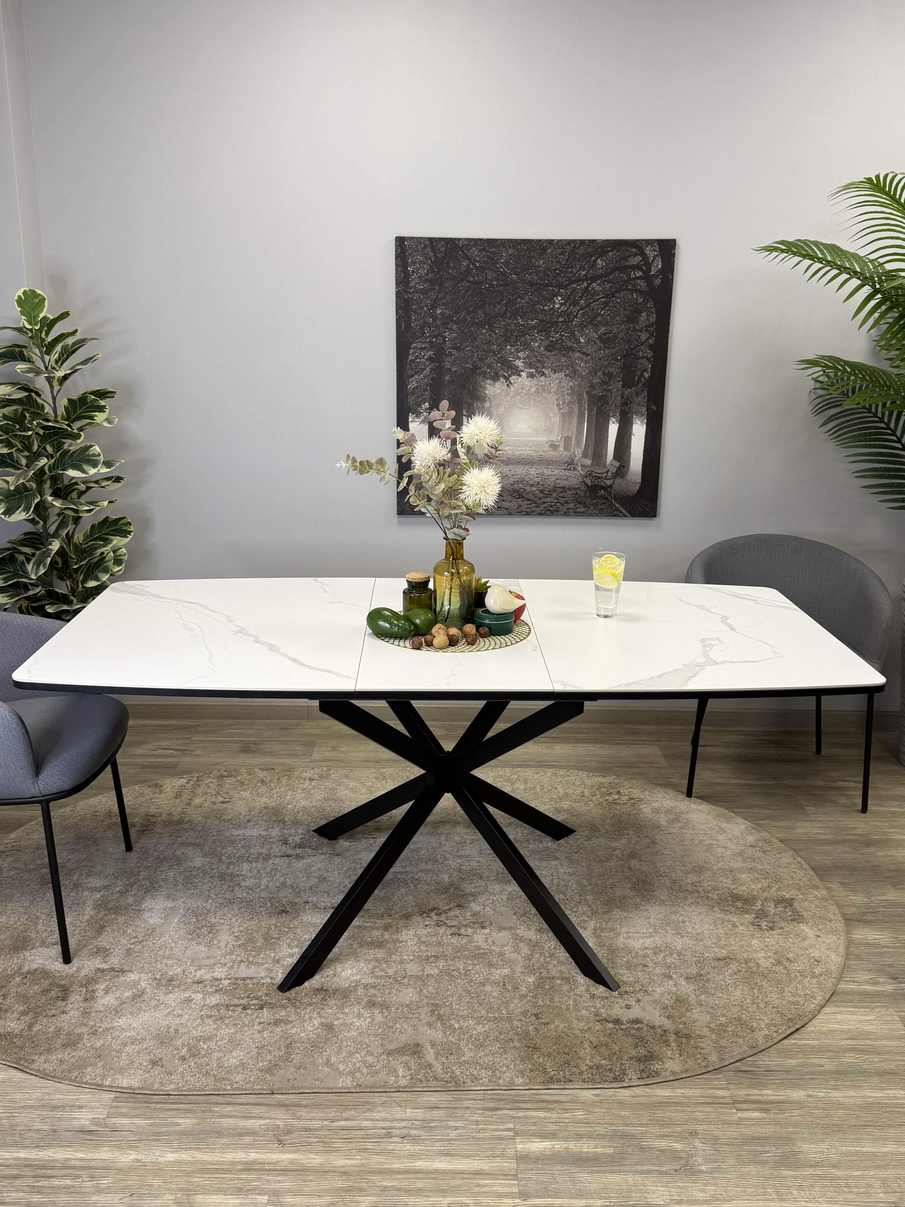 Компактный стол который всегда готов увеличить свой размер для вас благодаря своей вставке, удобный и очень практичный стол с оптимальной формой столешницы и очень надежным основанием