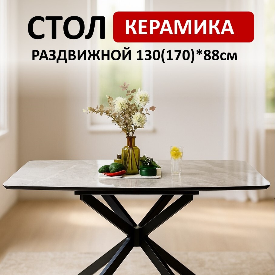 Cтильный прямоугольный стол с высококачественной керамической столешницей и надежными опорами