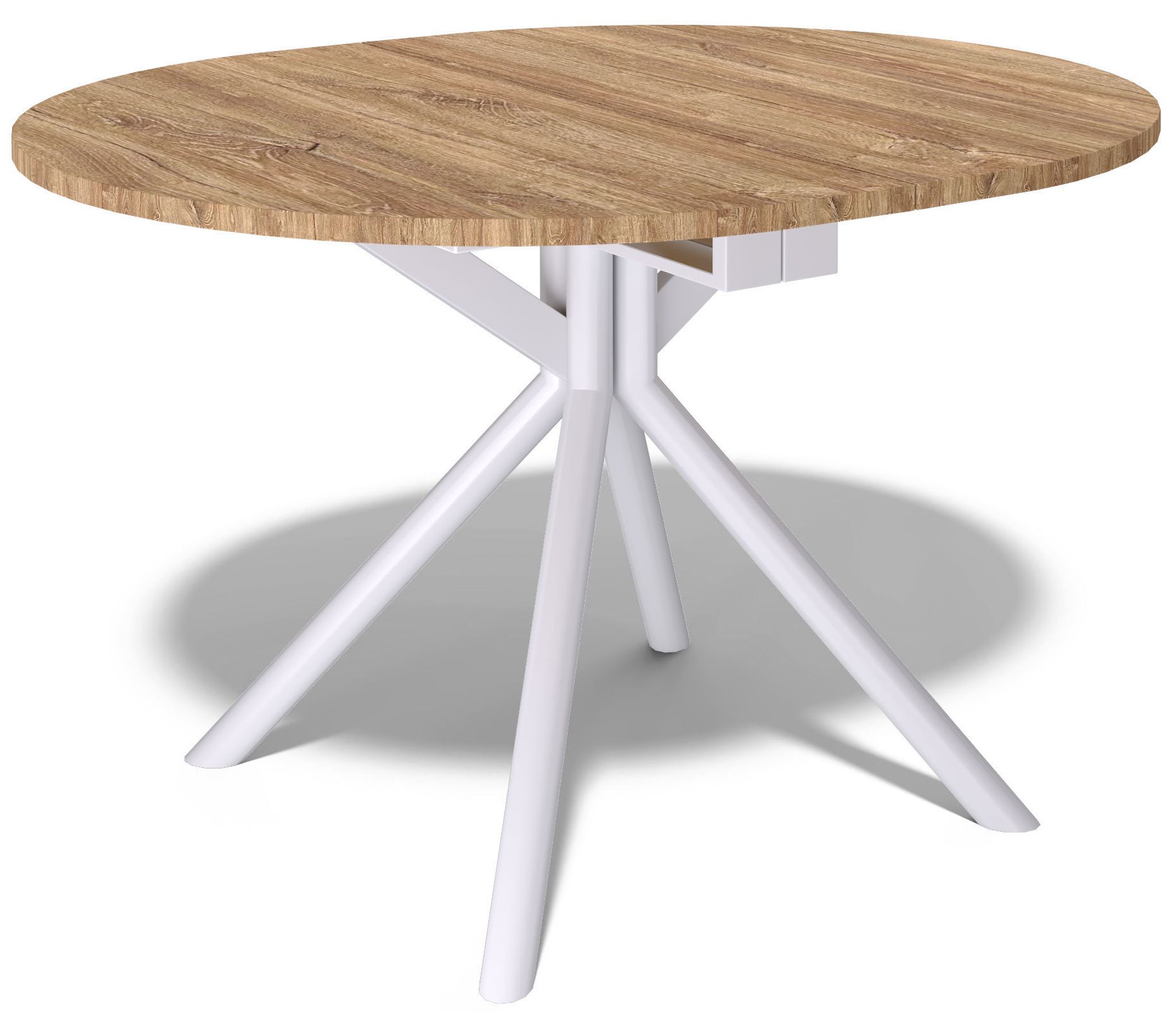 Идеальный стол для размера 1,1 м (в сложенном виде) Основное преимущество – в системе раскладки вместе с опорами. Опоры стола в разложенном виде не мешают сидеть, позволяют сделать большую вставку и, главное, столешница в разложенном состоянии так же крепка и надёжна, как и в сложенном, тогда как обычно раскладка стола уменьшает устойчивость столешницы к нагрузкам из-за большего плеча