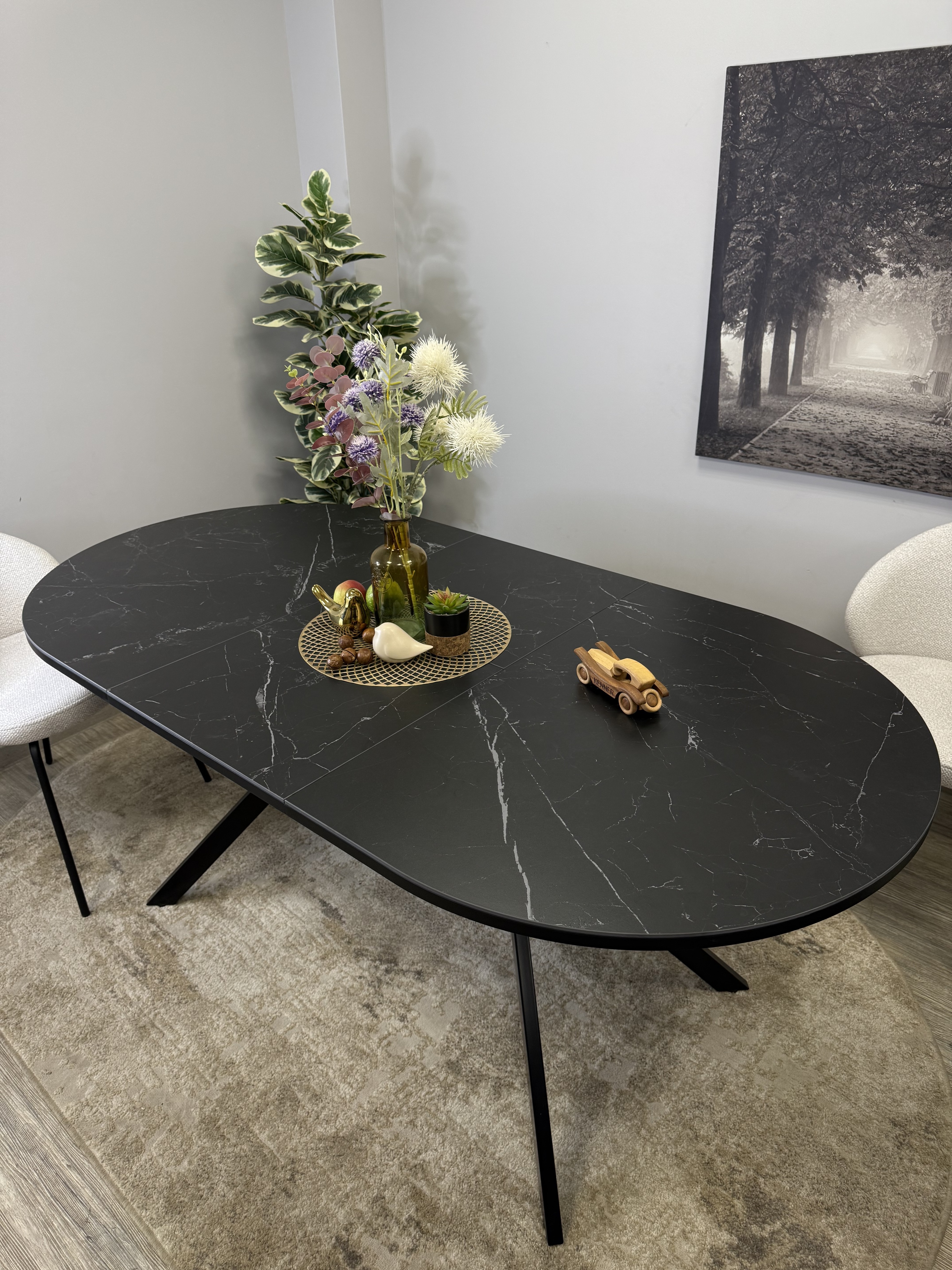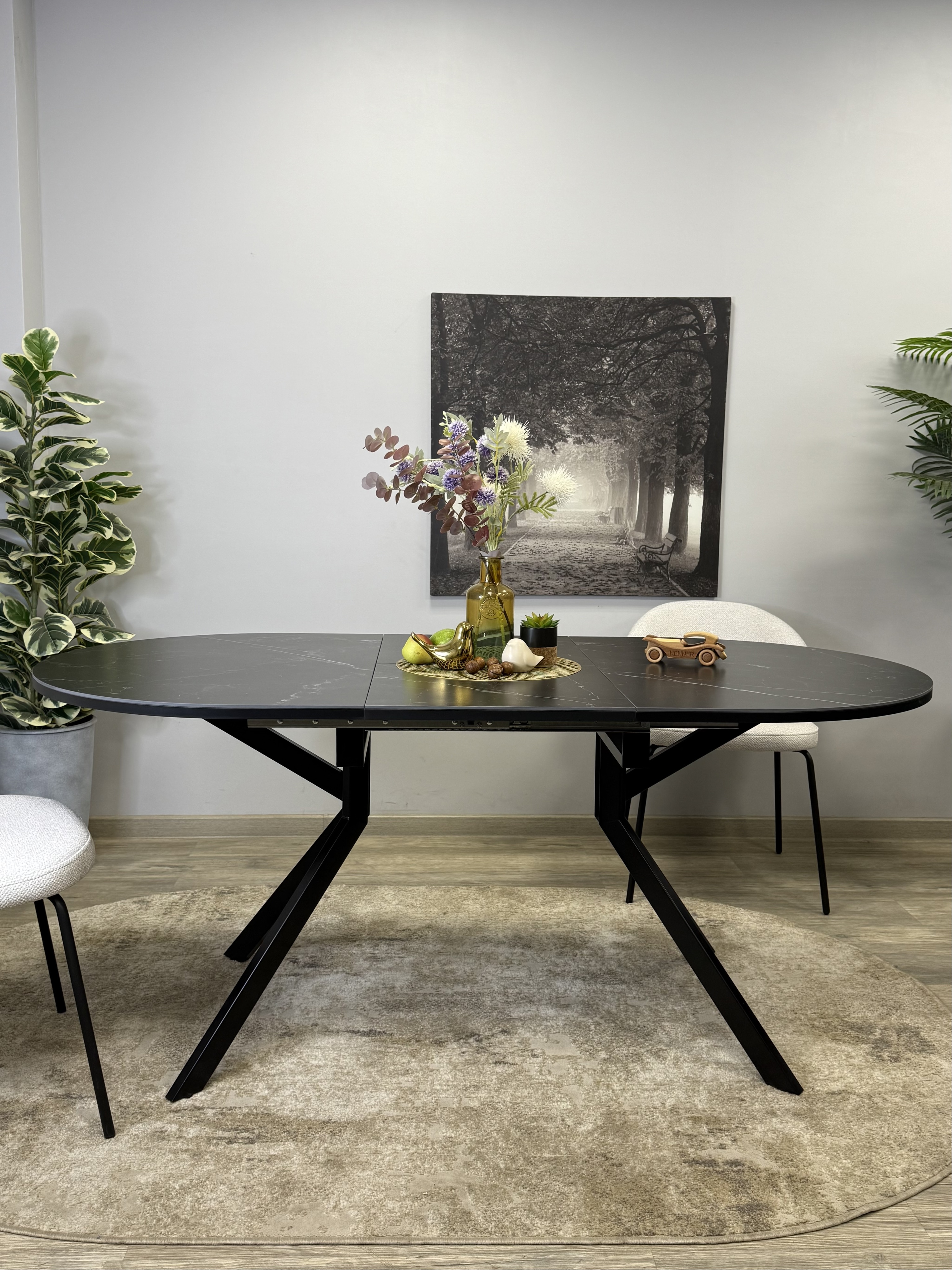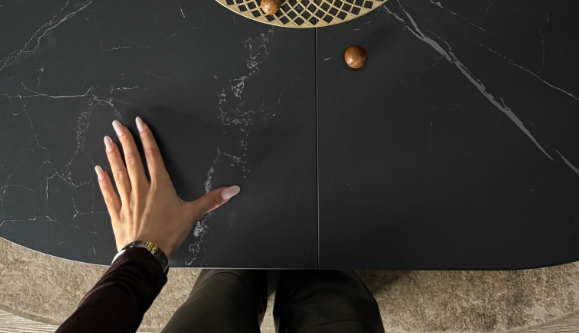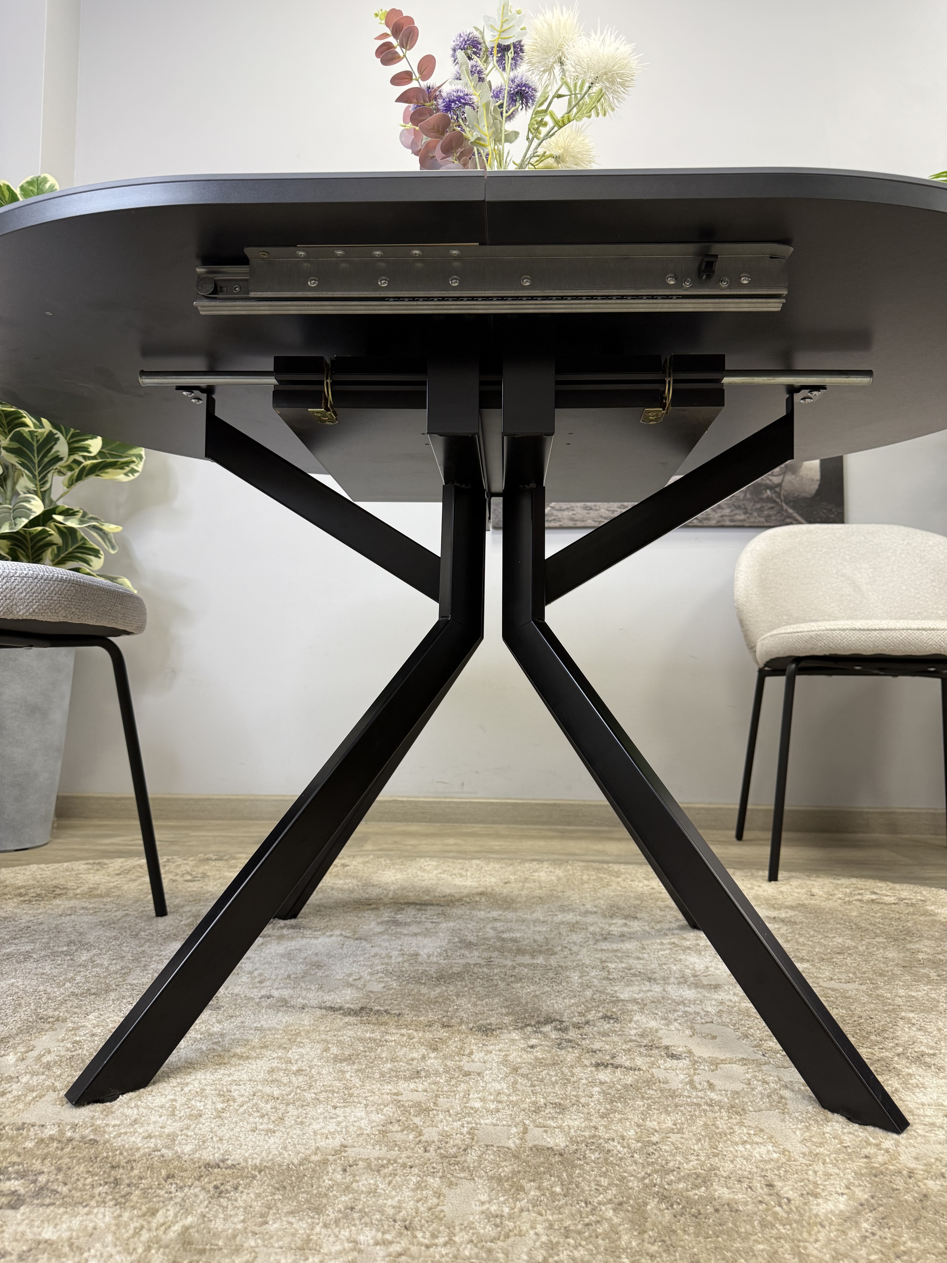 Стол с овальной столешницей, тонкими, но надежными опорами и самой удобной системой раздвижения, из всех, которые мы делали до сих пор