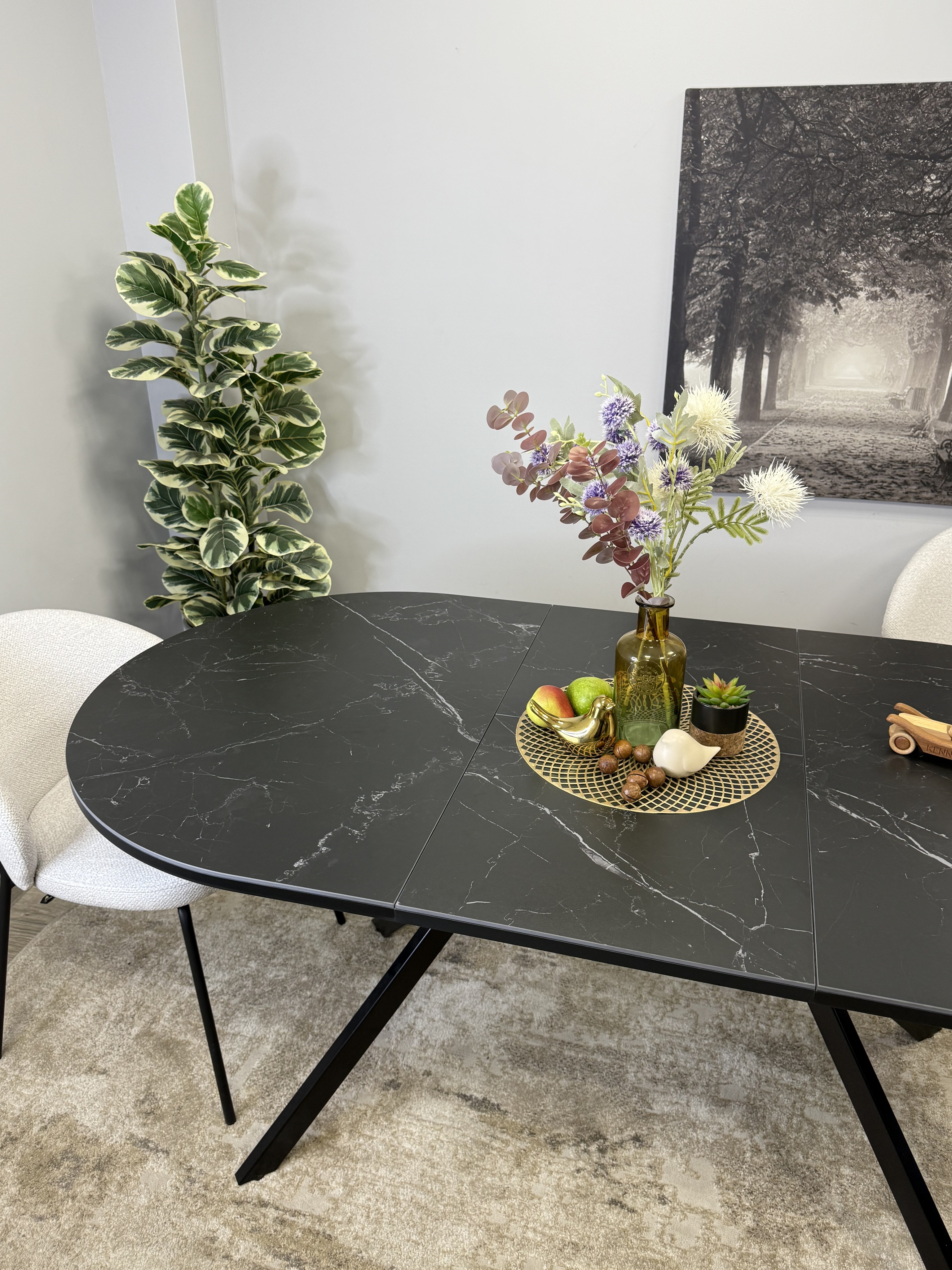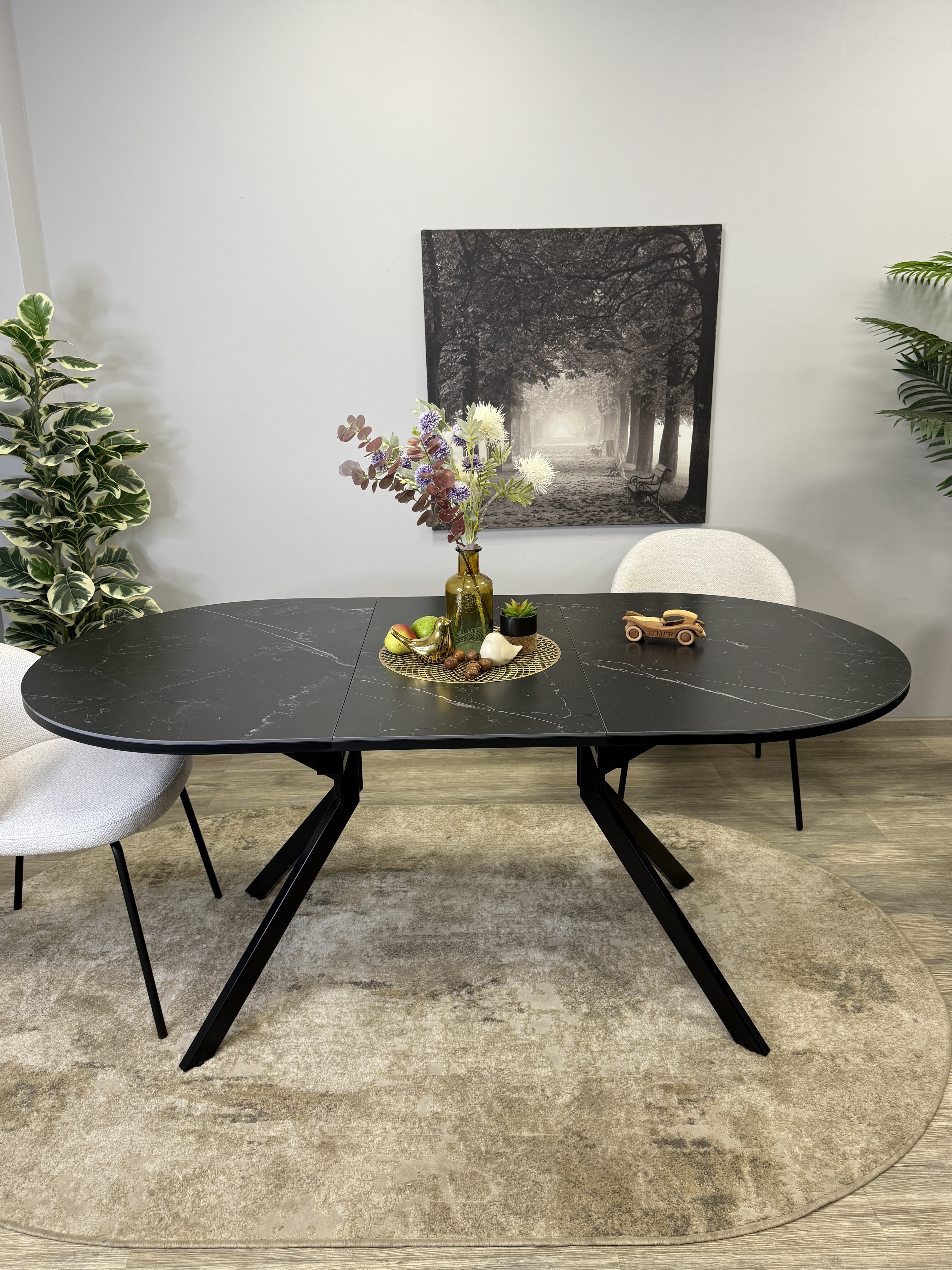 Овальная столешница размером 1100*900 оптимальна на большой кухне. Можно ставить вплотную к стене, легко размещается 6 чел в сложенном виде.