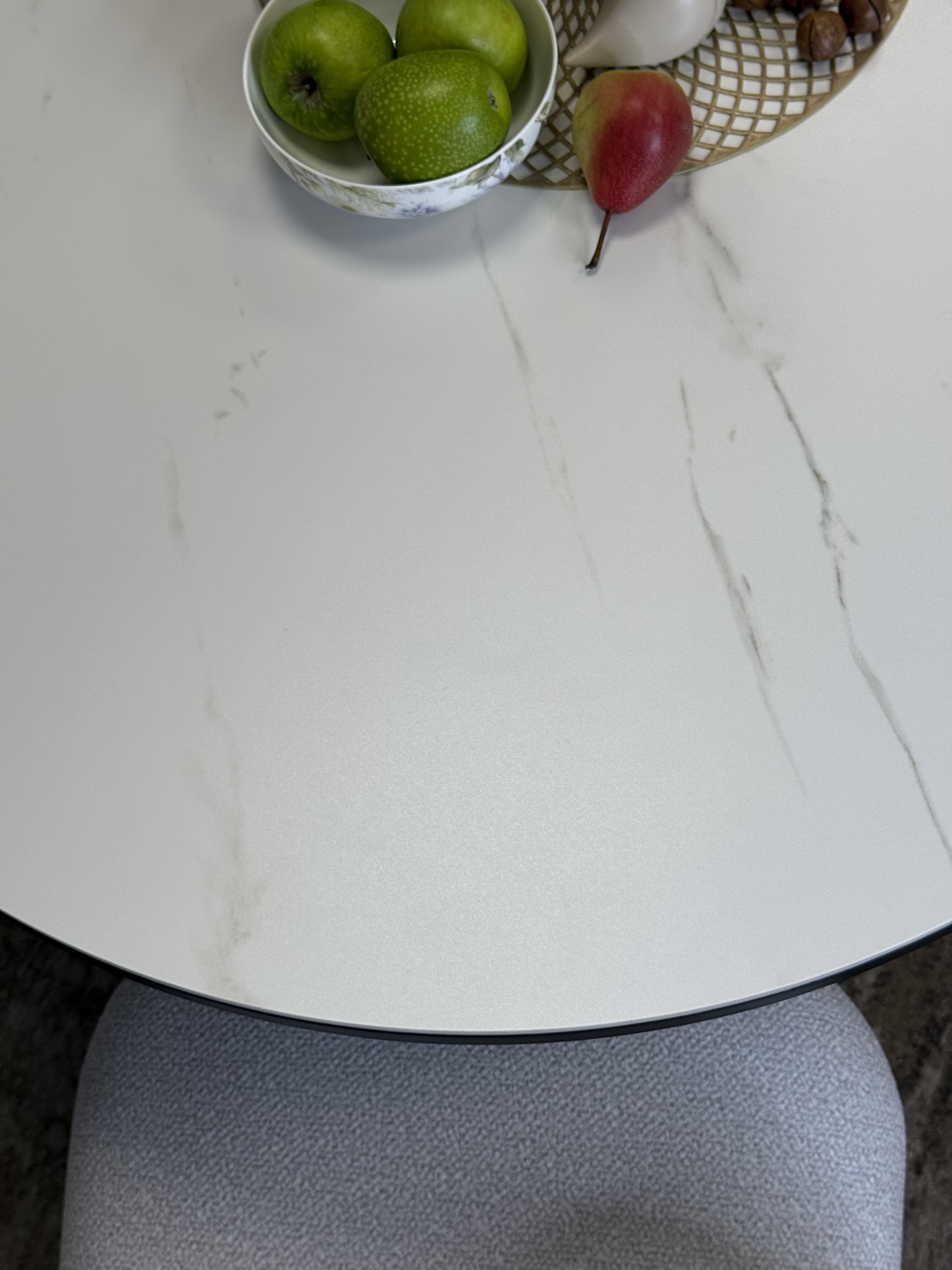 Овальная столешница размером 1300*900 оптимальна на большой кухне. Можно ставить вплотную к стене, легко размещается 6 человек за столом в сложенном виде