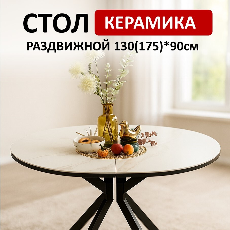 Идеальный стол для размера 1,3 м в сложенном виде. Основное преимущество в системе раскладки вместе с опорами. Опоры стола в разложенном виде не мешают сидеть, позволяют сделать большую вставку и, главное, столешница в разложенном состоянии так же крепка и надежна, как и в сложенном, тогда как обычно раскладка стола уменьшает устойчивость столешницы к нагрузкам из-за большего плеча