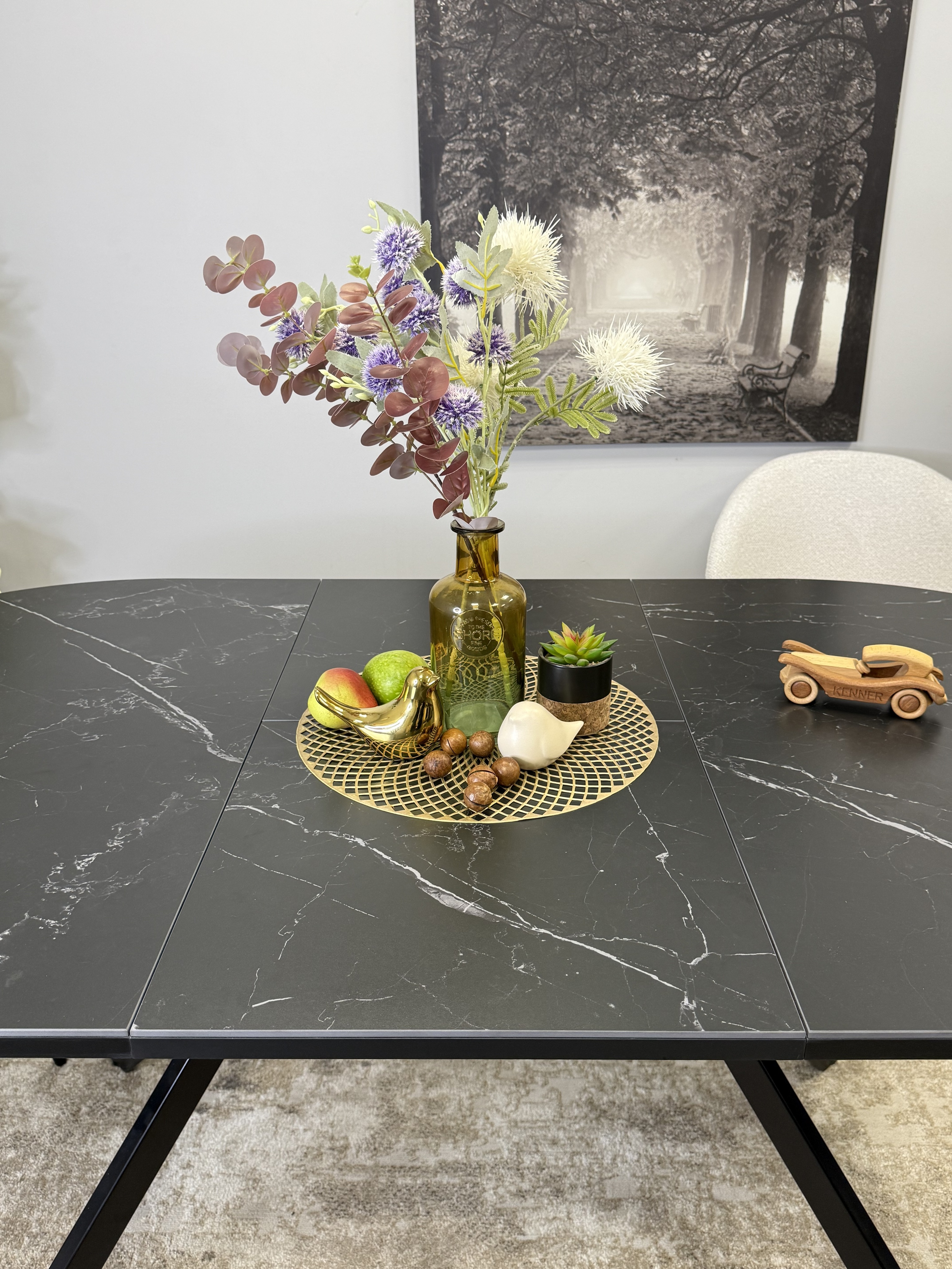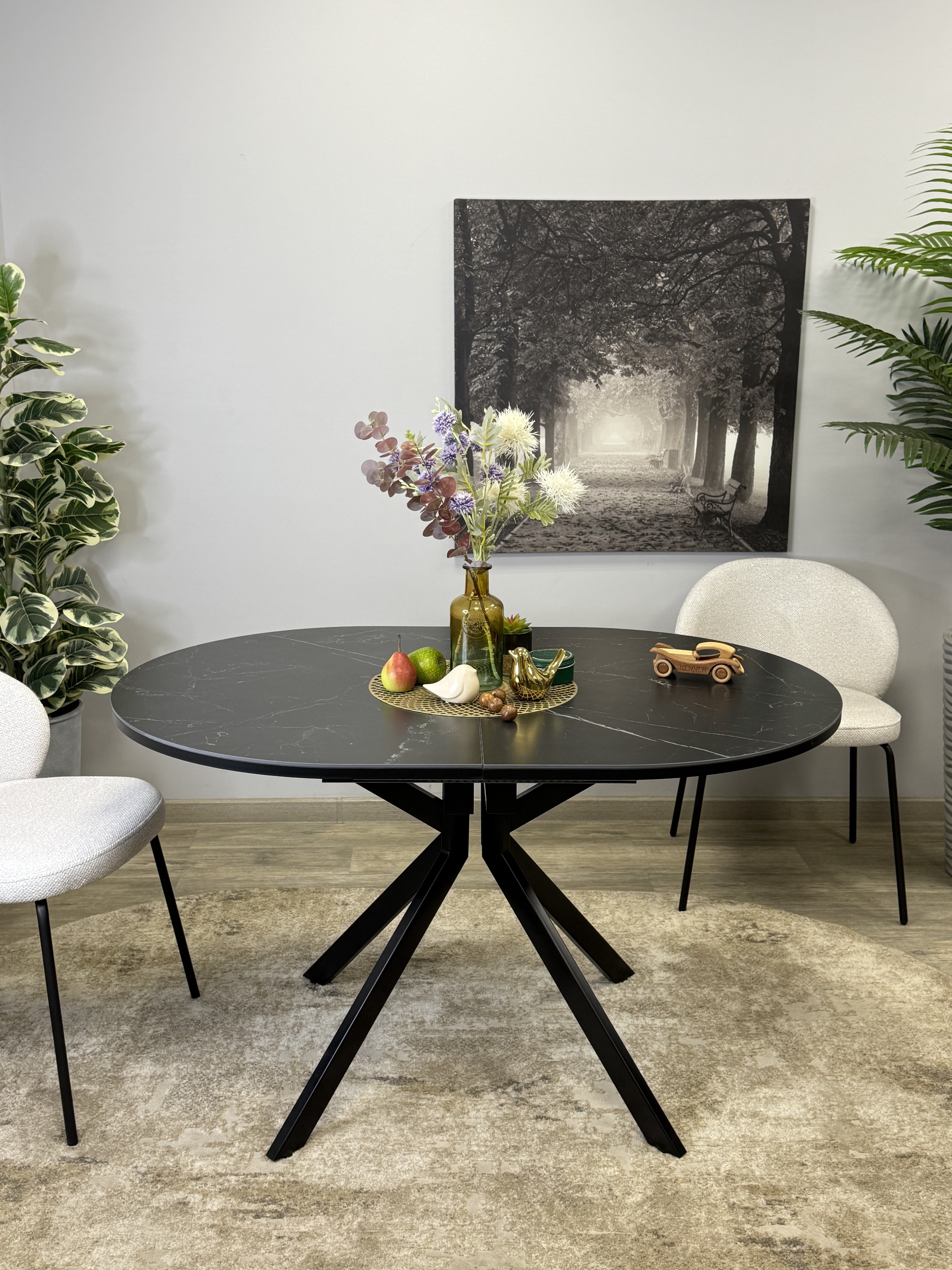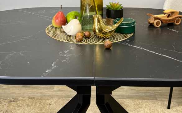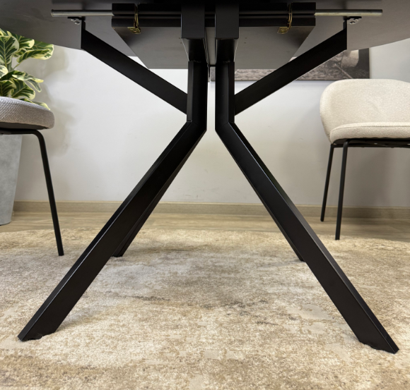 Идеальный стол для размера 1,3 м в сложенном виде. Основное преимущество в системе раскладки вместе с опорами. Опоры стола в разложенном виде не мешают сидеть, позволяют сделать большую вставку и, главное, столешница в разложенном состоянии так же крепка и надежна, как и в сложенном, тогда как обычно раскладка стола уменьшает устойчивость столешницы к нагрузкам из-за большего плеча