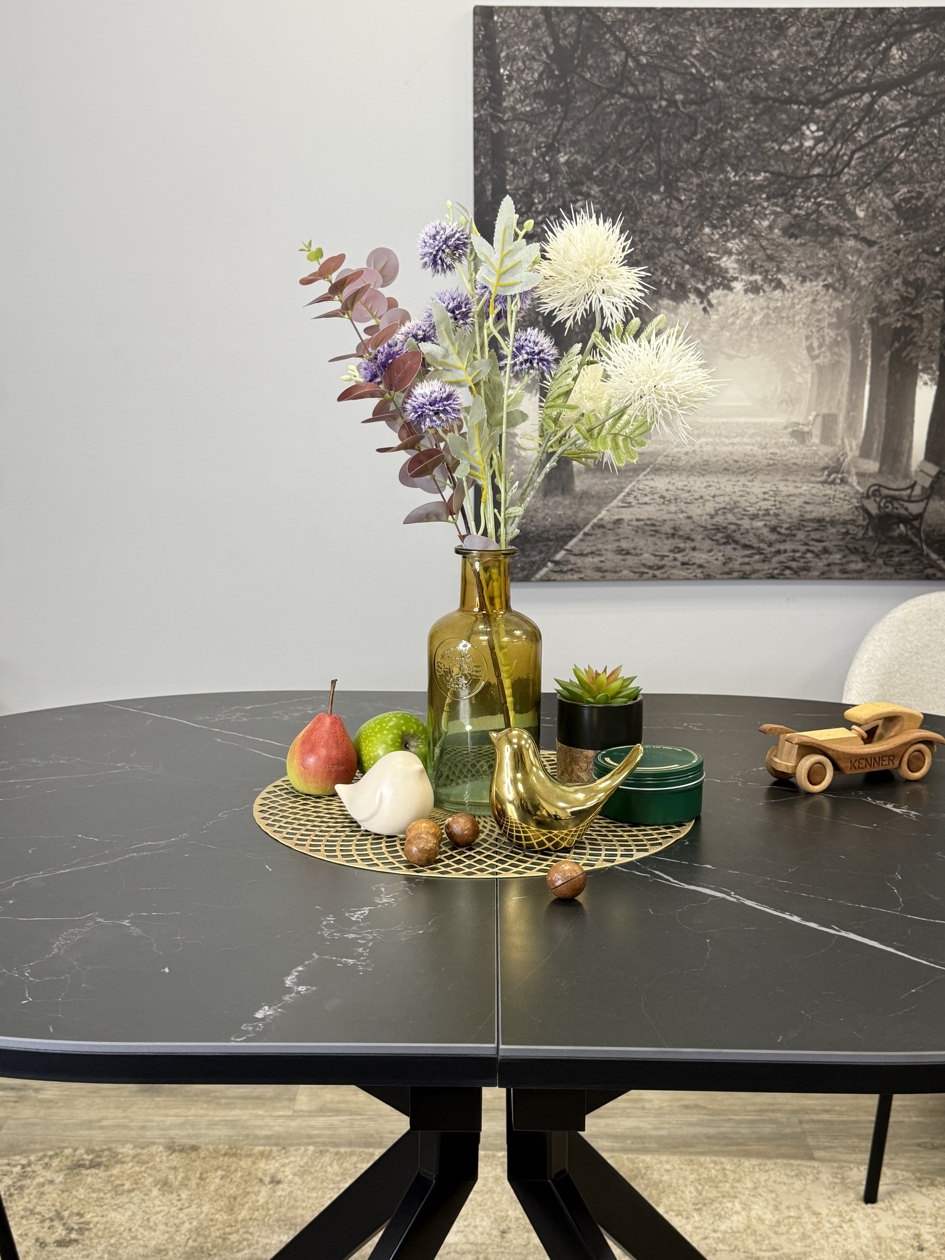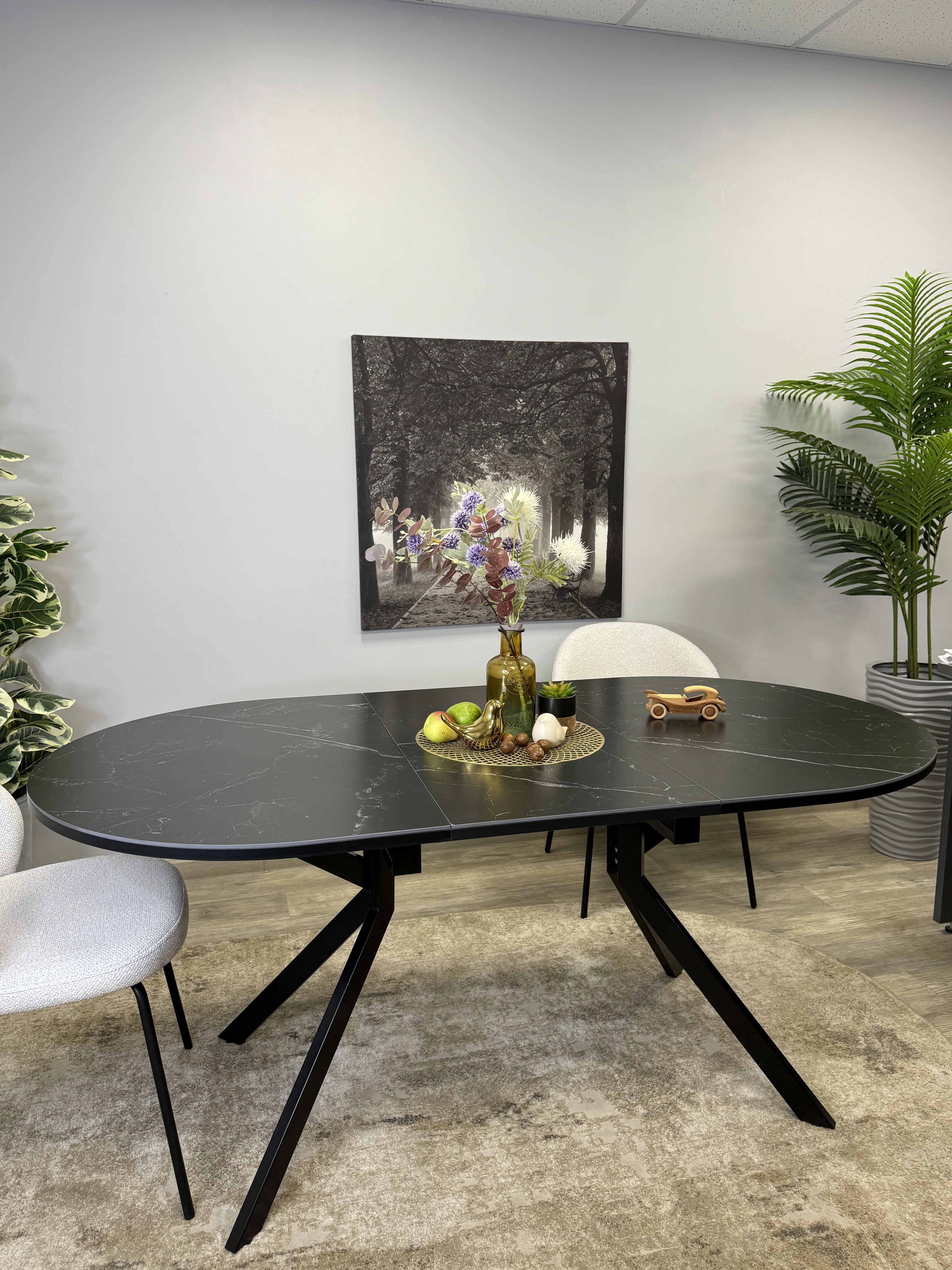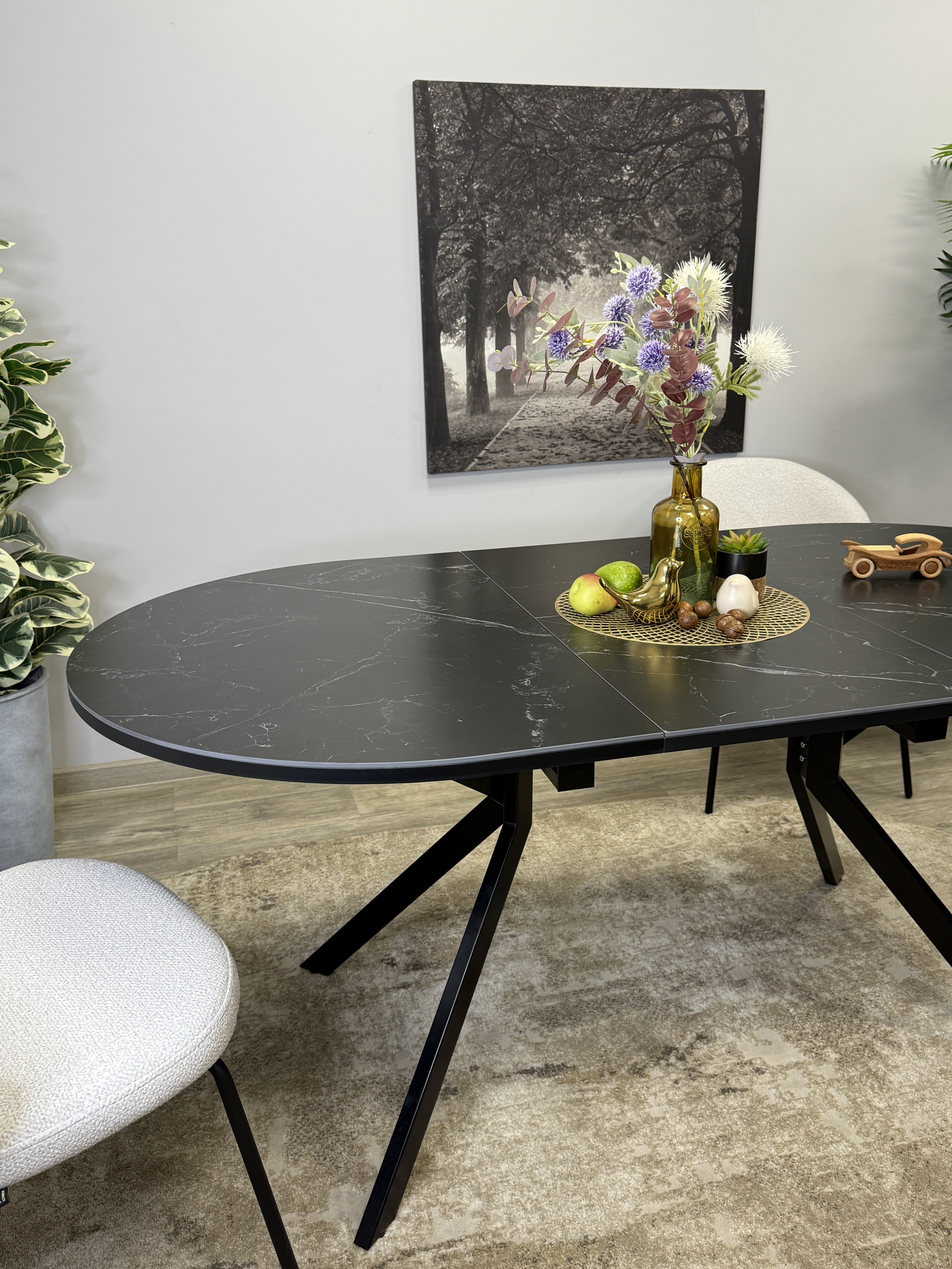 Стол с овальной столешницей, тонкими, но надежными опорами и самой удобной системой раздвижения, из всех, которые мы делали до сих пор