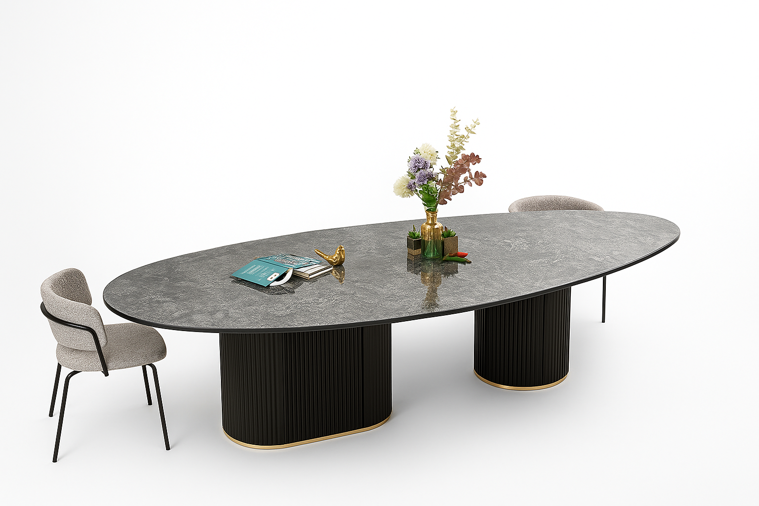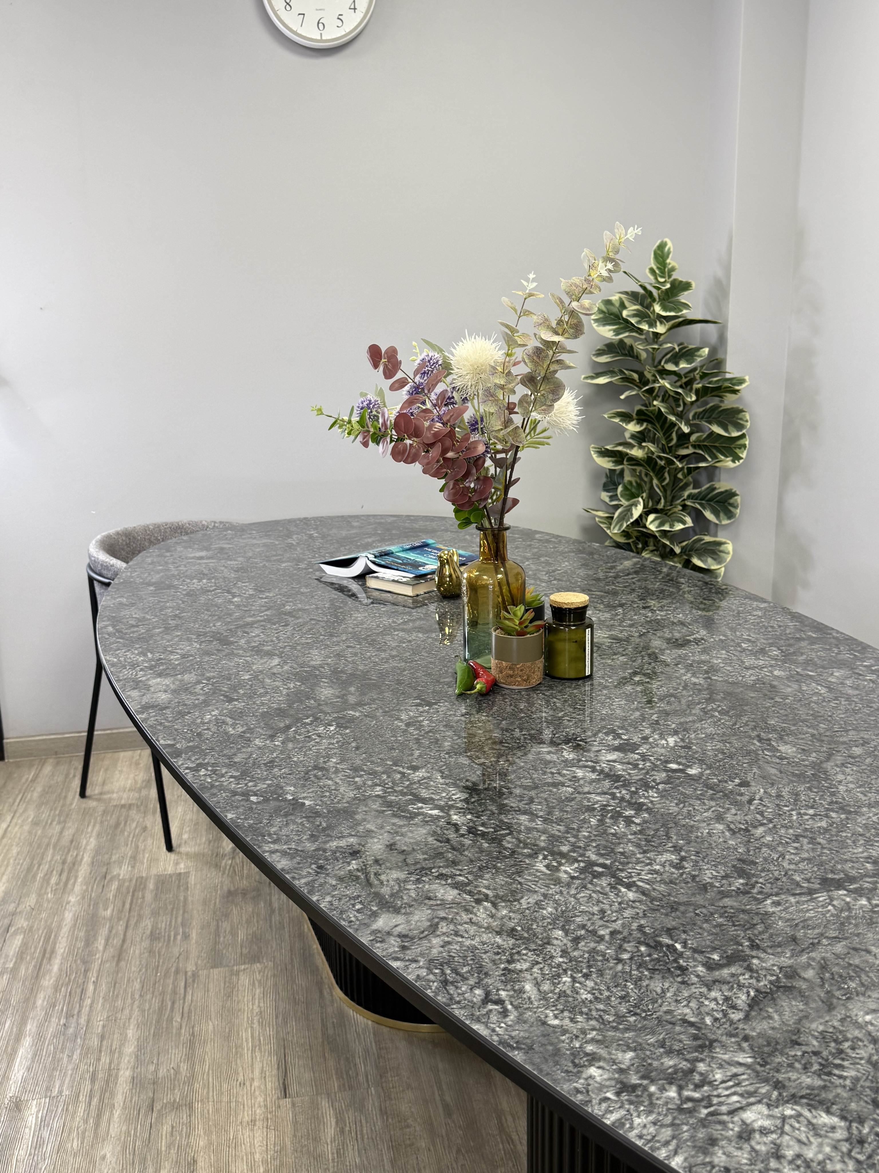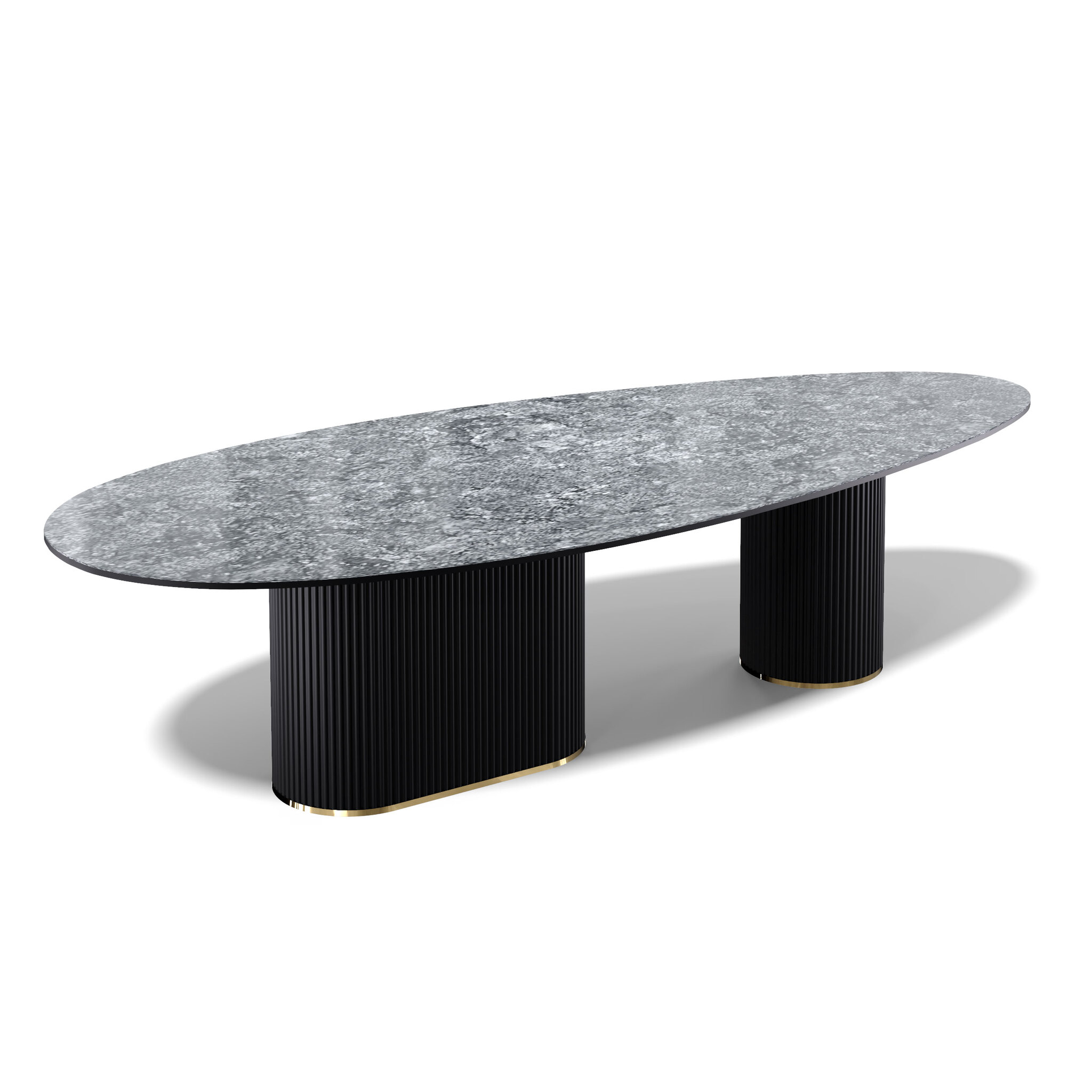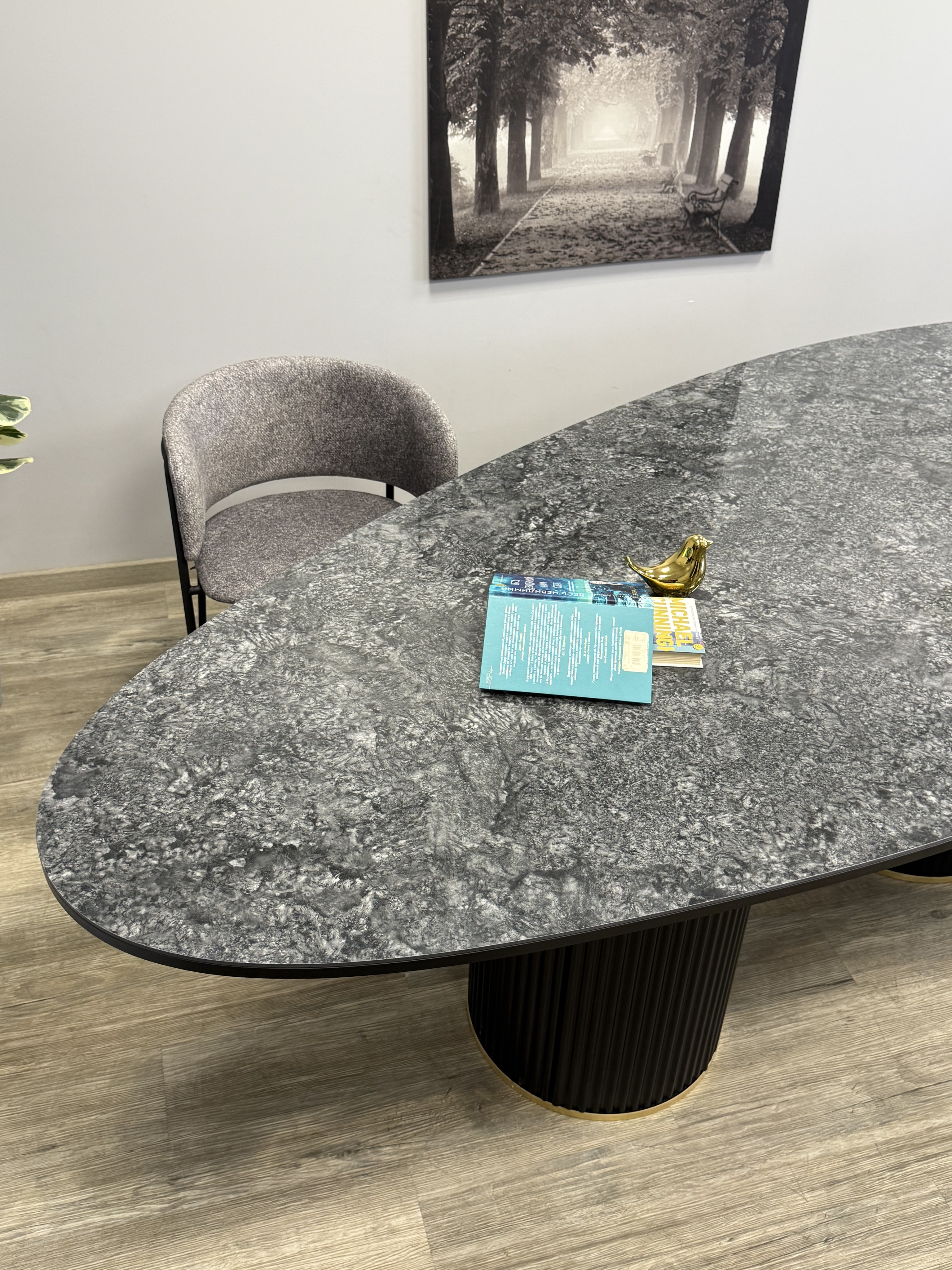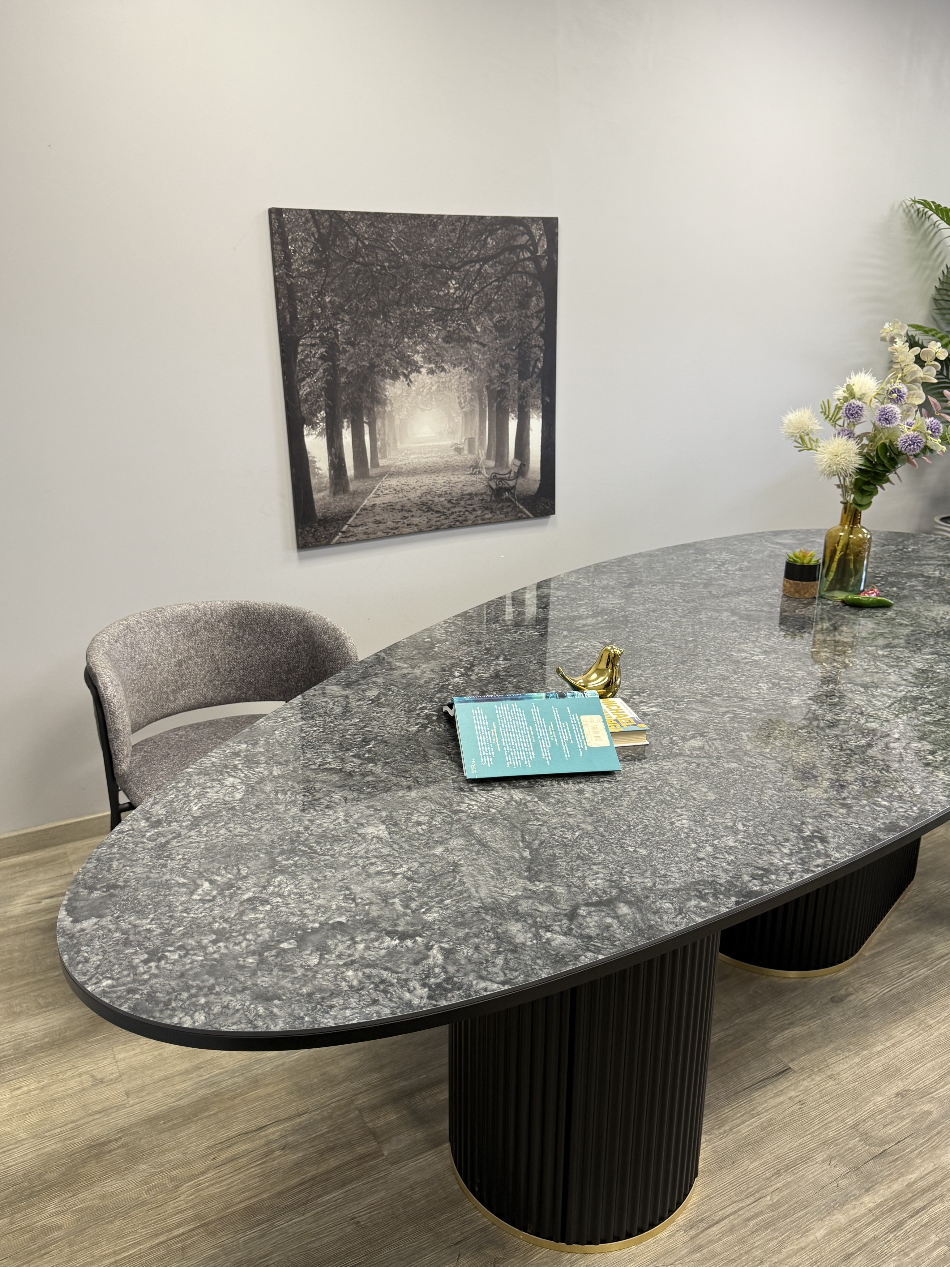 Элегантный стол без механизма трансформации. Отличается высокой устойчивостью и прекрасно сочетается с модными кухнями. Обеспечивает достаточно пространства для ног. Роскошная блестящая керамическая поверхность