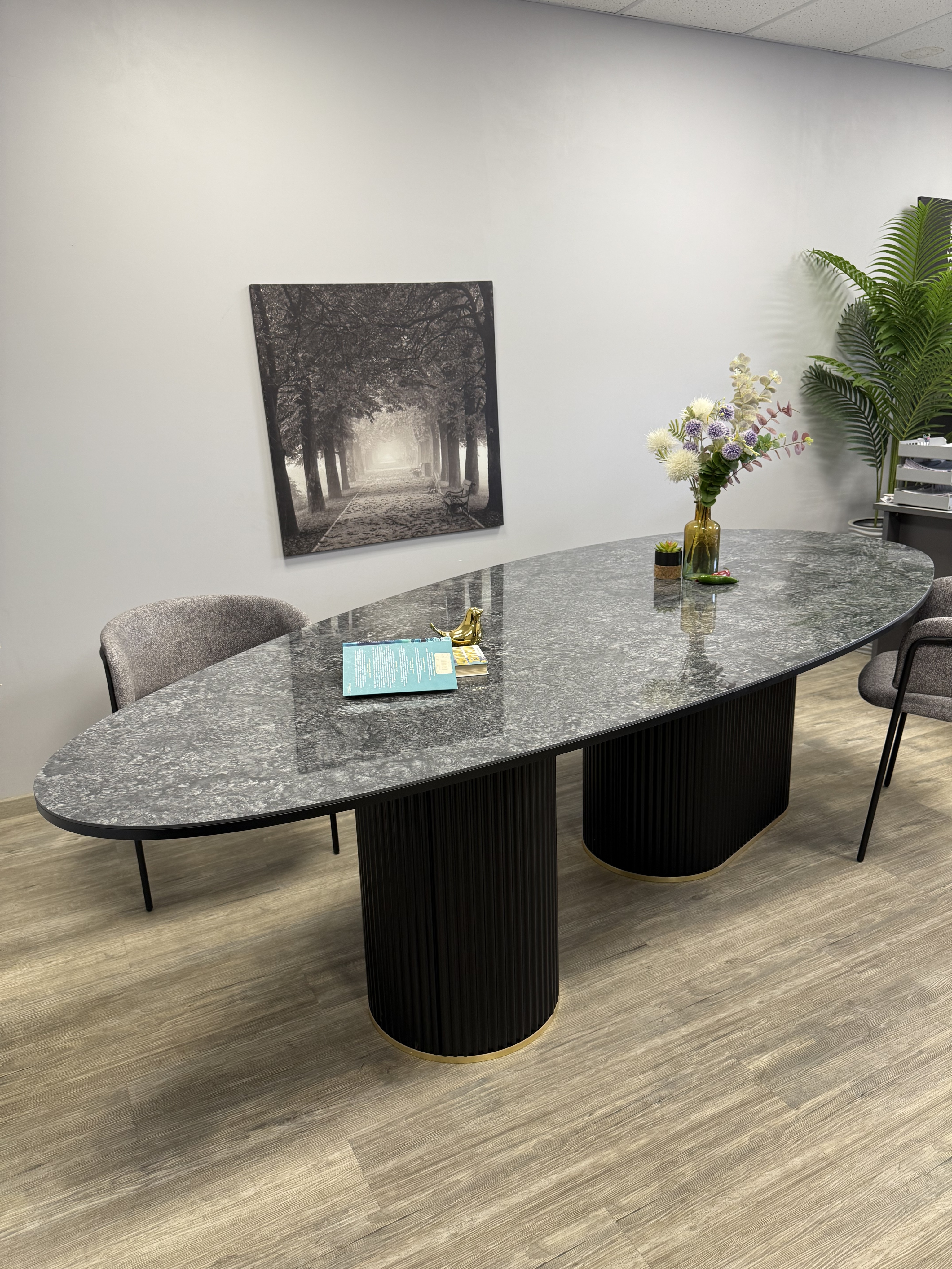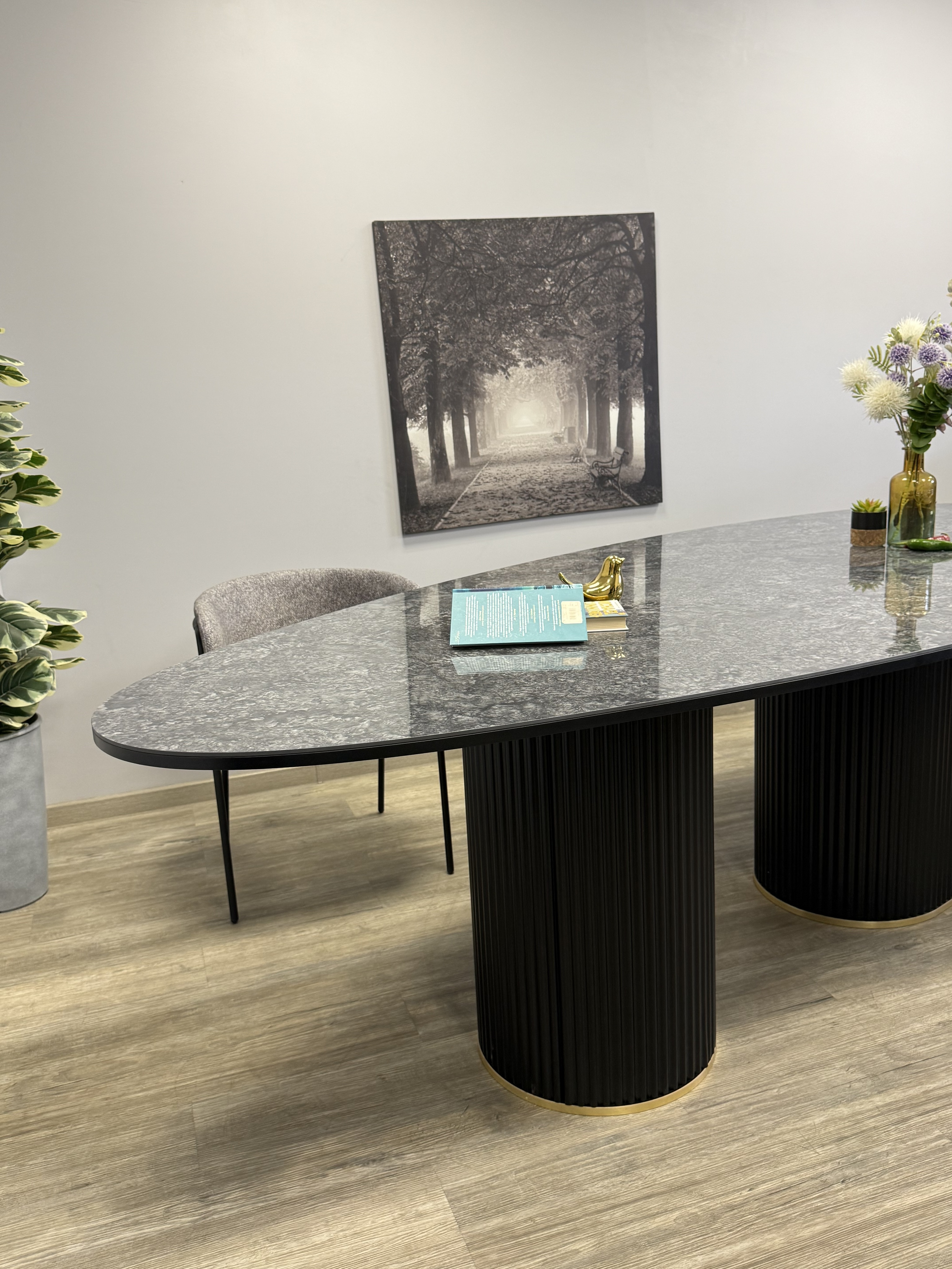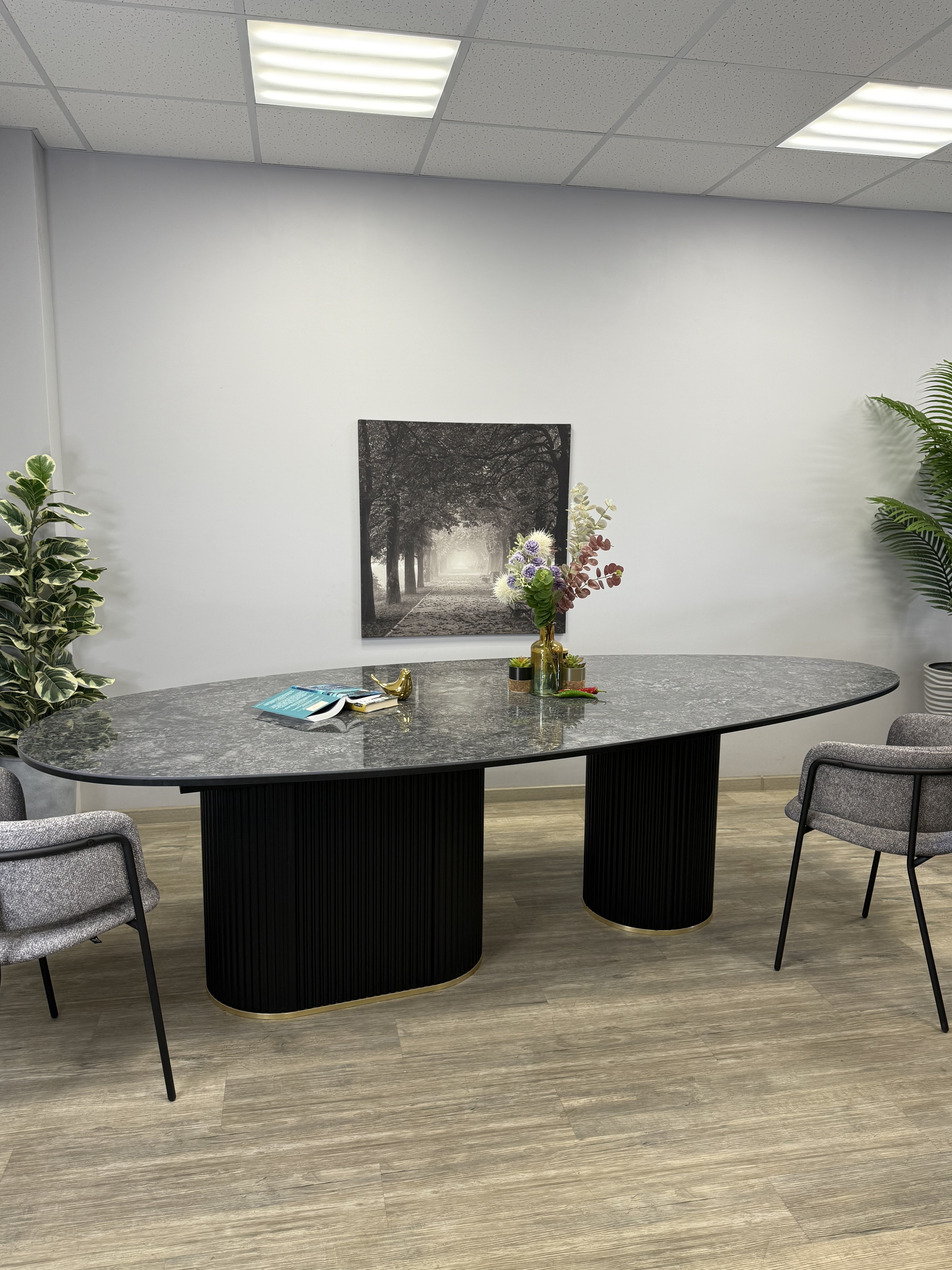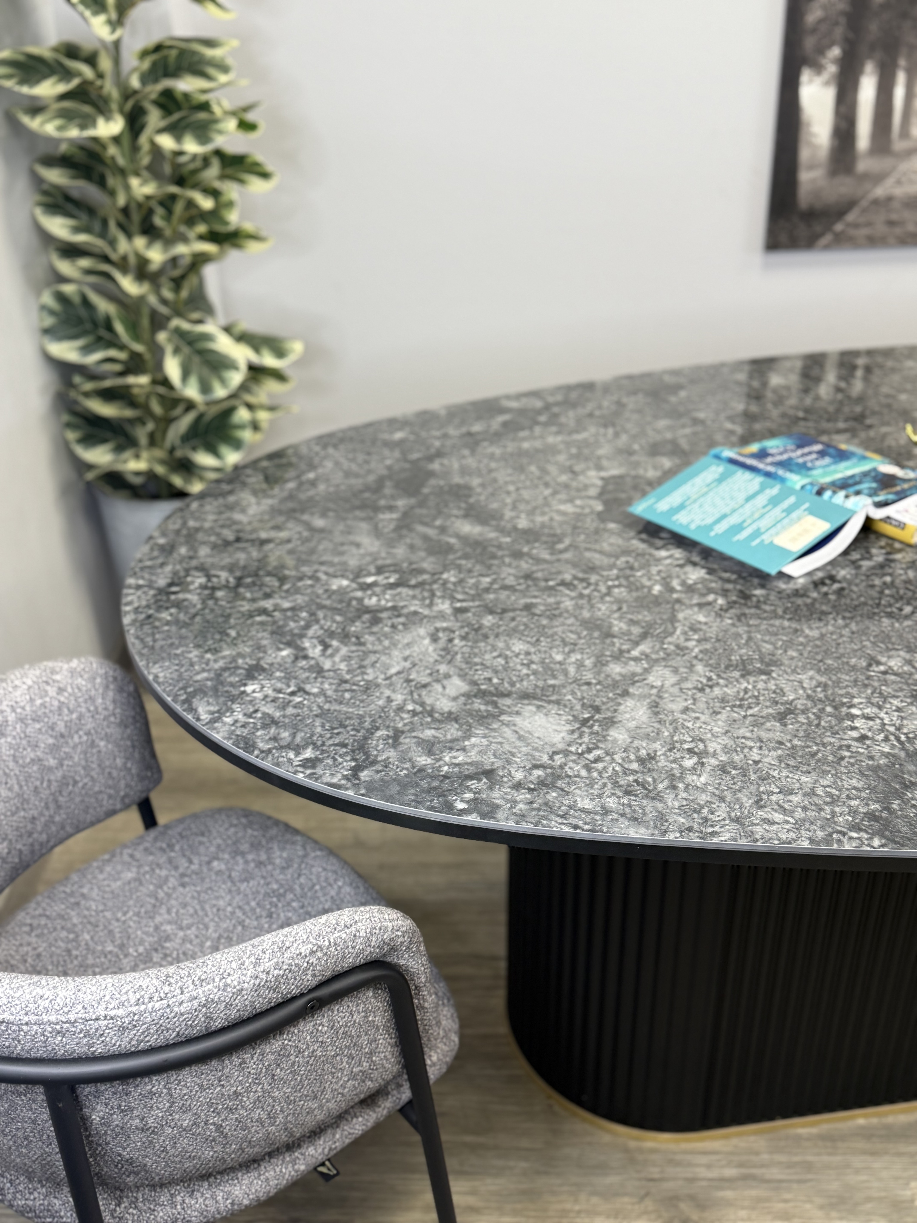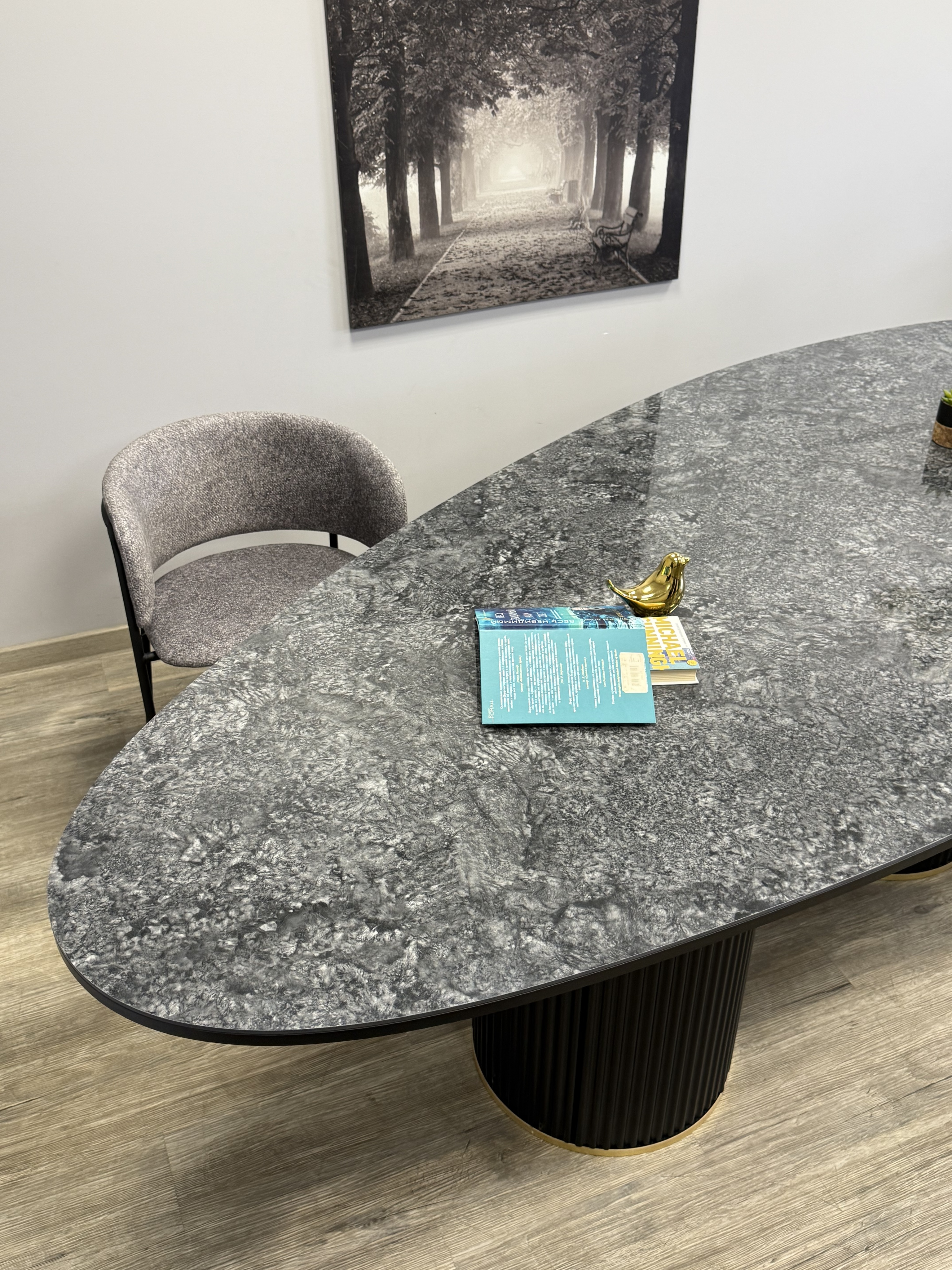 Элегантный стол без механизма трансформации. Отличается высокой устойчивостью и прекрасно сочетается с модными кухнями. Обеспечивает достаточно пространства для ног. Роскошная блестящая керамическая поверхность