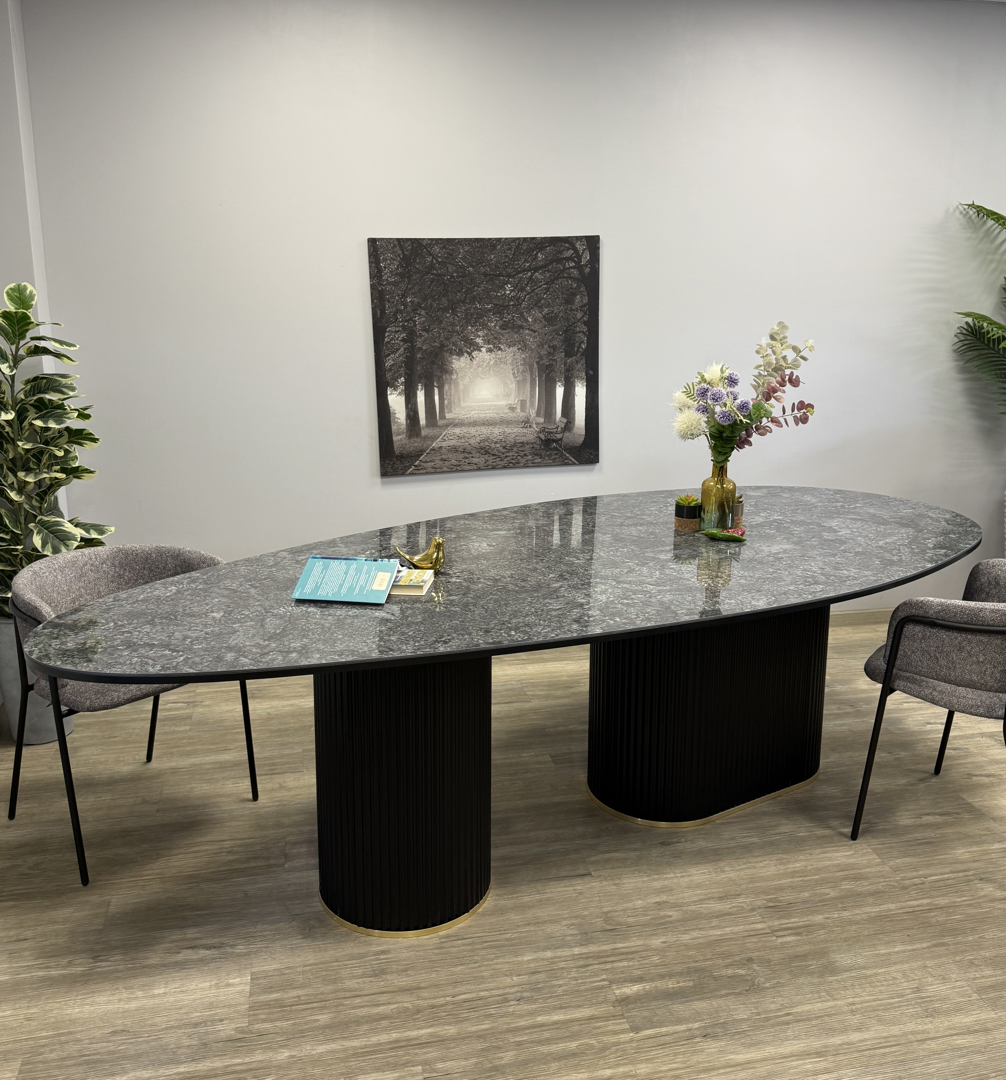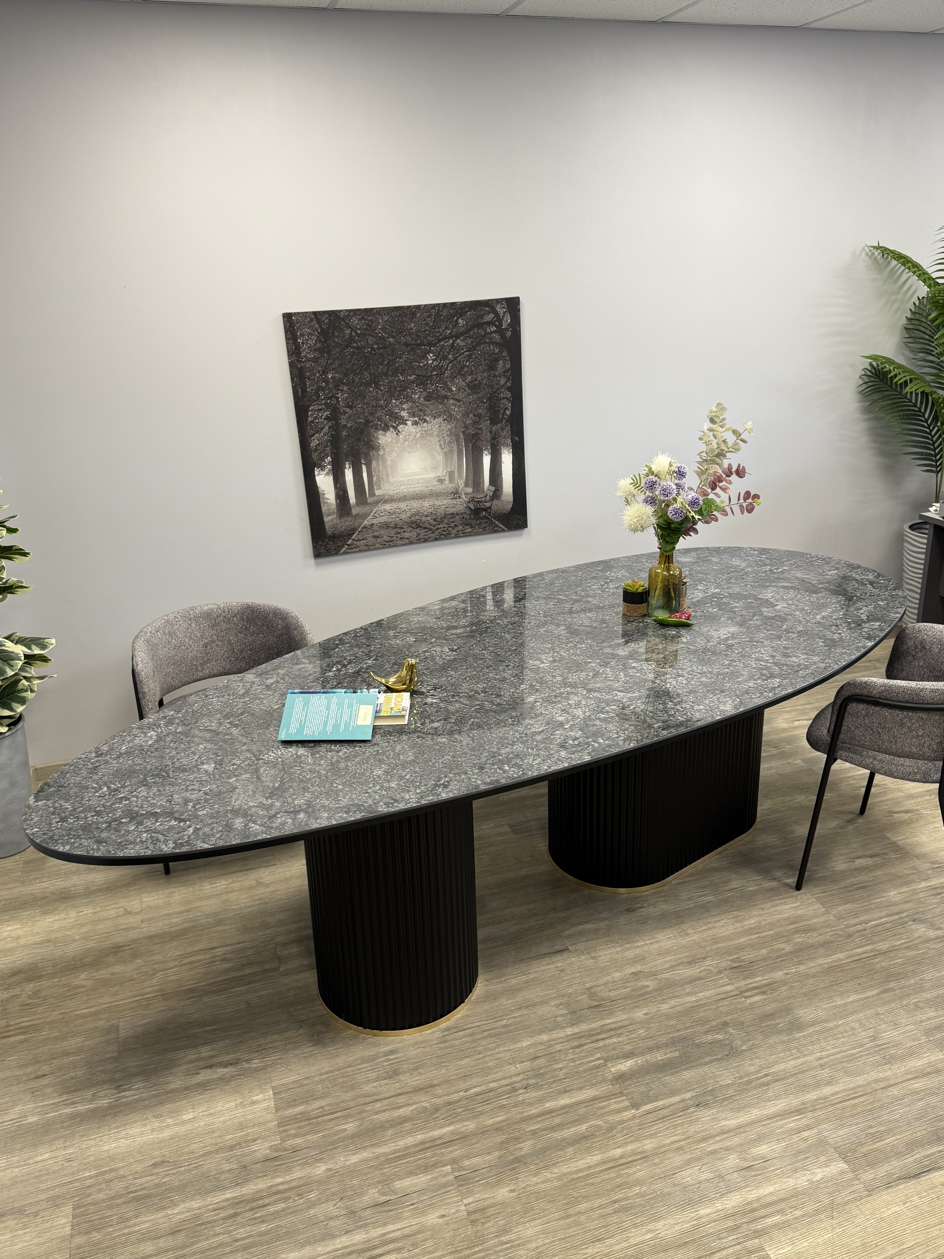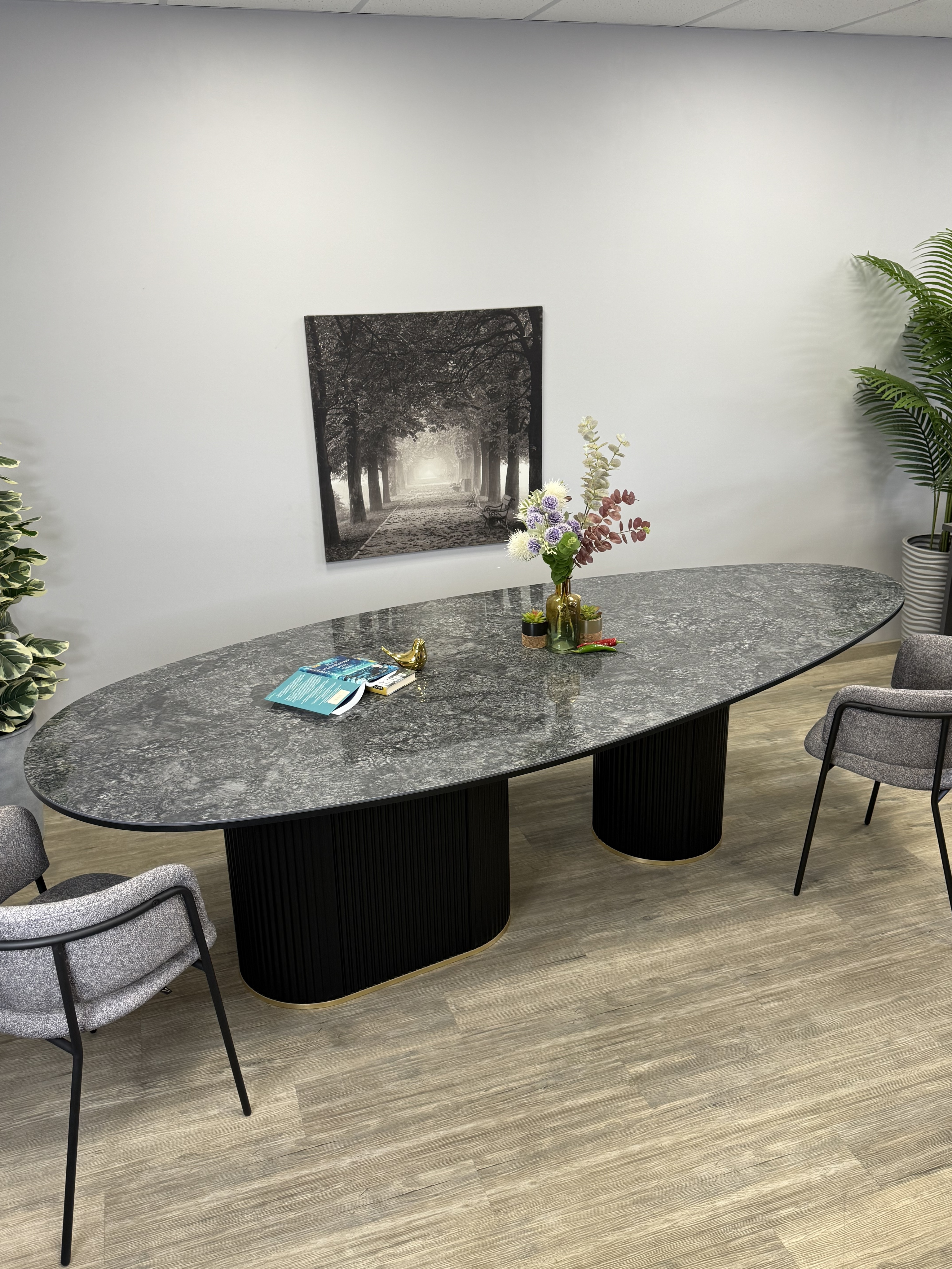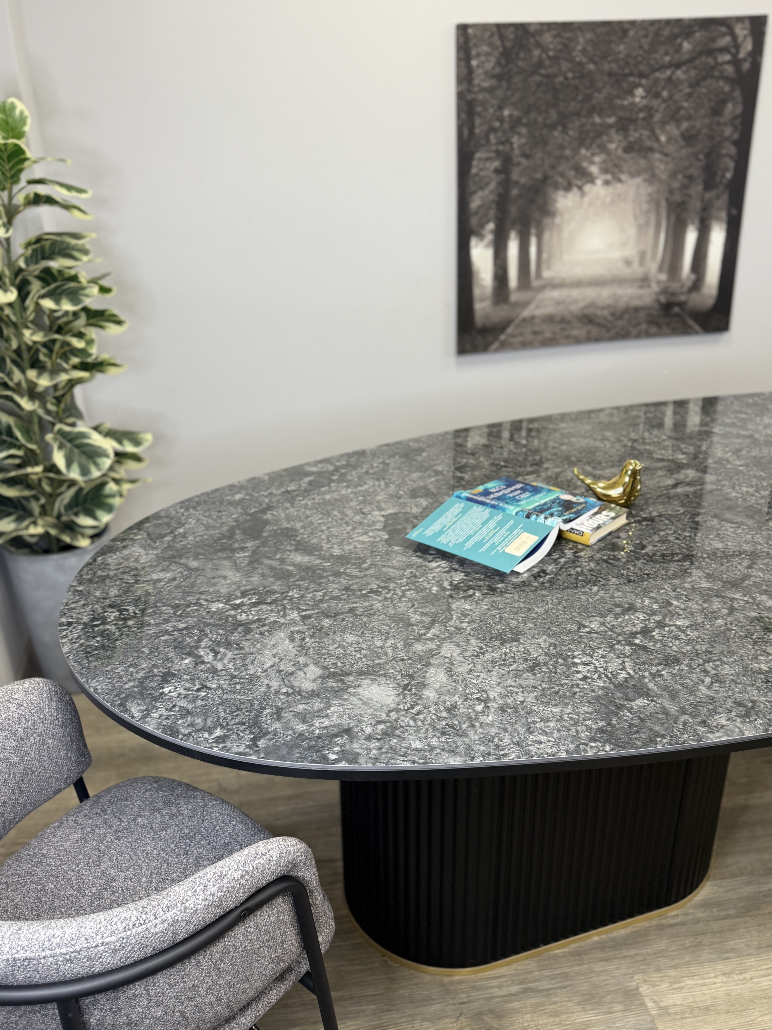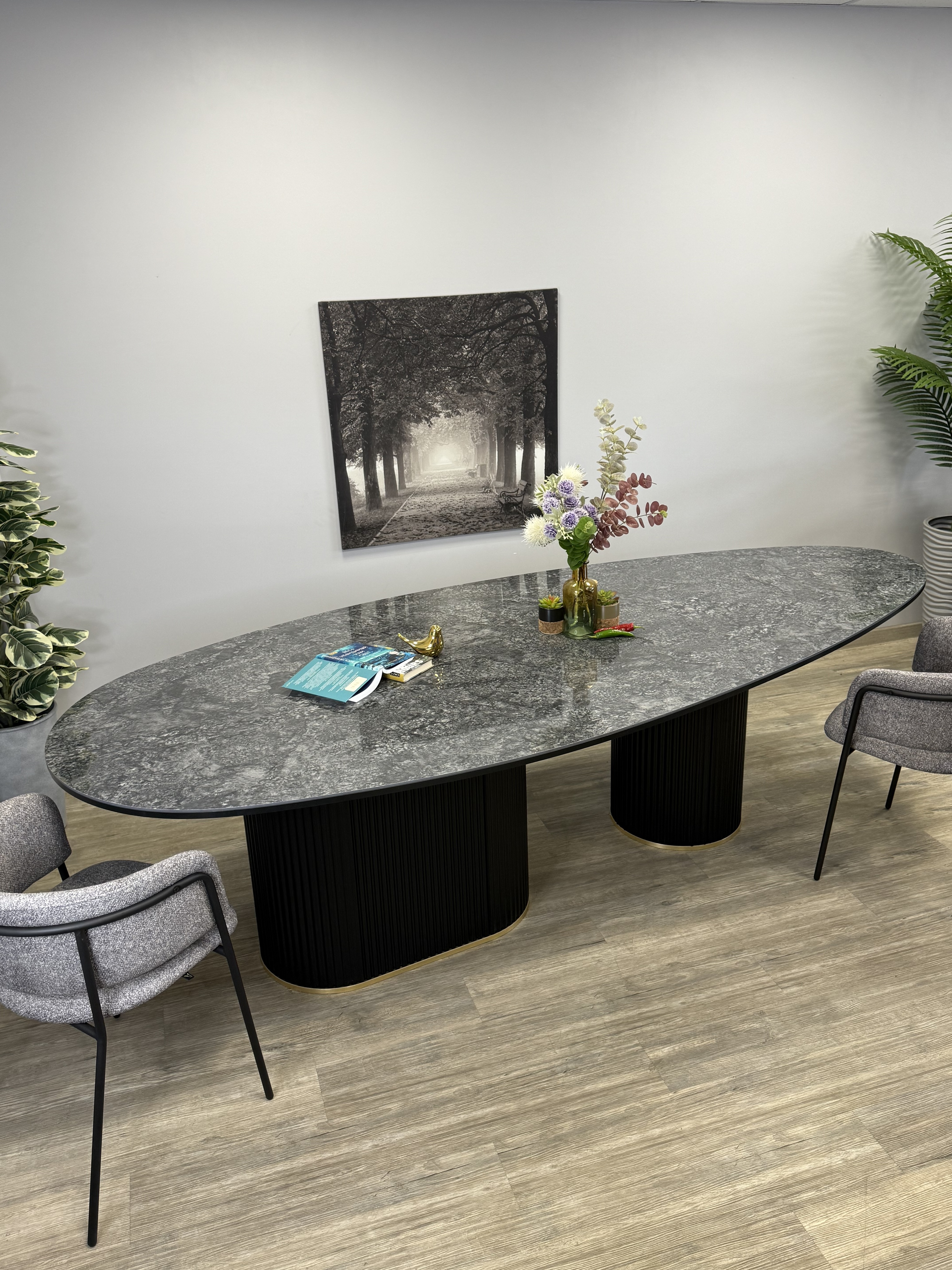 Элегантный стол без механизма трансформации. Отличается высокой устойчивостью и прекрасно сочетается с модными кухнями. Обеспечивает достаточно пространства для ног. Роскошная блестящая керамическая поверхность