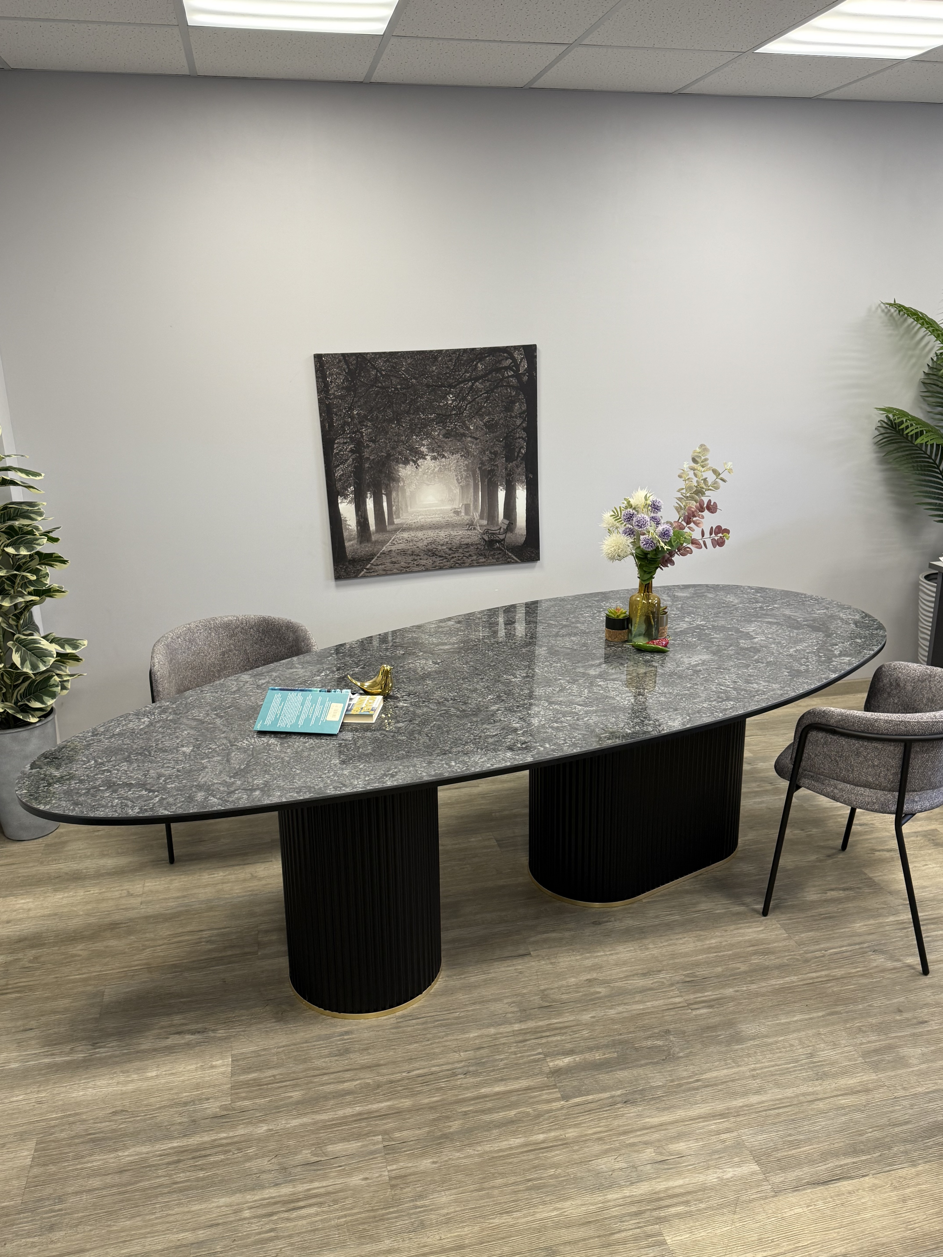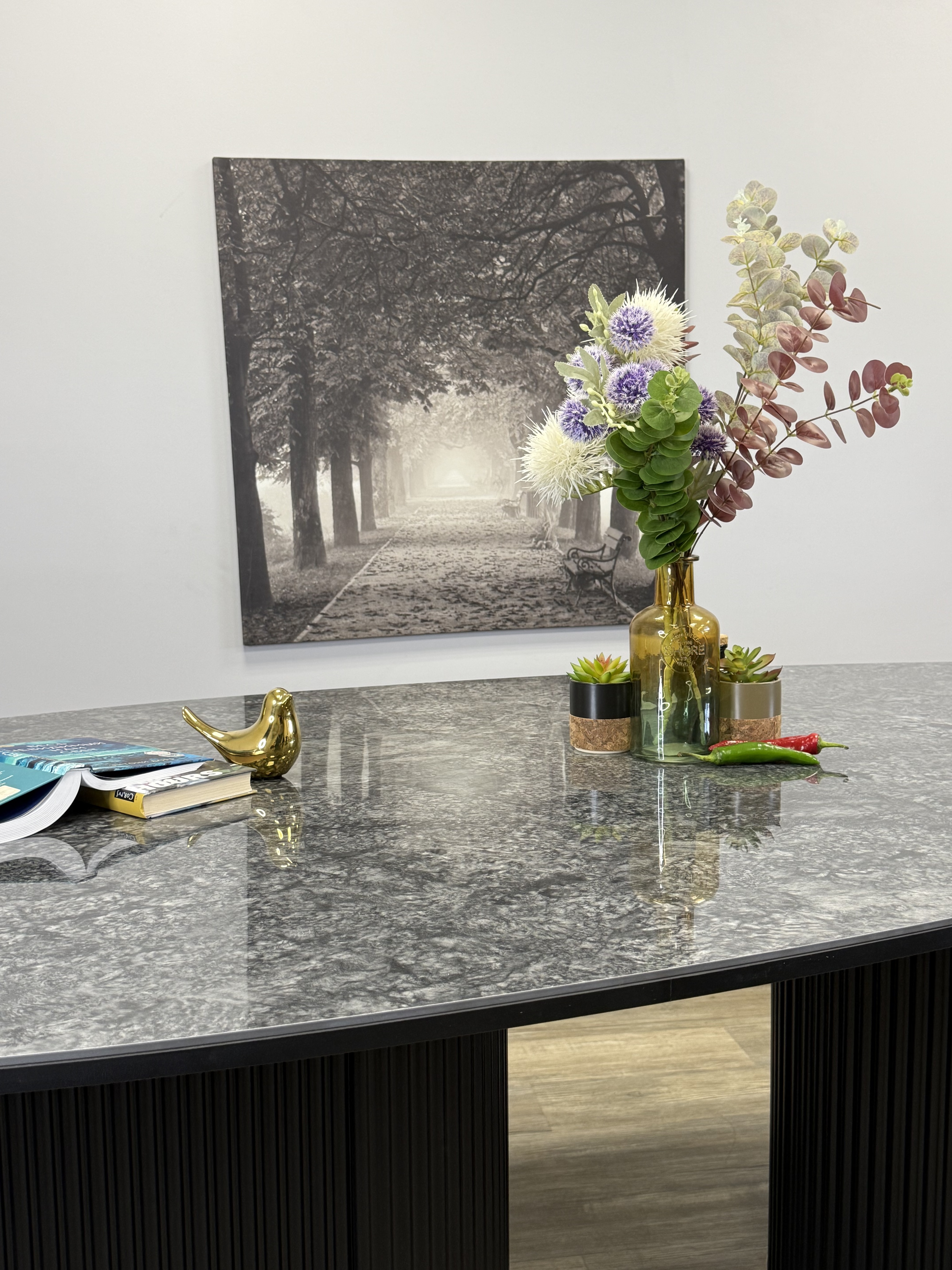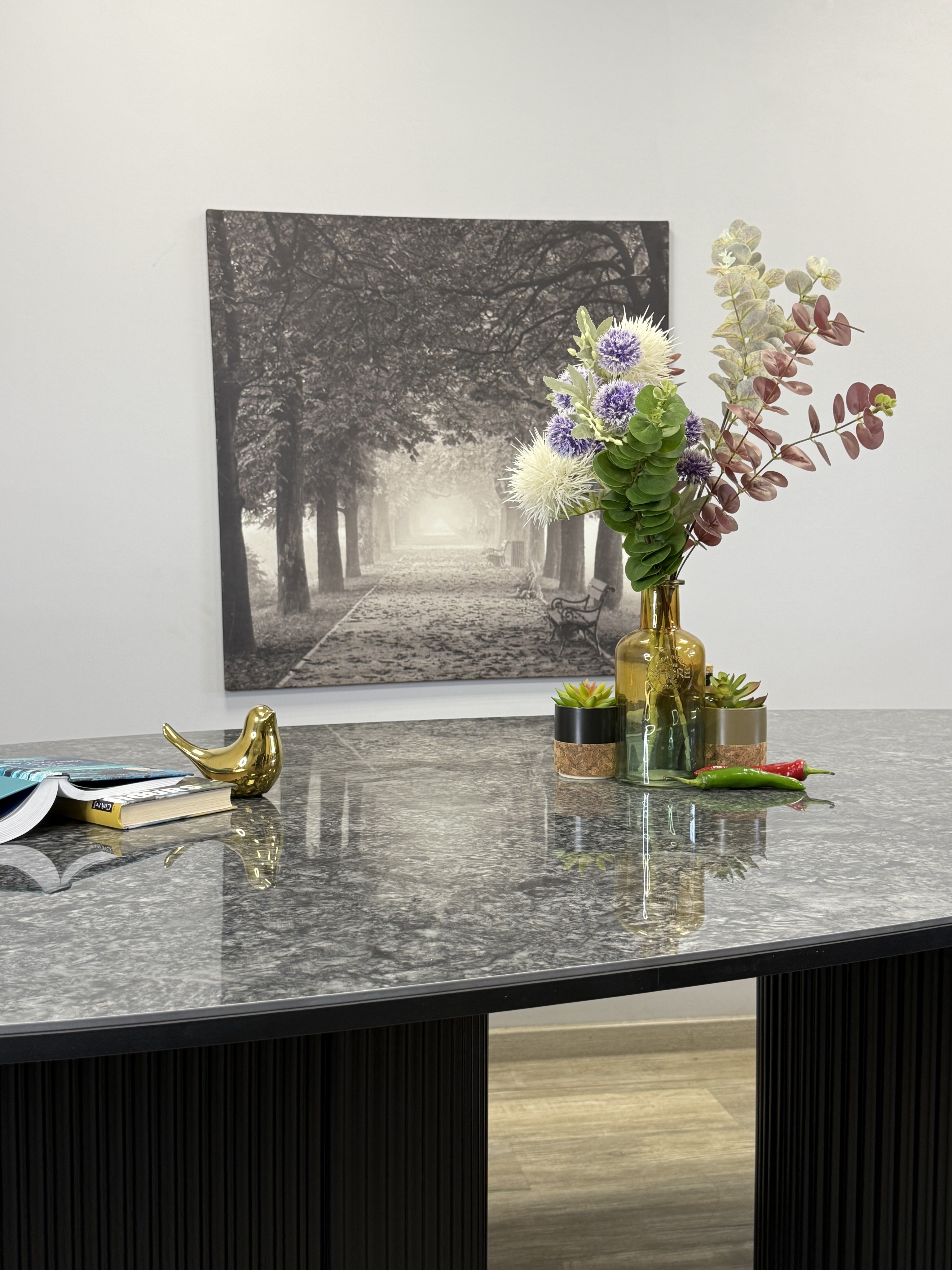 Керамическая столешница устойчива к металлическим предметам, выдерживает до 1000°C и поддерживает свой первоклассный облик без изменений. Также она безопасна для аллергиков, позволяя размещать еду непосредственно на поверхности.
