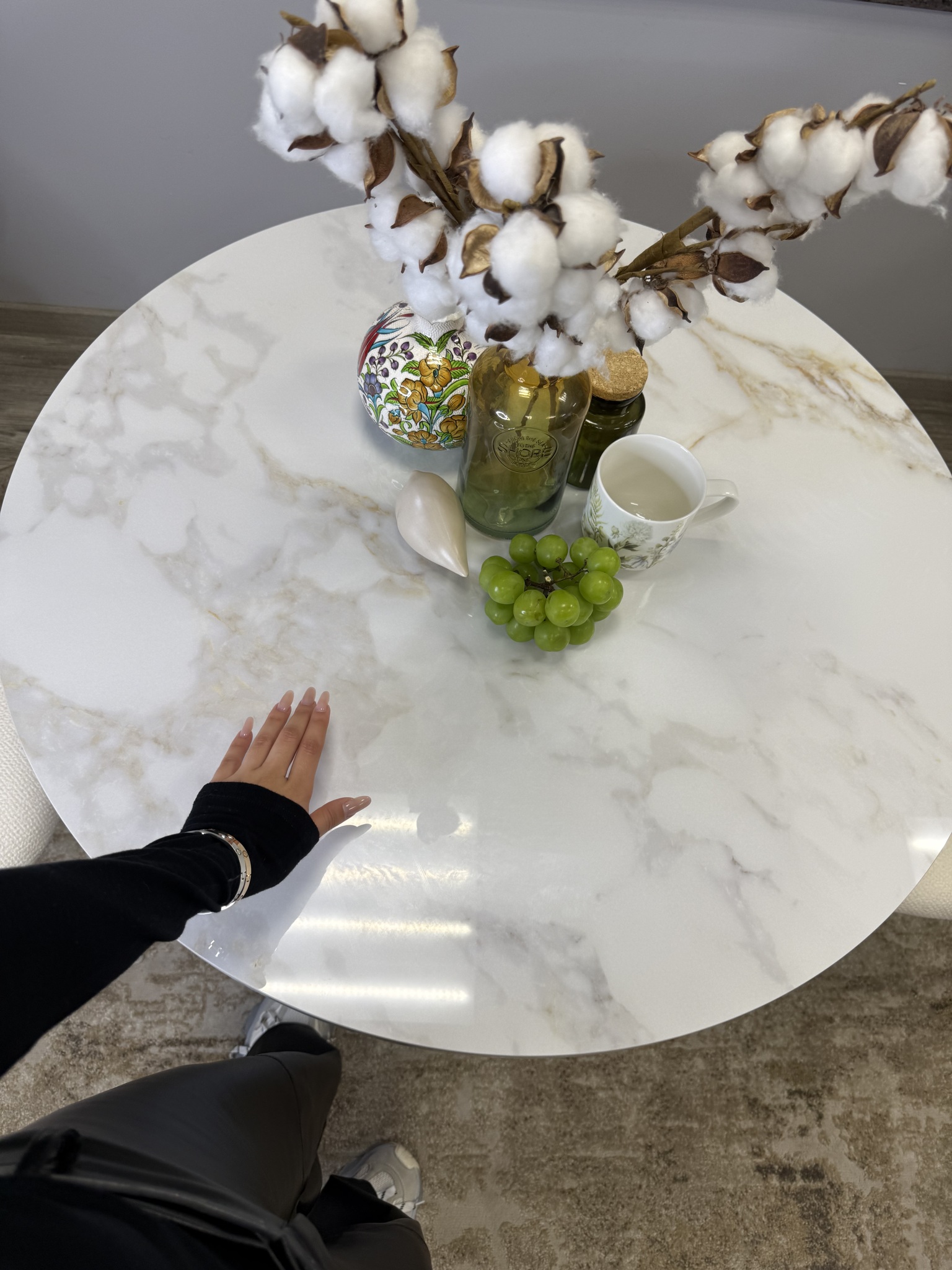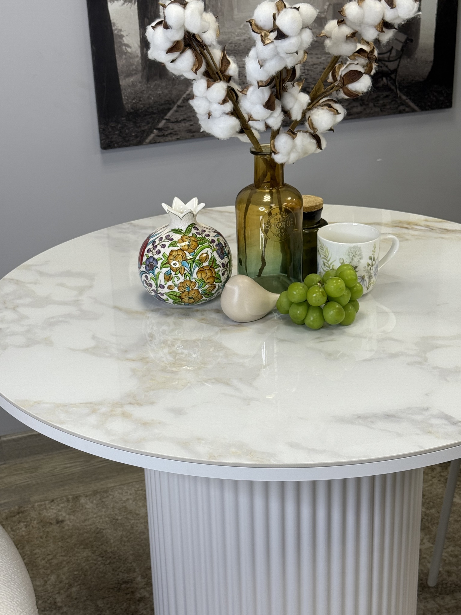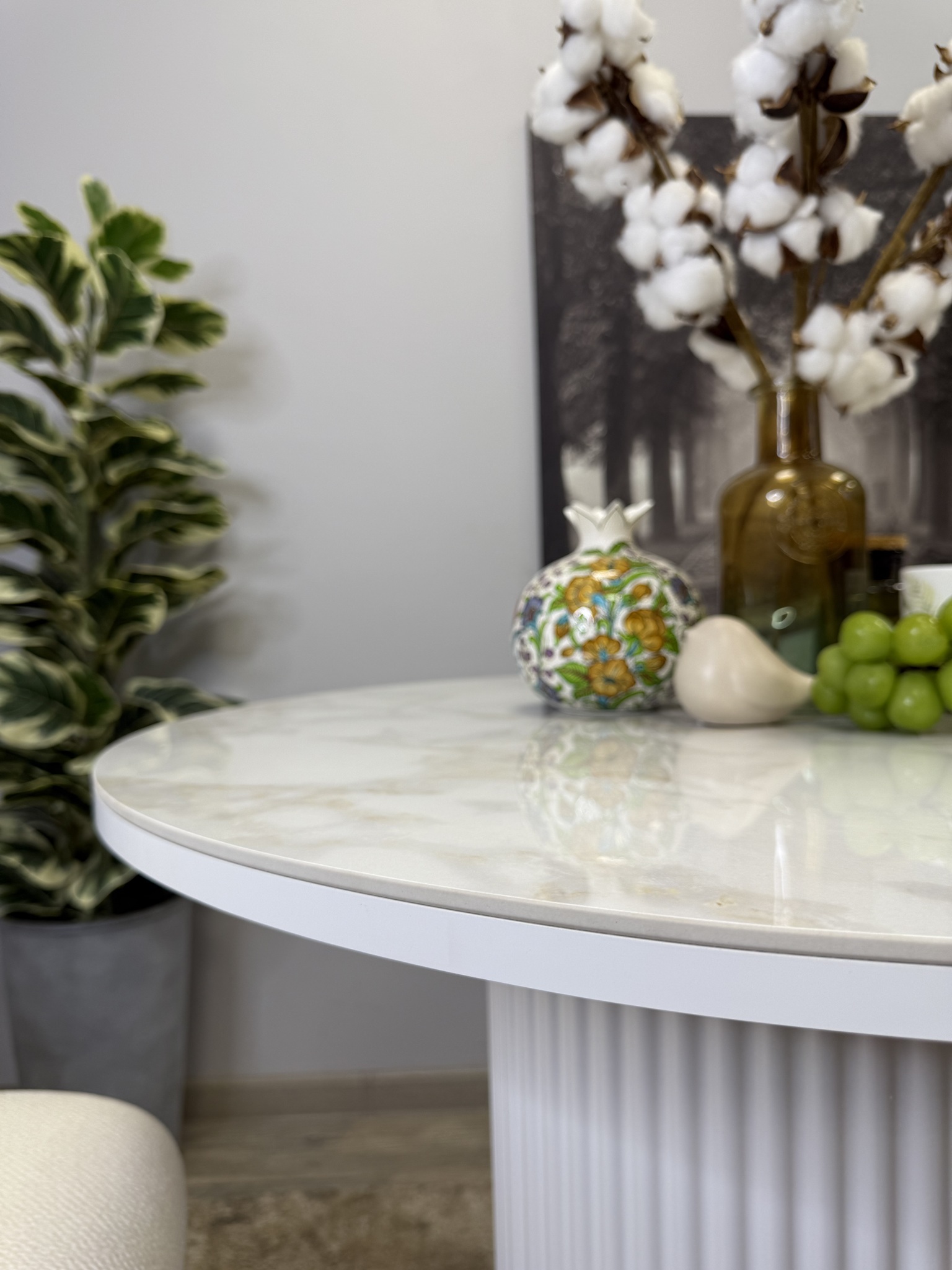 Глянцевая керамическая плитка очень привлекательна благодаря современному дизайну и яркому оформлению. Удобное расположение коленей обеспечивает комфорт при использовании изделия. Размер обеденного стола идеально подходит для четырех персон.