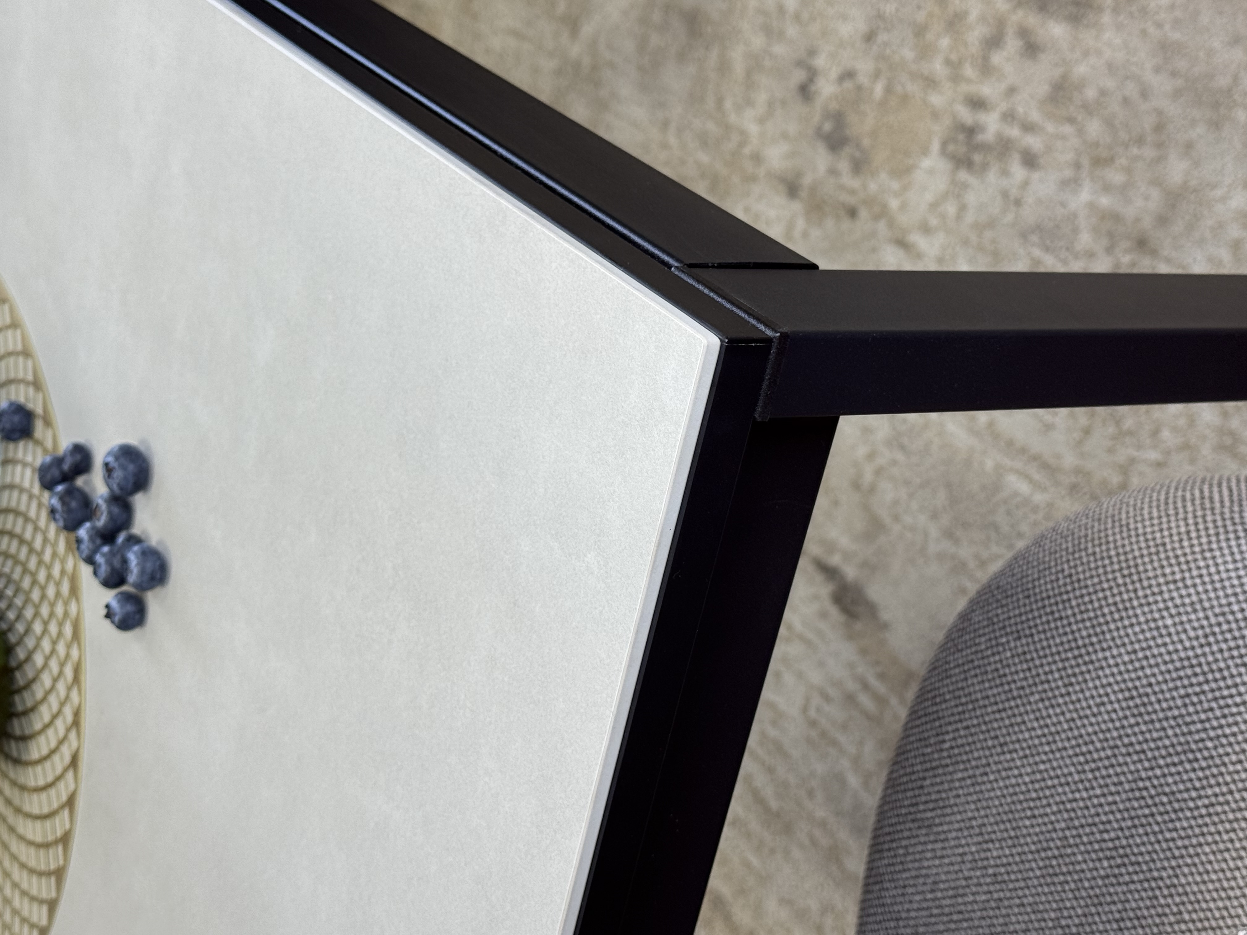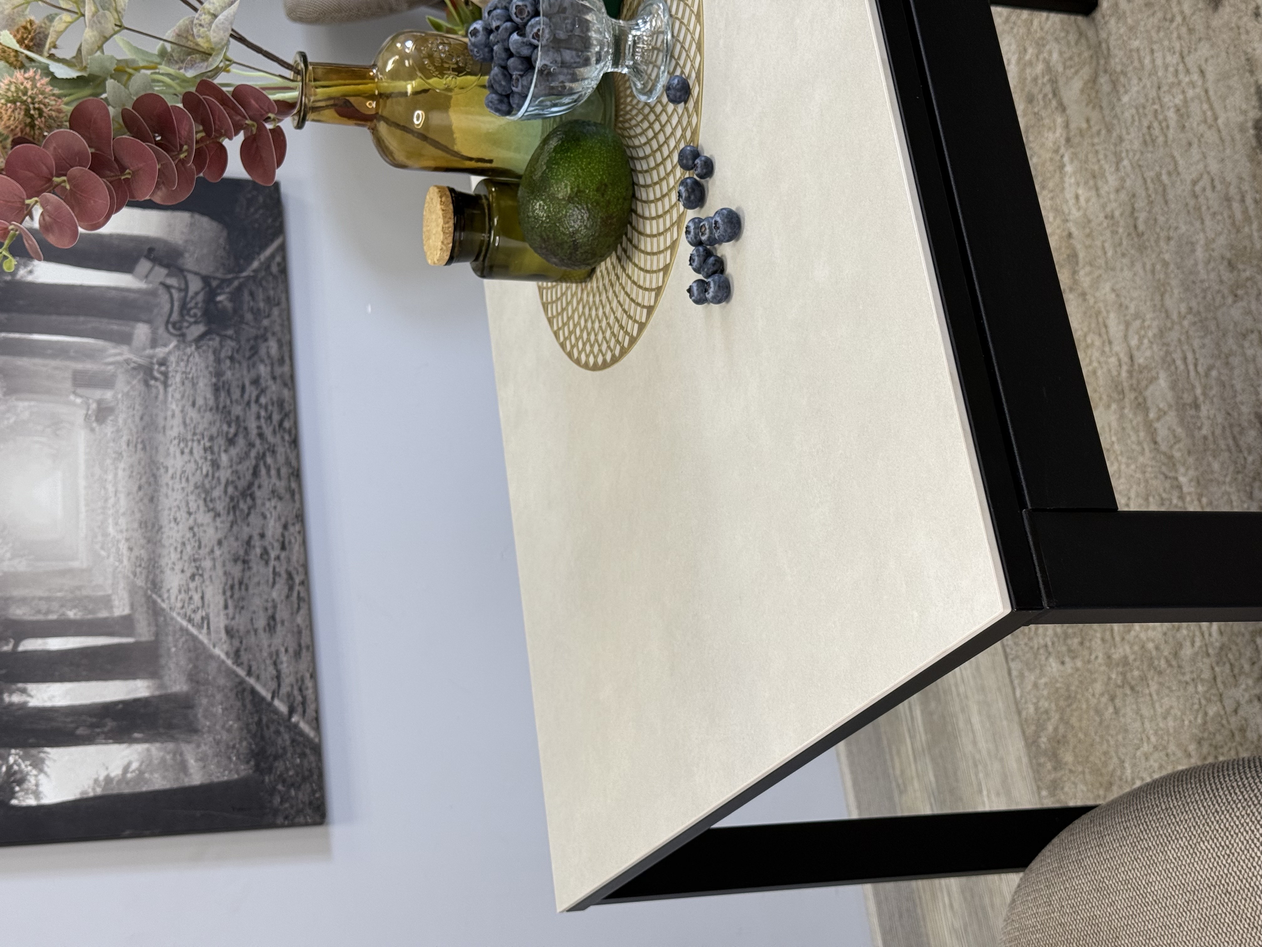 Столешница выполнена из натуральной керамики толщиной 5,6 мм. Керамическая поверхность обладает высокой стойкостью к температурам вплоть до 1000°C, что позволяет размещать на ней даже очень горячие предметы. Благодаря своей твердости, превосходящей металл, она устойчива к механическим повреждениям и царапинам от кухонных принадлежностей. Кроме того, керамика абсолютно инертна к воздействию воды и любых средств бытовой химии.