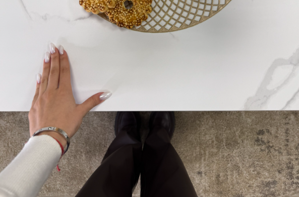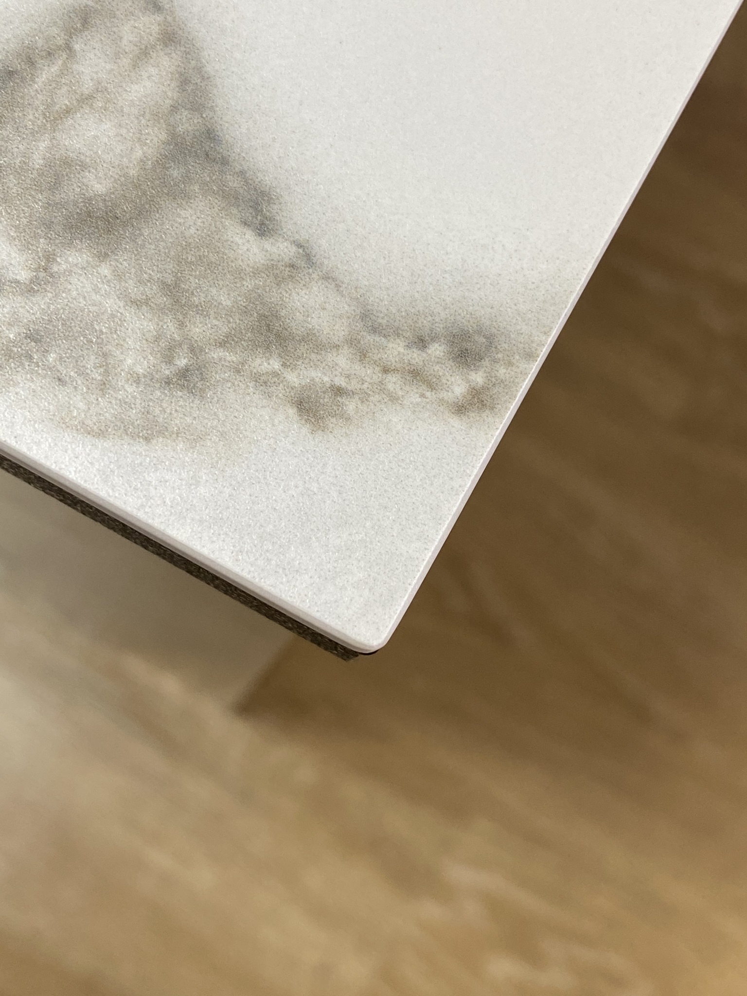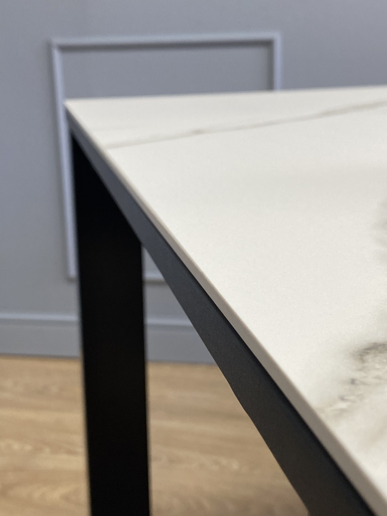 Столешница выполнена из натуральной керамики толщиной 5,6 мм. Керамическая поверхность обладает высокой стойкостью к температурам вплоть до 1000°C, что позволяет размещать на ней даже очень горячие предметы. Благодаря своей твердости, превосходящей металл, она устойчива к механическим повреждениям и царапинам от кухонных принадлежностей. Кроме того, керамика абсолютно инертна к воздействию воды и любых средств бытовой химии.