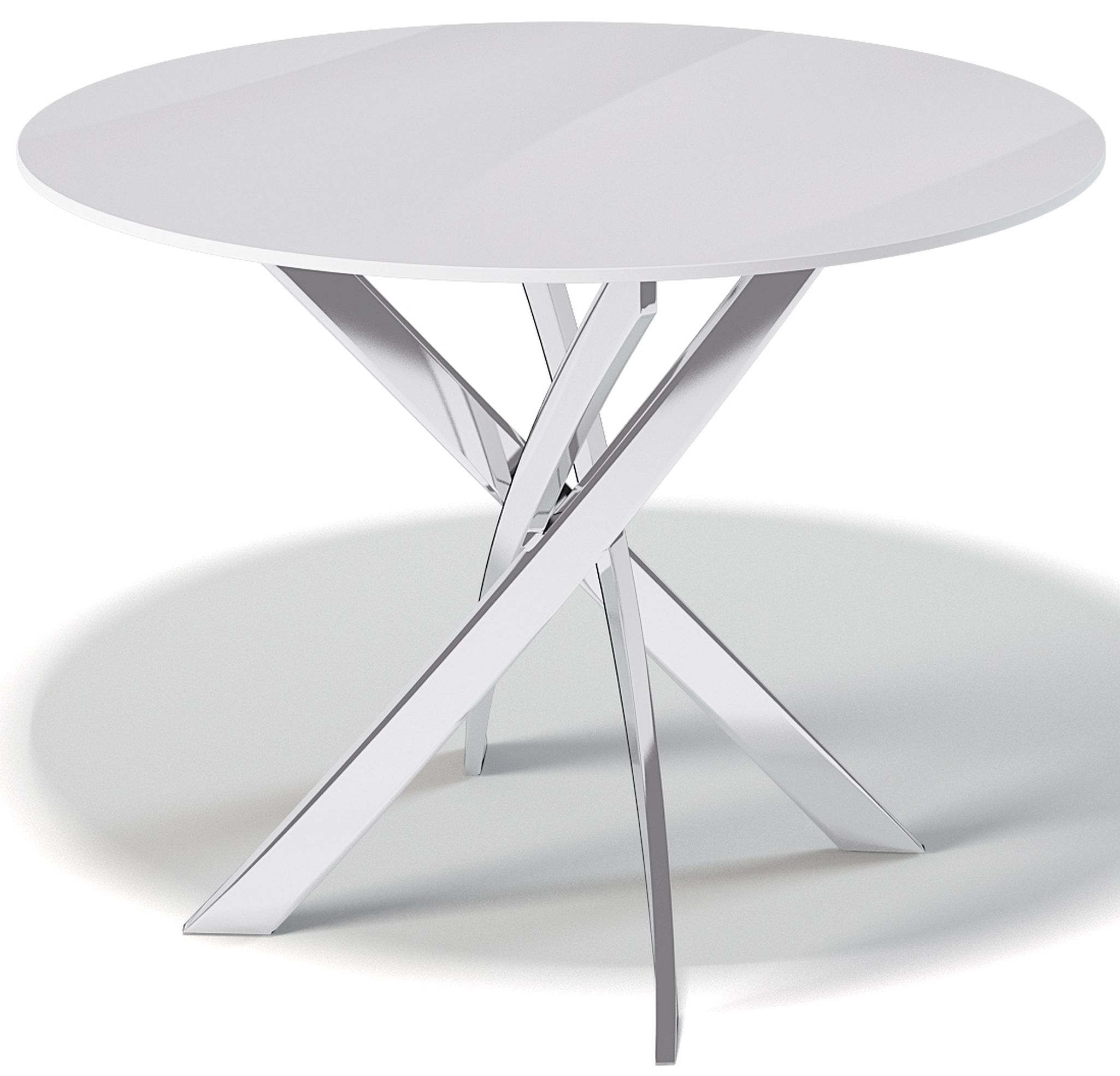 Стол круглый KENNER R1000, ножки - белые, стеклянная белая глянцевая столешница. Стильные, дизайнерские столы для дома. Фабрика "Кеннер". Гарантия качества. Быстрая доставка по РФ. Интерьерный стол с толстой столешницей и надежным металлическим основанием. Полностью стеклянной столешнице не страшна влага или средства бытовой химии, ее тяжело повредить и разбить