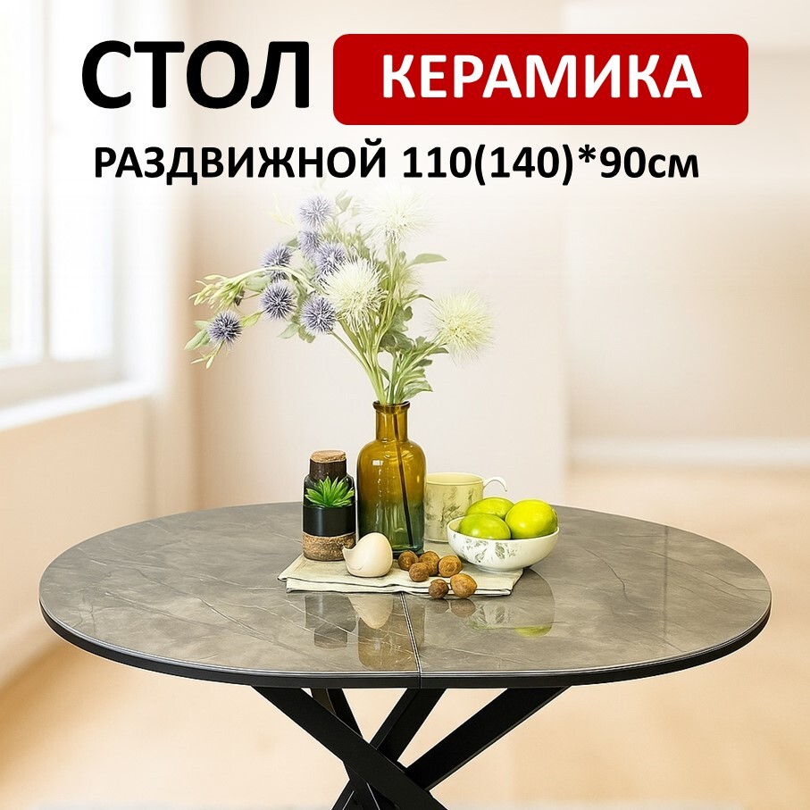 Ключевой особенностью этого стола является керамическая поверхность диаметром 100 см и долговечным, стабильным основанием. Дополняет комплект вставка на 30 см, расширяющая площадь стола.