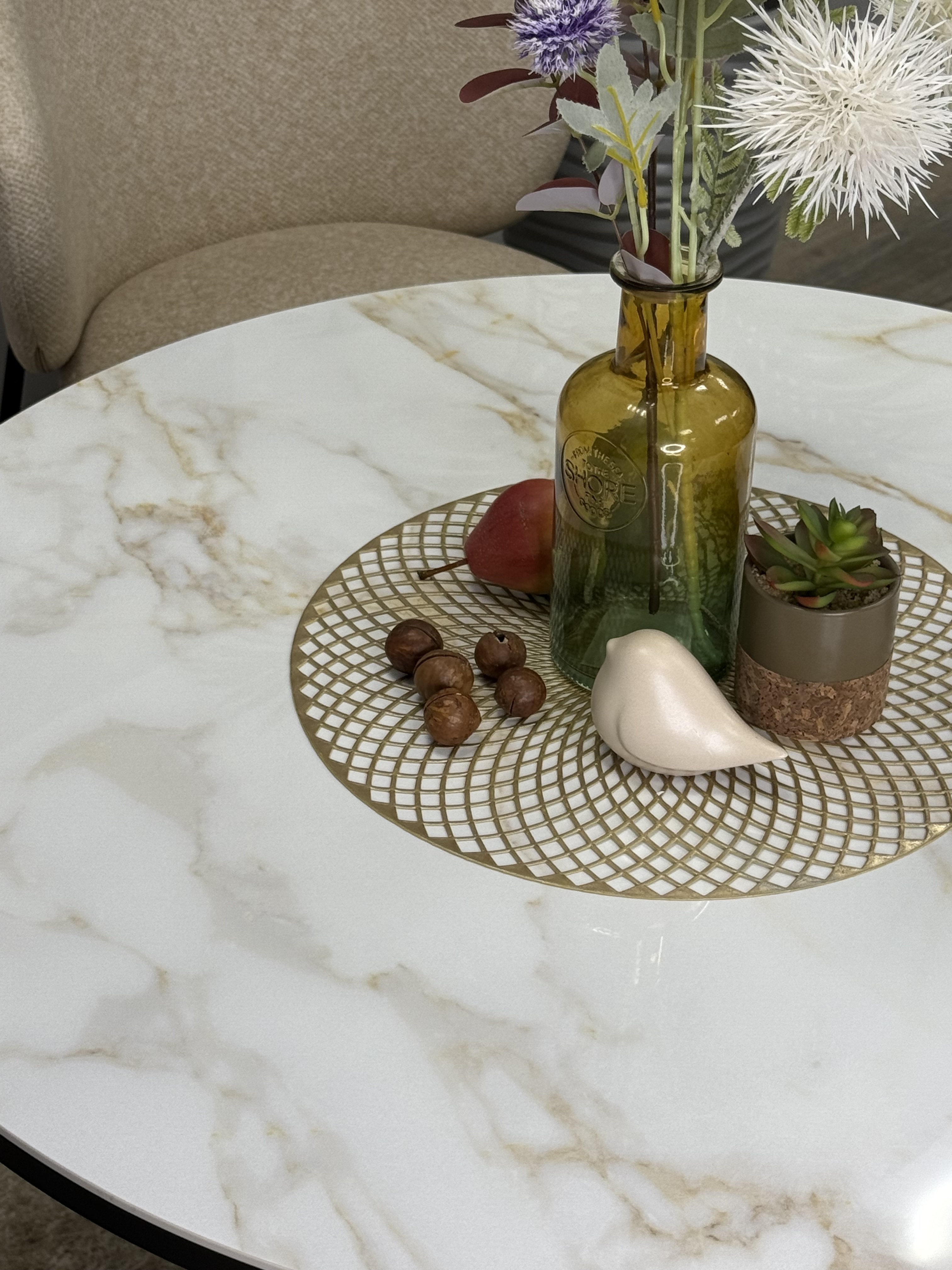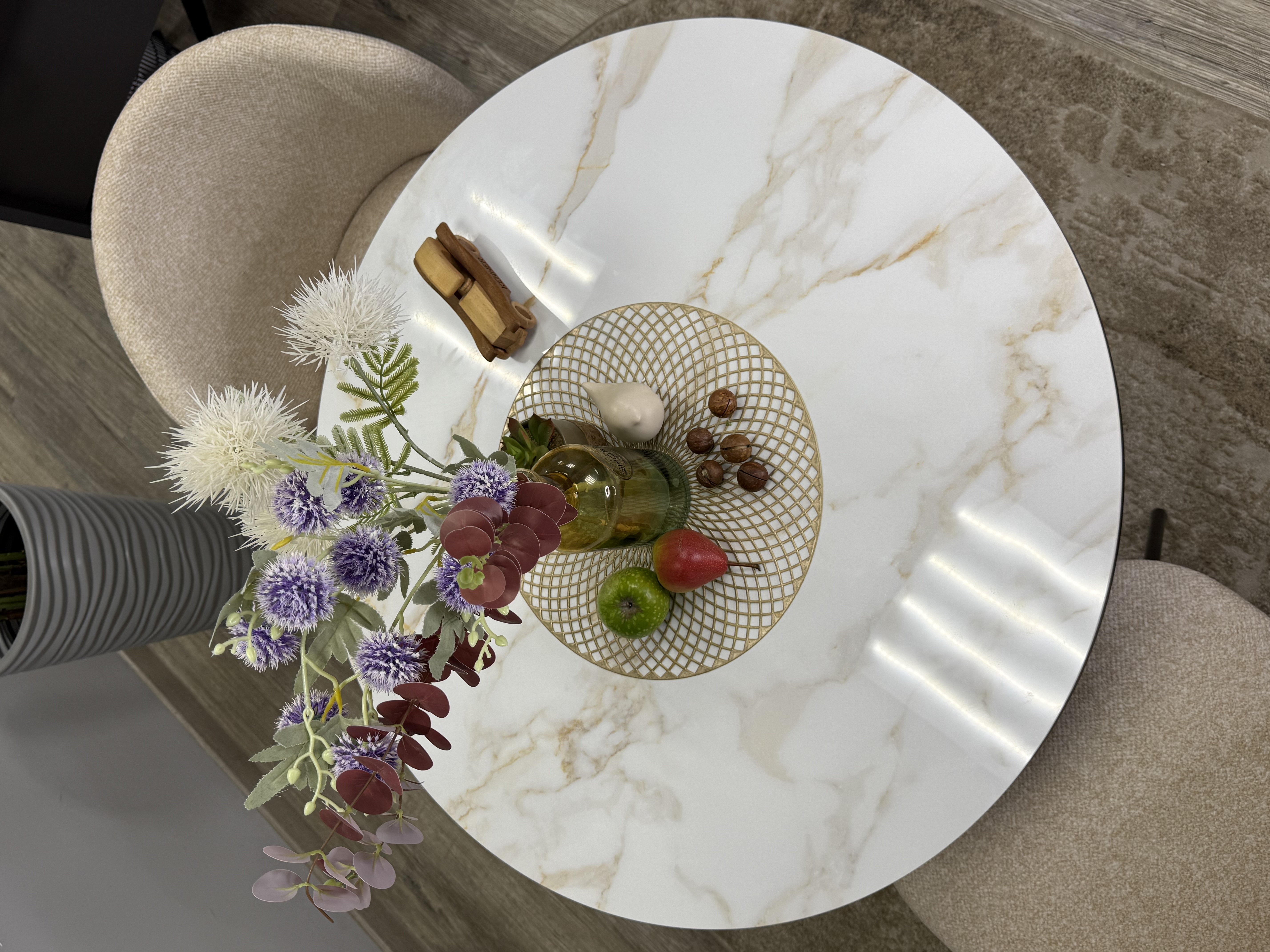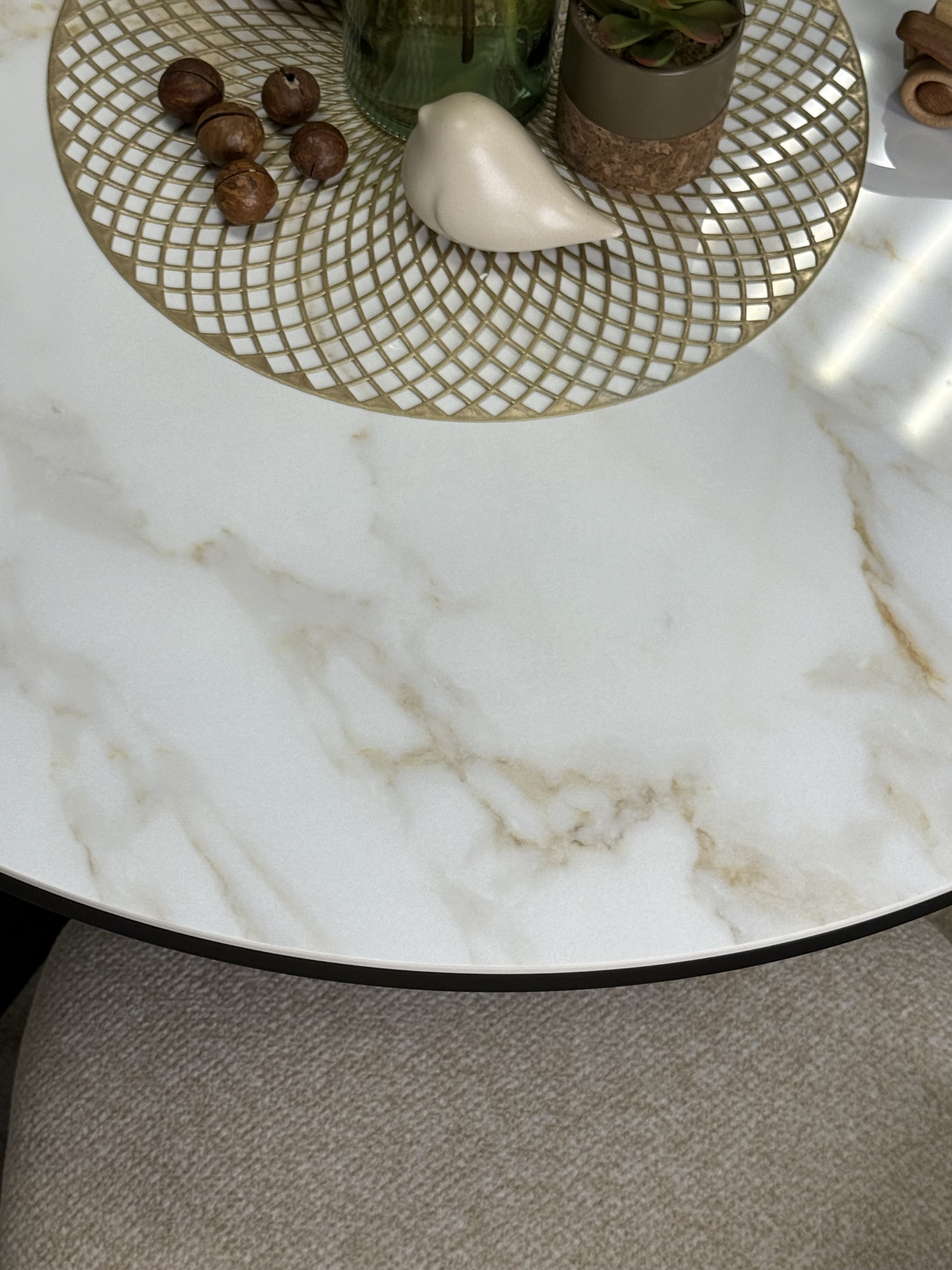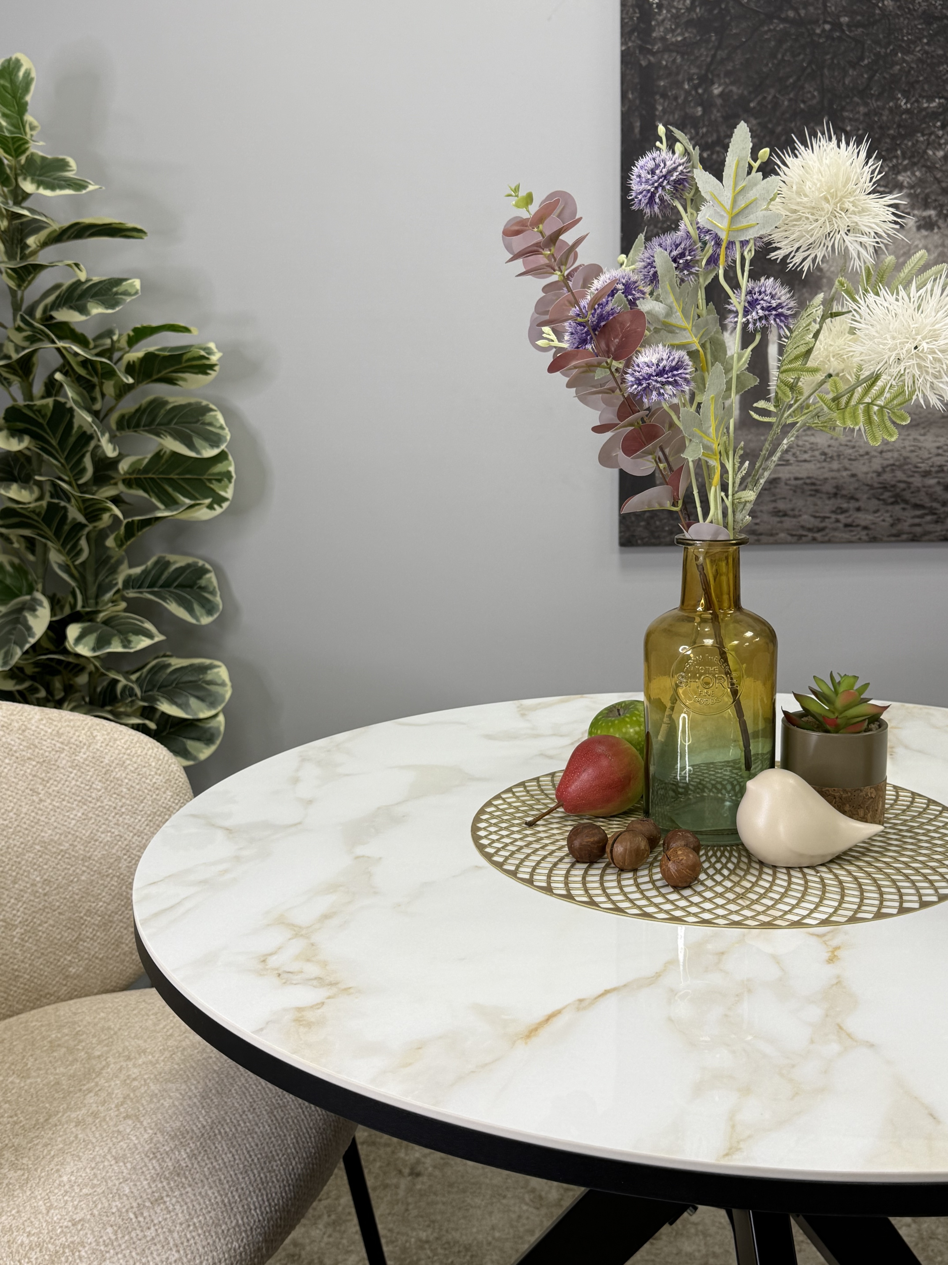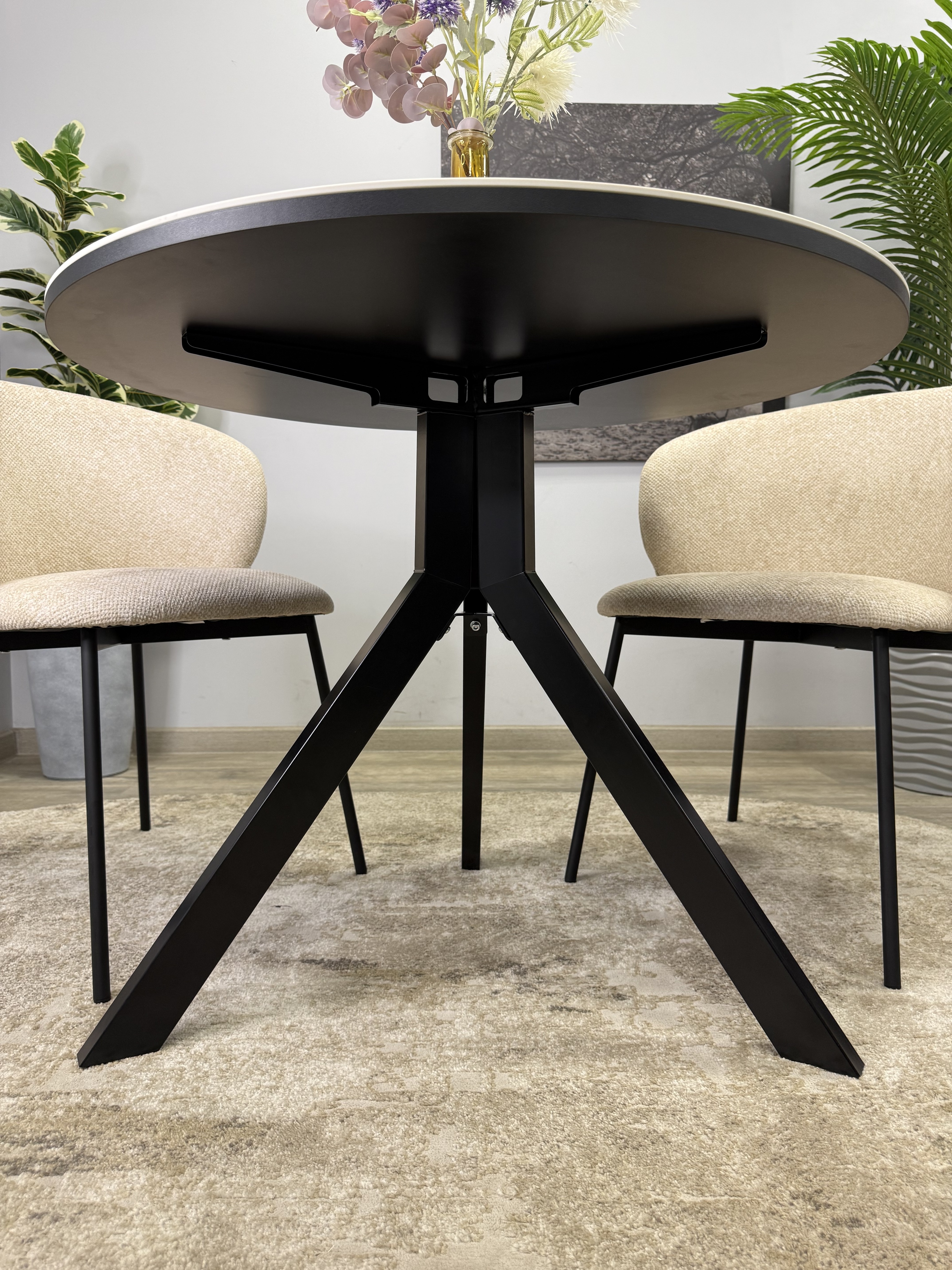Круглый стол с керамикой защищает стол от любого внешнего воздействия, а ножки выполнены настолько эргономично, что к столу удобно сесть с любой стороны