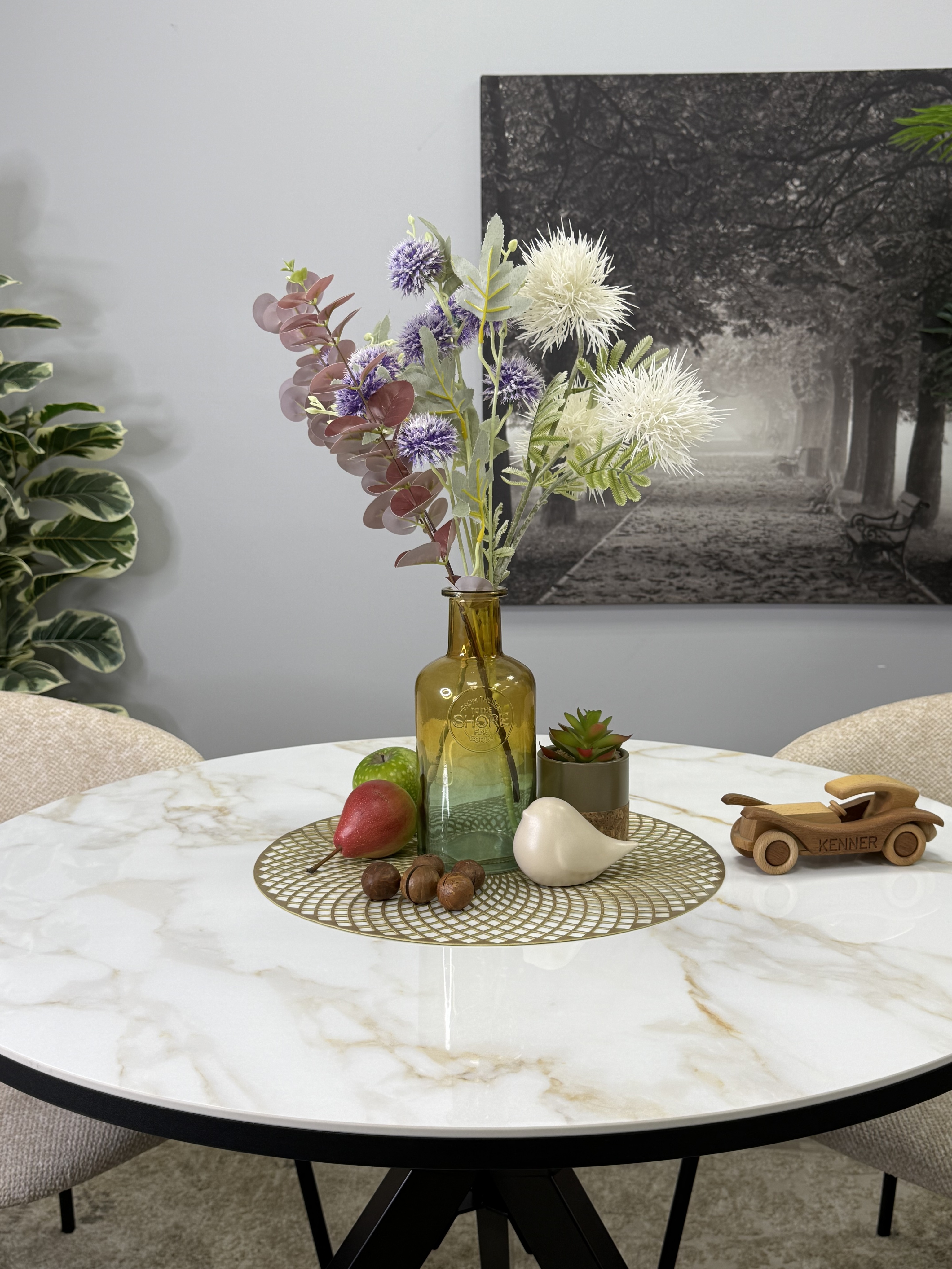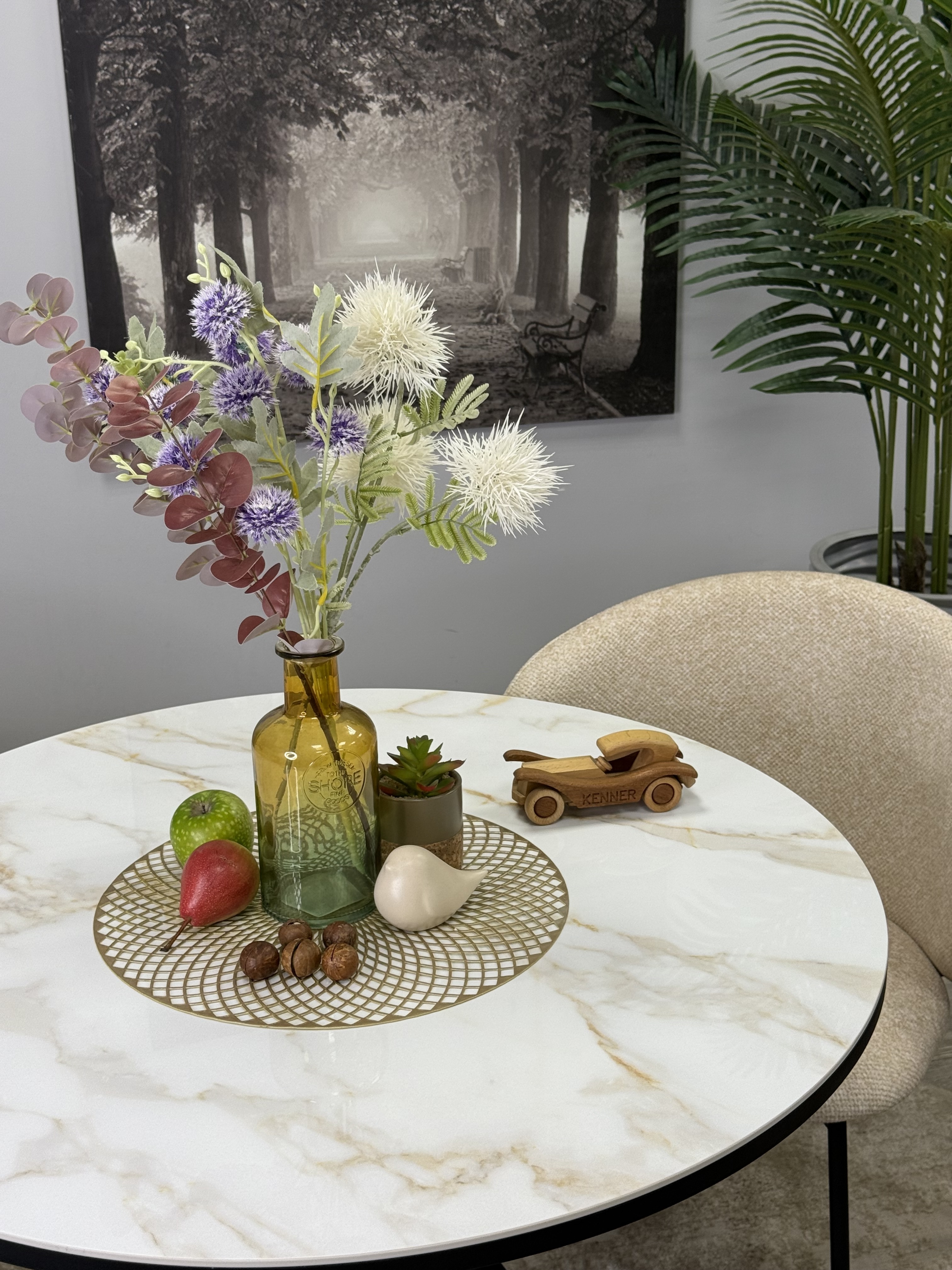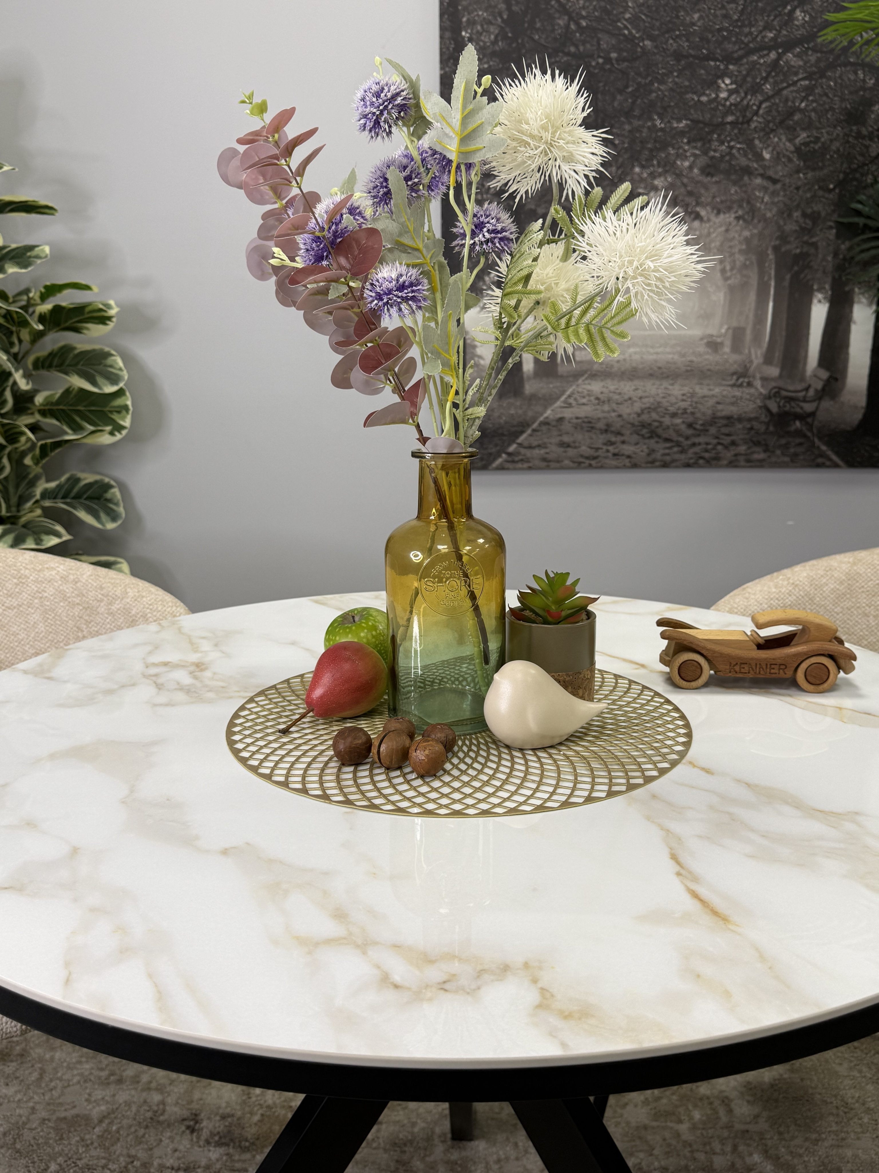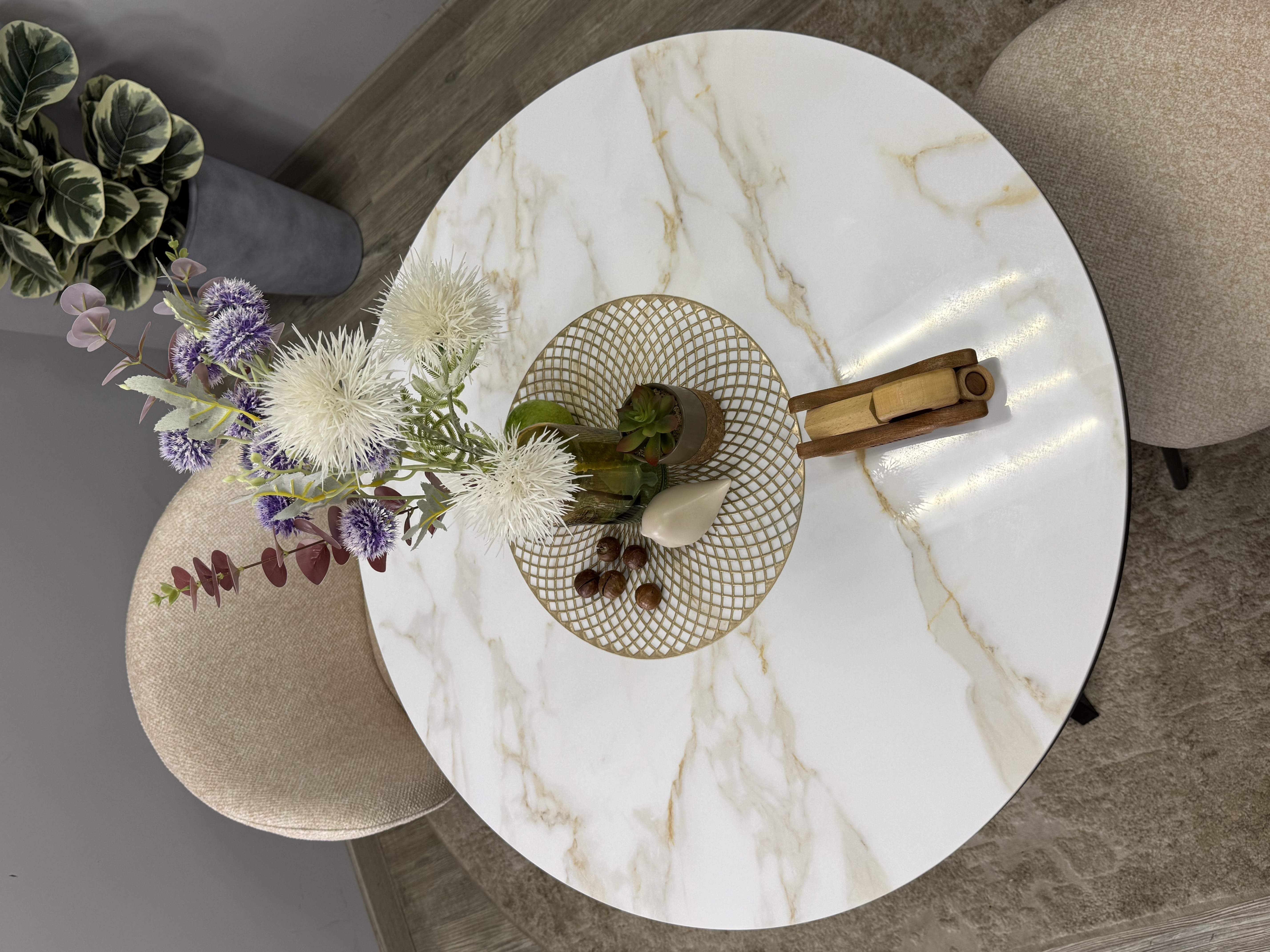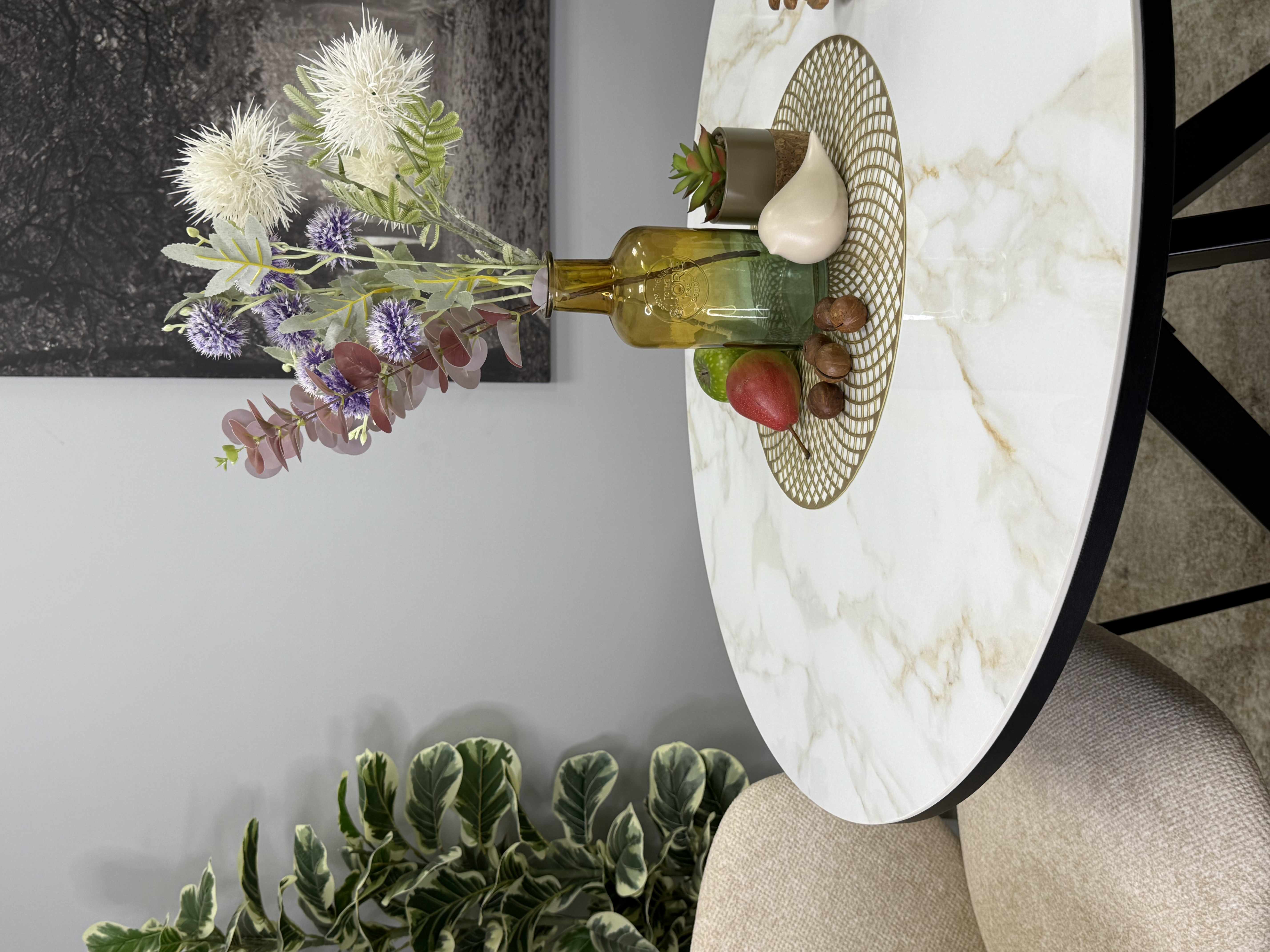 Круглый стол с керамикой защищает стол от любого внешнего воздействия, а ножки выполнены настолько эргономично, что к столу удобно сесть с любой стороны