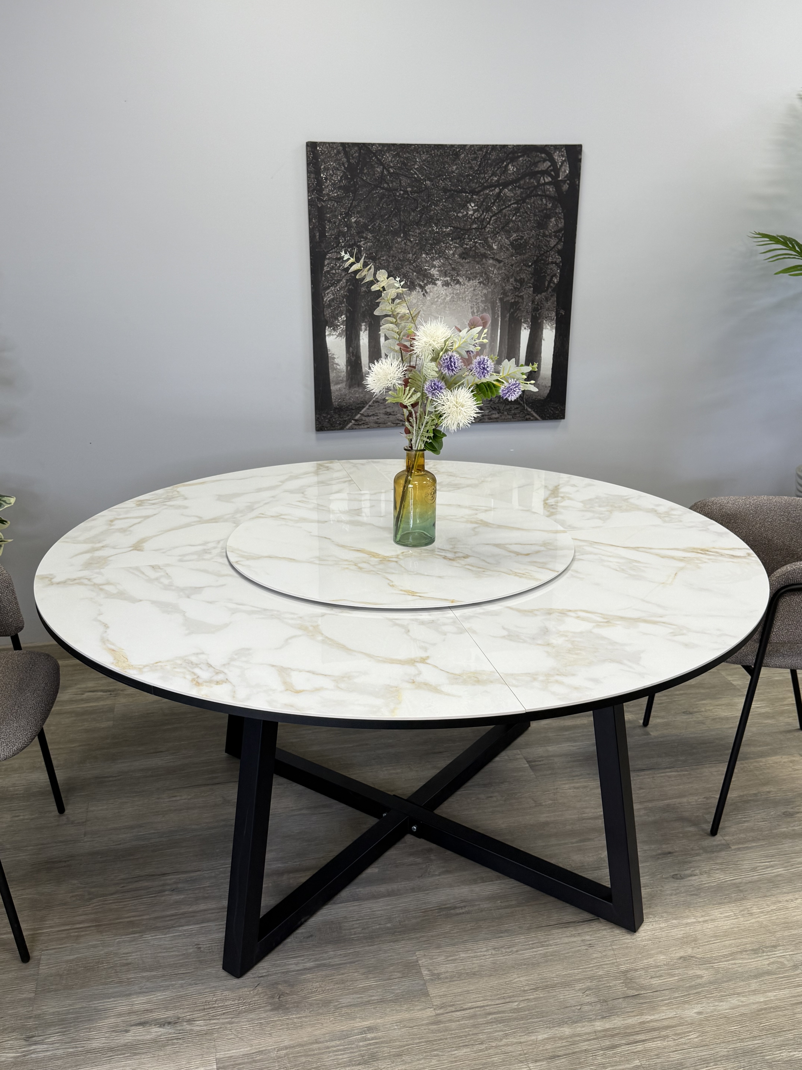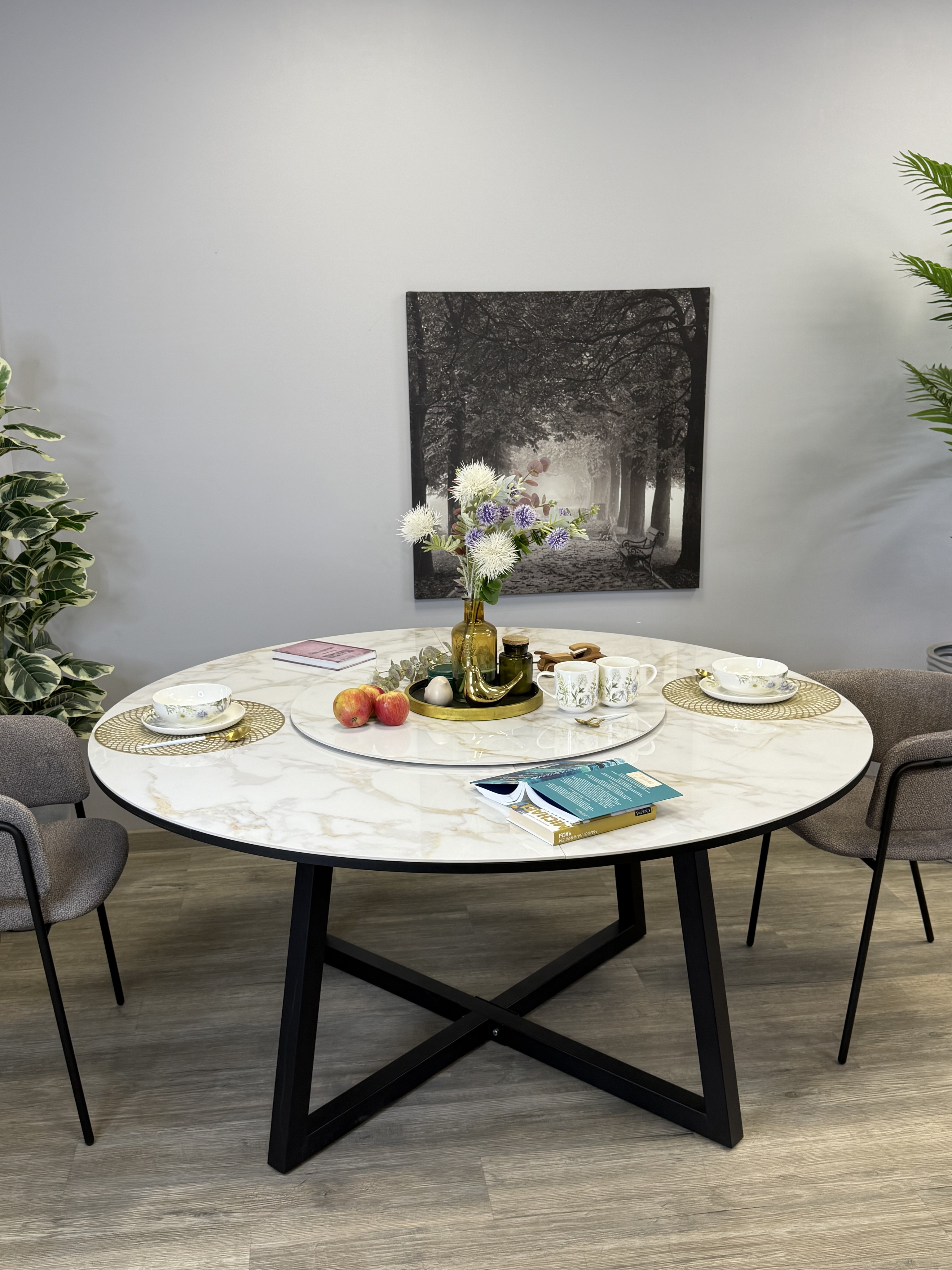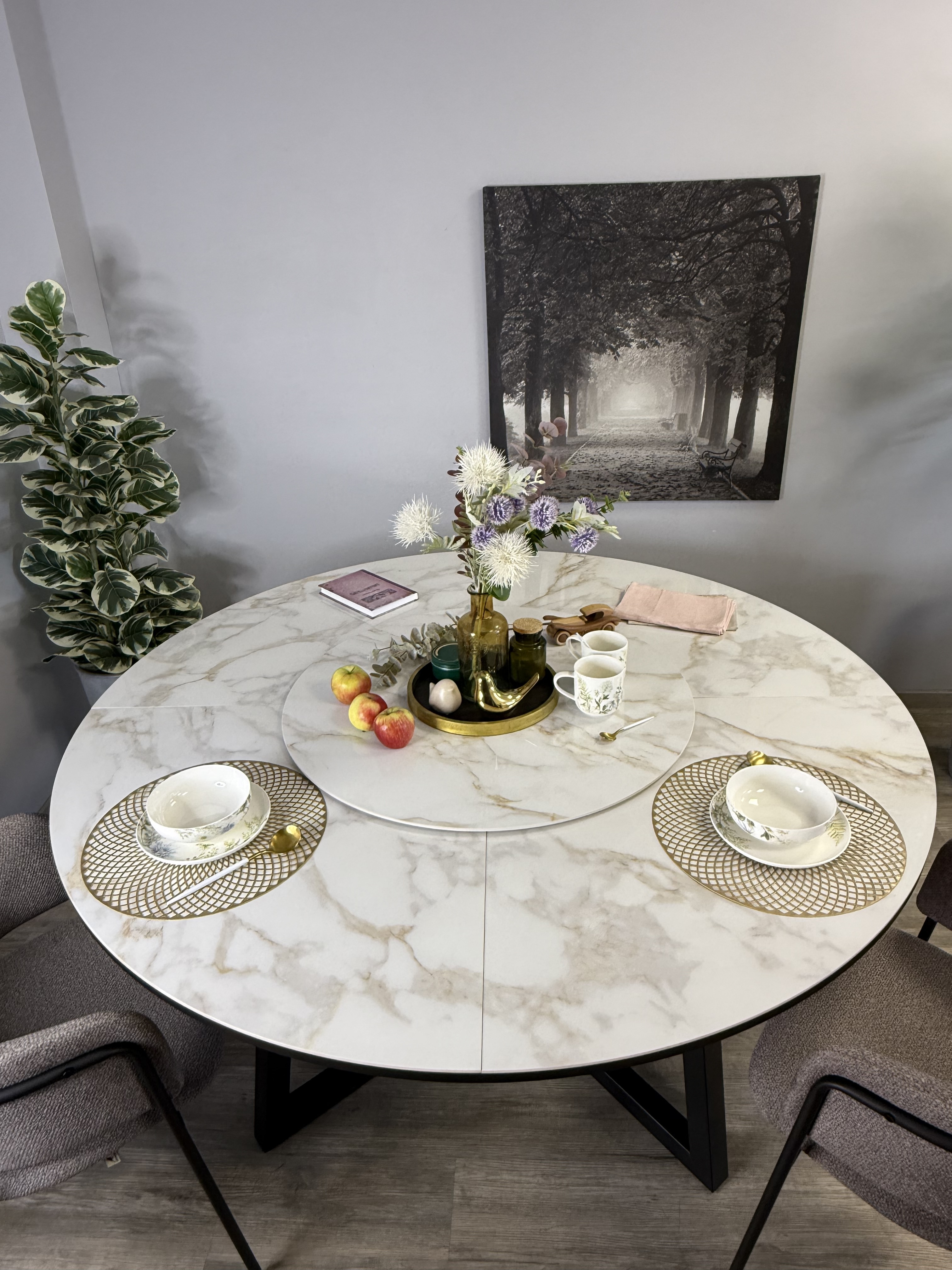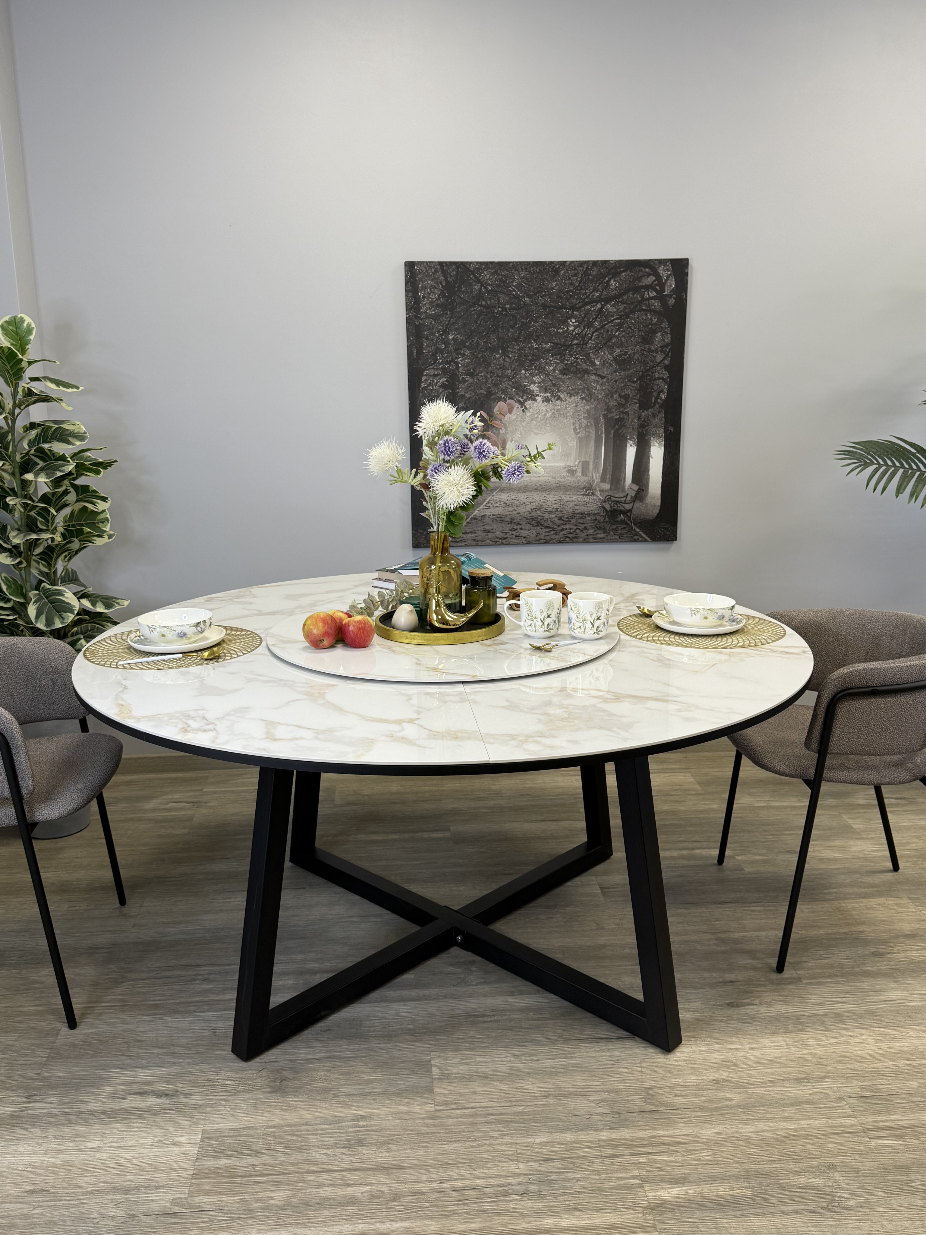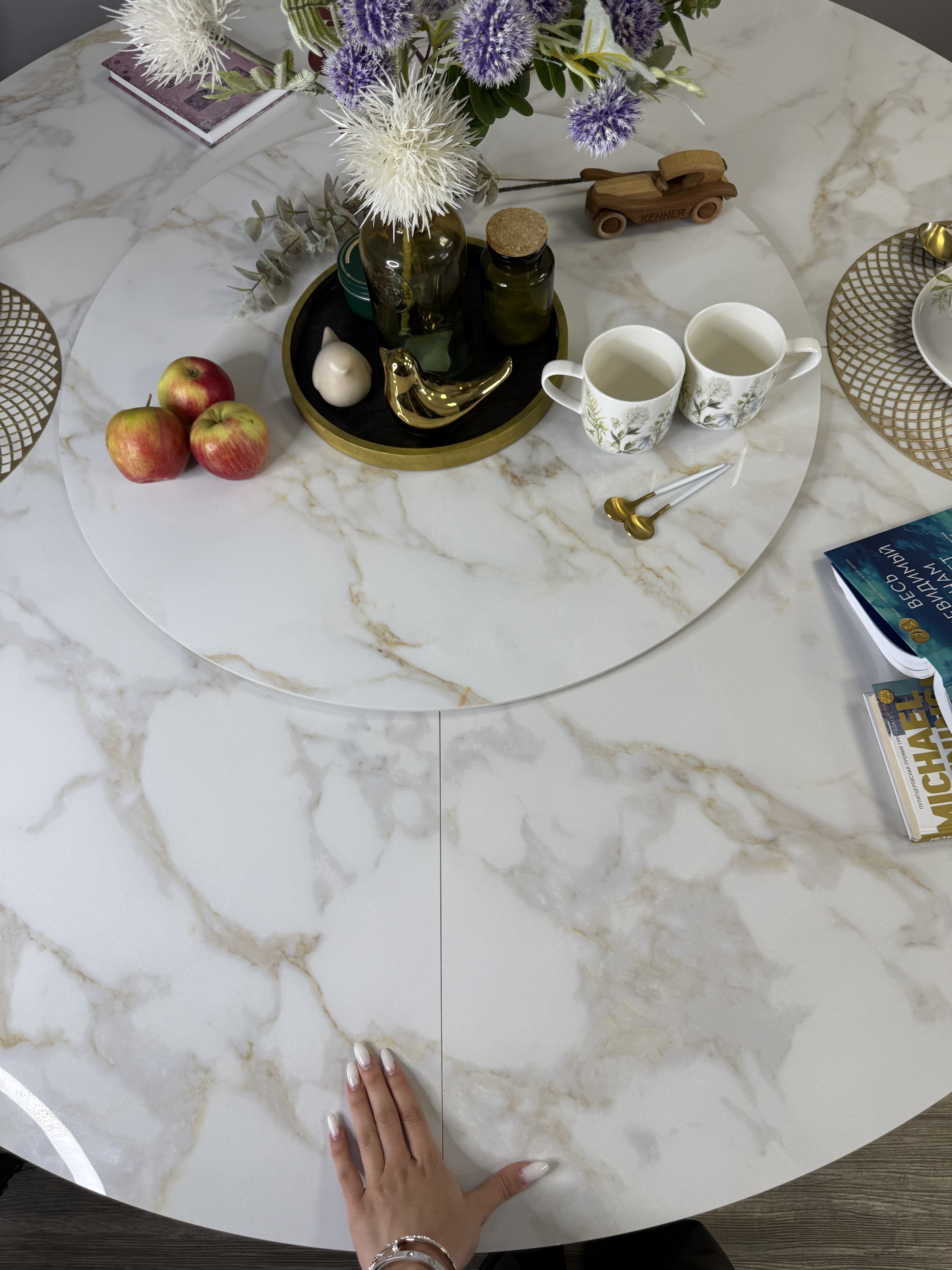 Большая двухсоставная столешница круглой формы, выполненная из высококачественной керамики, обеспечивает повышенную прочность и долговечность. Благодаря устойчивости к механическим повреждениям и термошокам, она идеально подходит для интенсивной эксплуатации.
