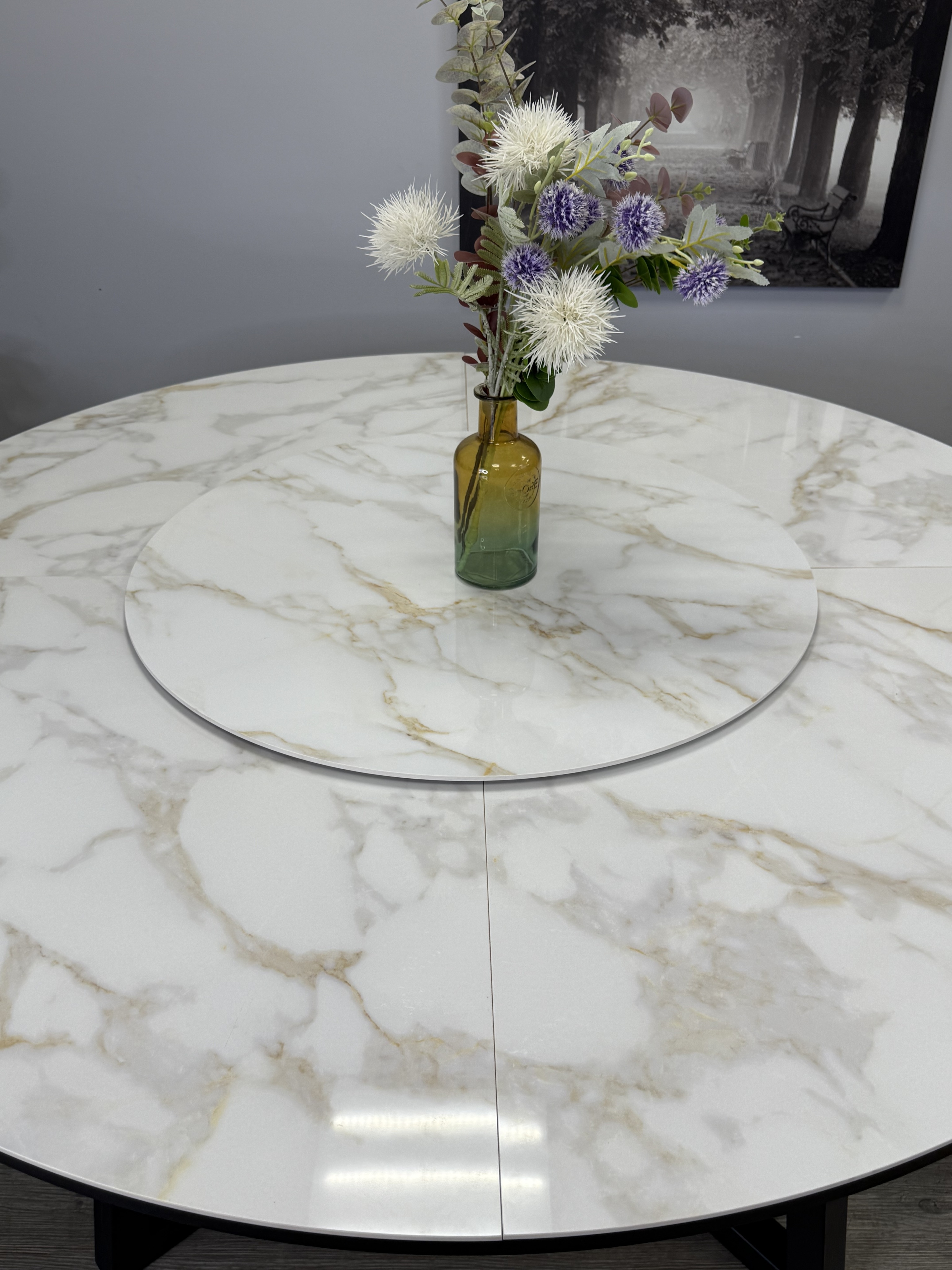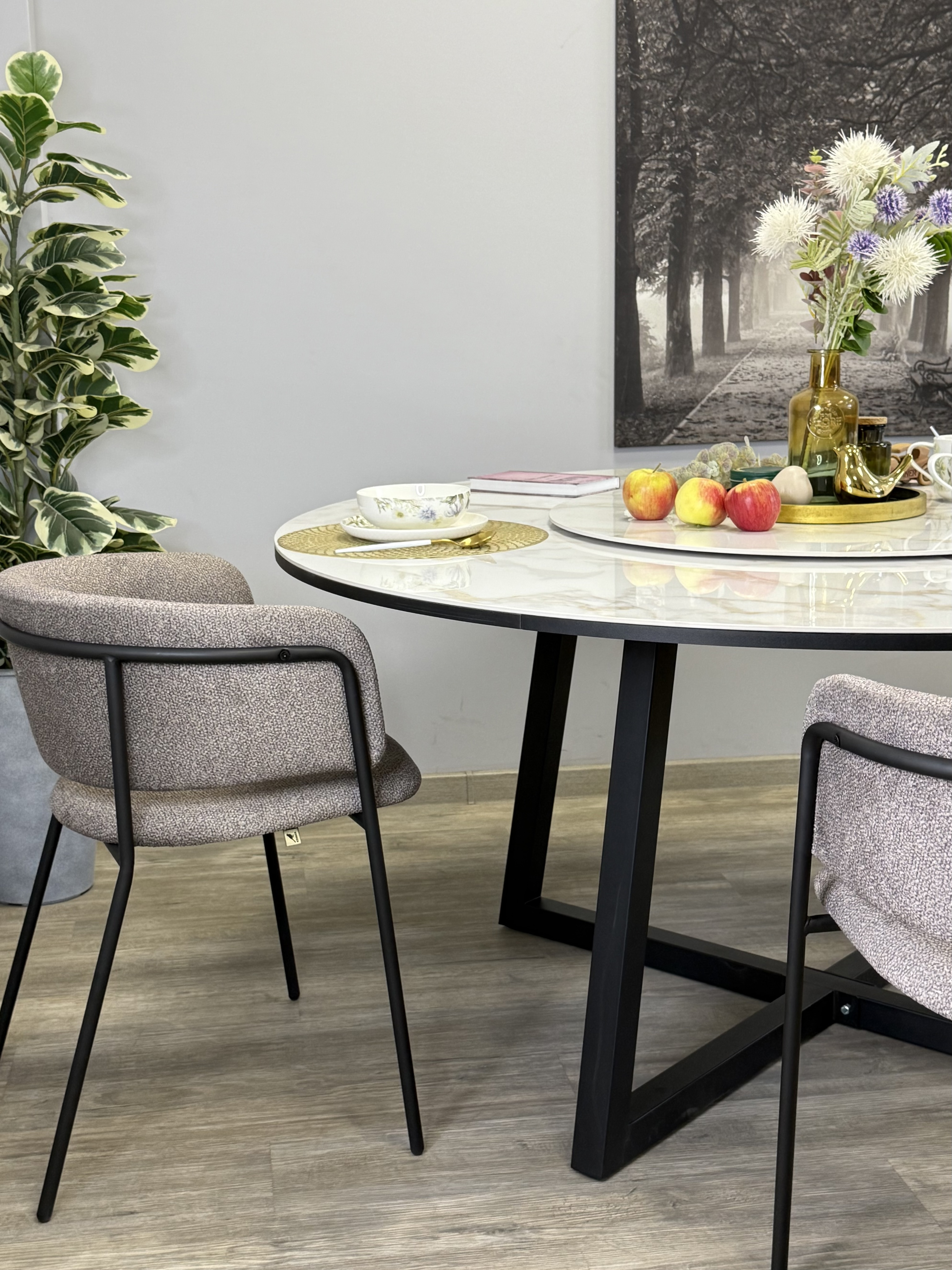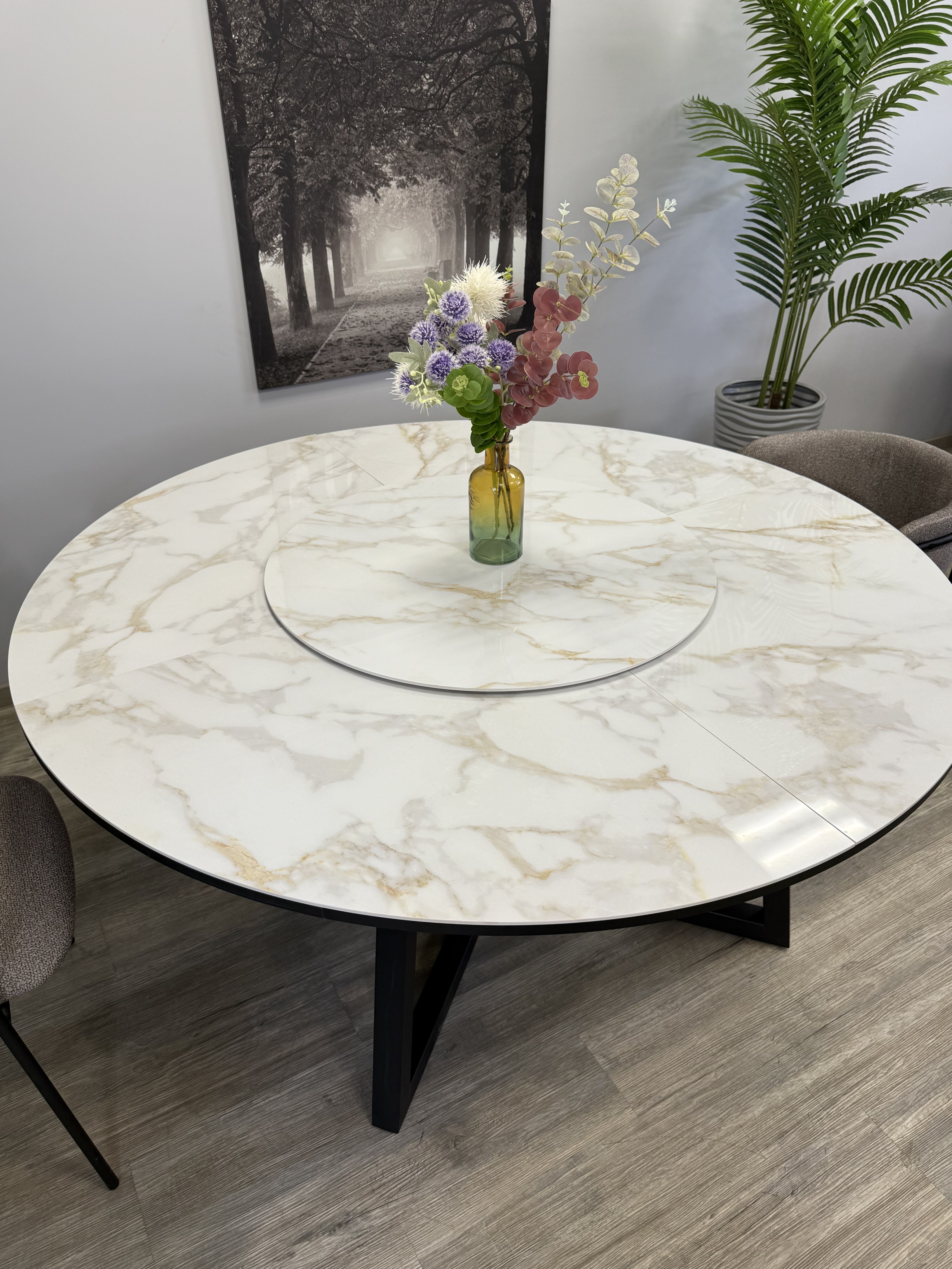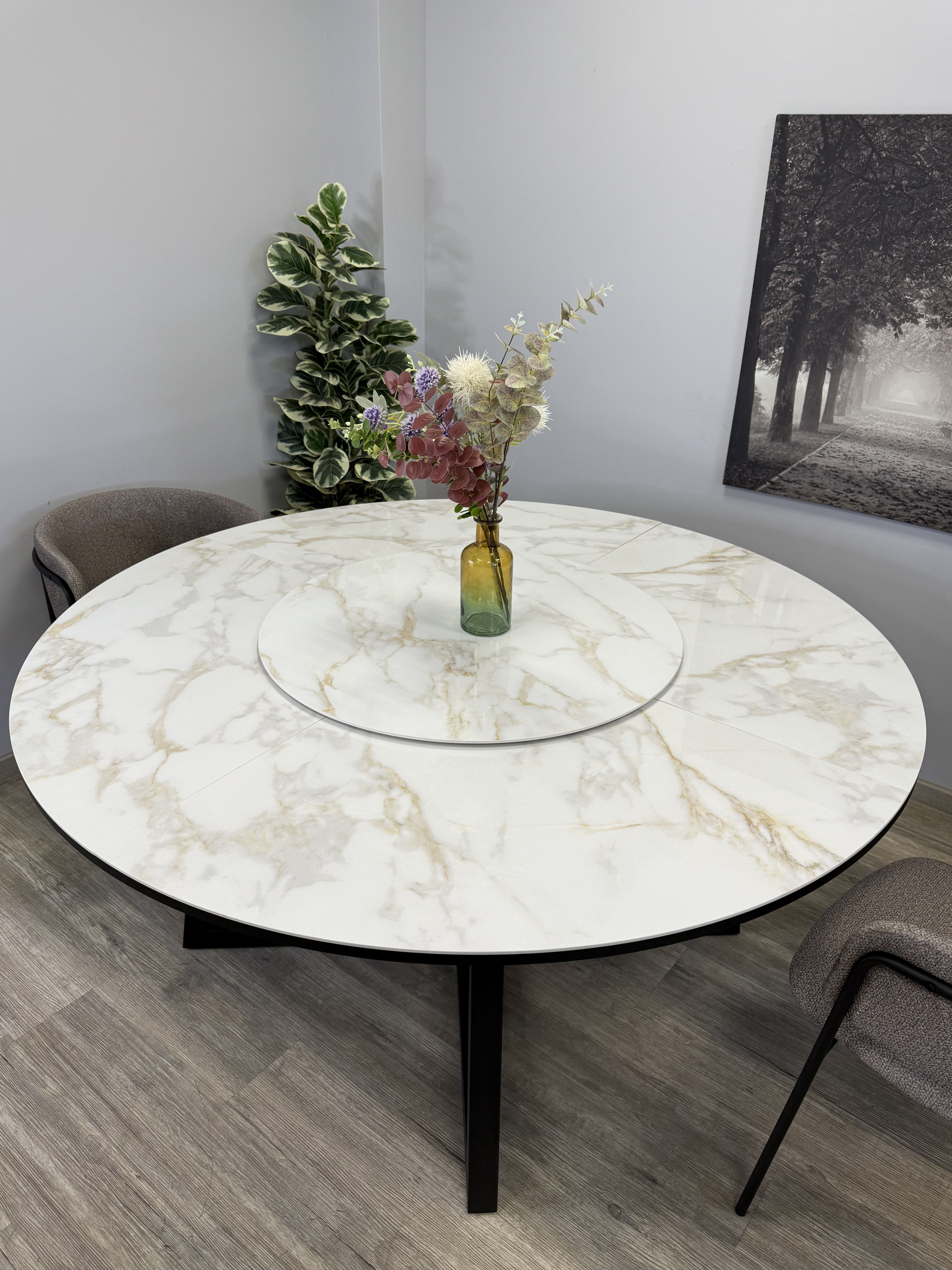 Большая двухсоставная столешница круглой формы, выполненная из высококачественной керамики, обеспечивает повышенную прочность и долговечность. Благодаря устойчивости к механическим повреждениям и термошокам, она идеально подходит для интенсивной эксплуатации.