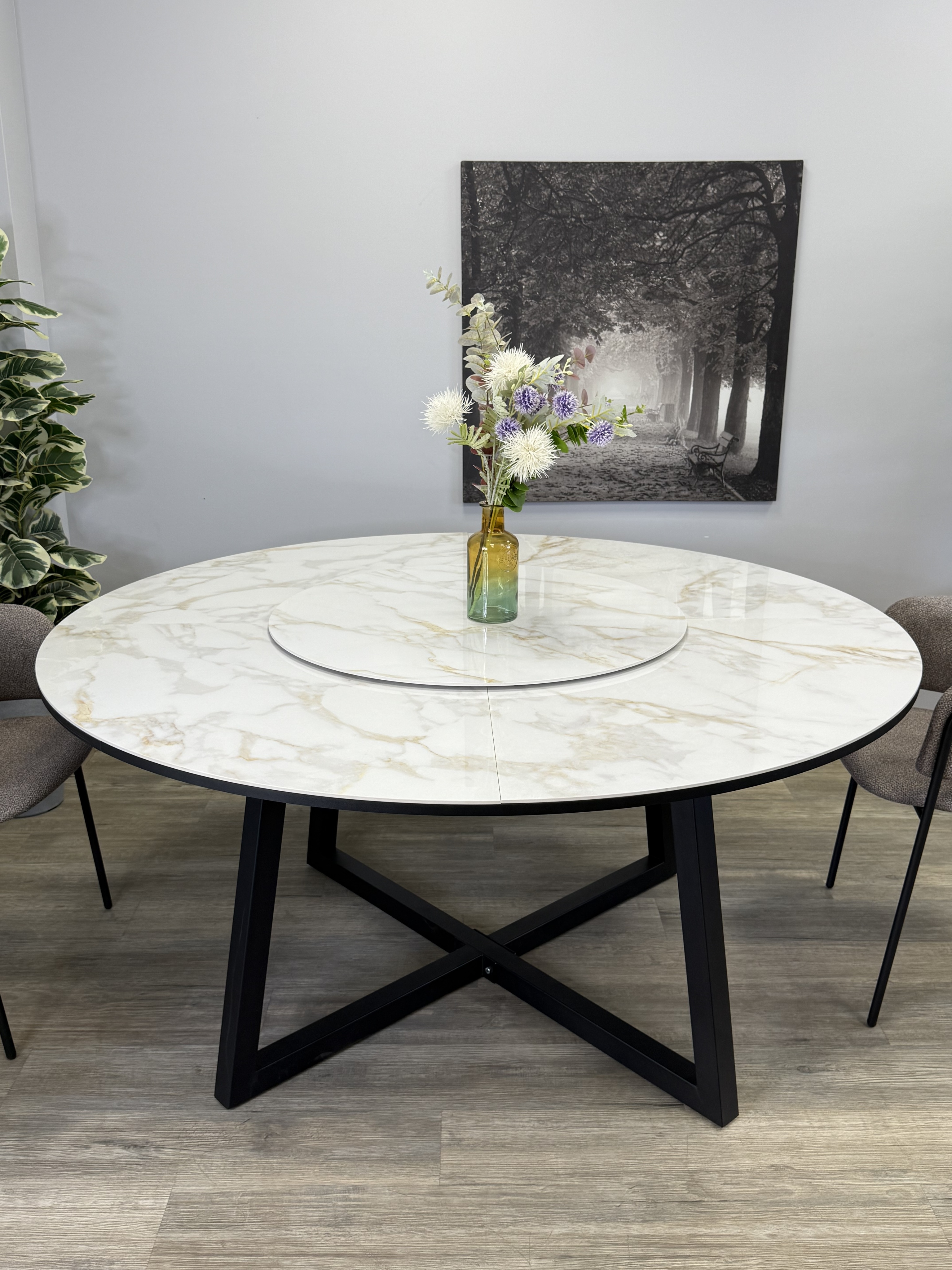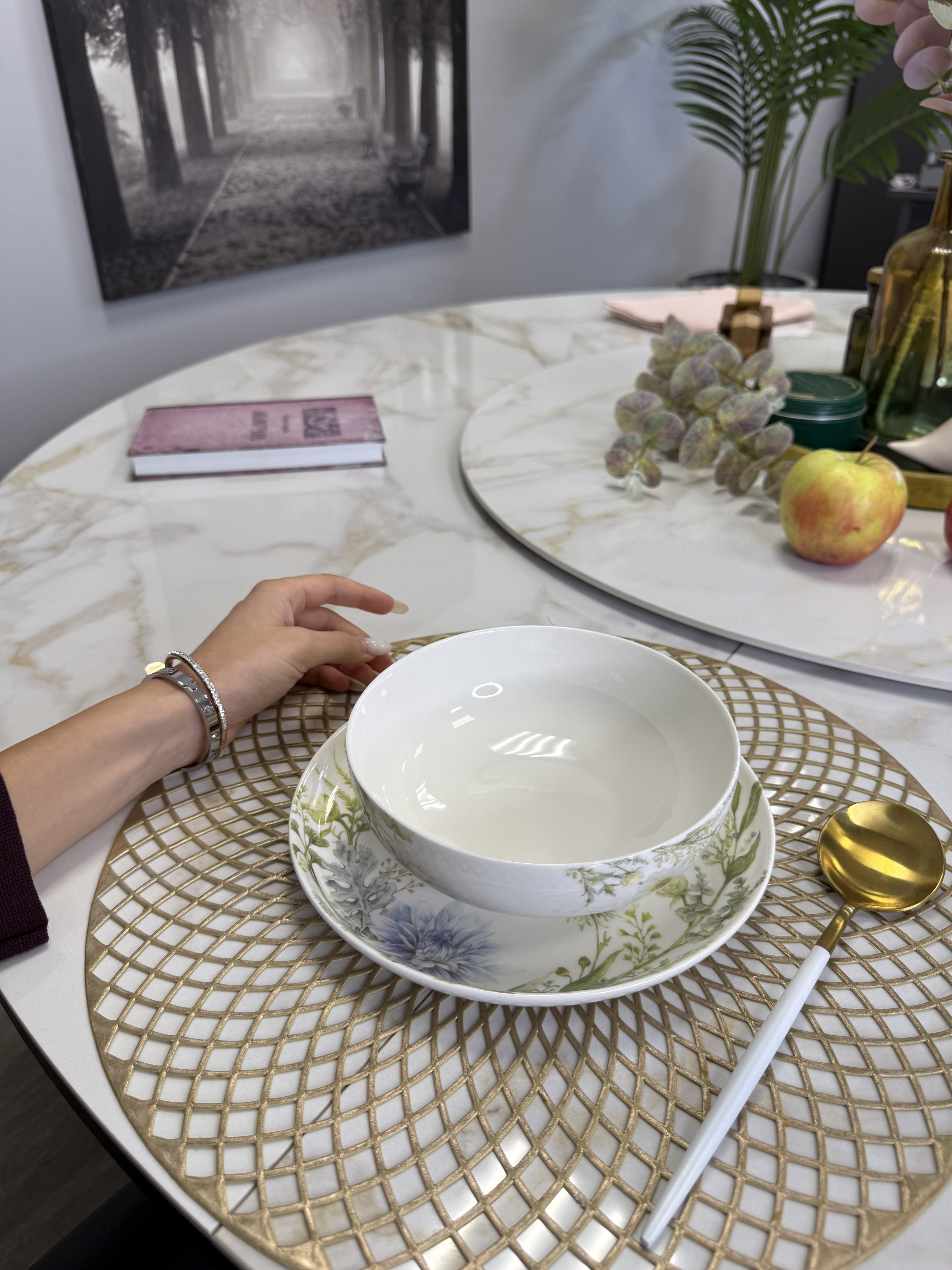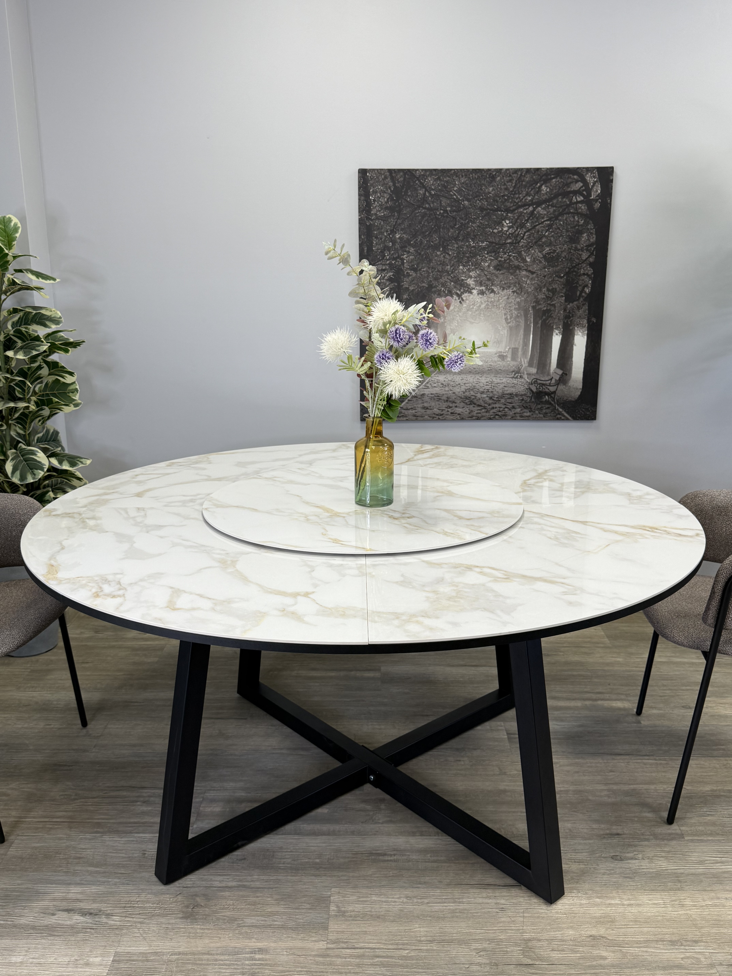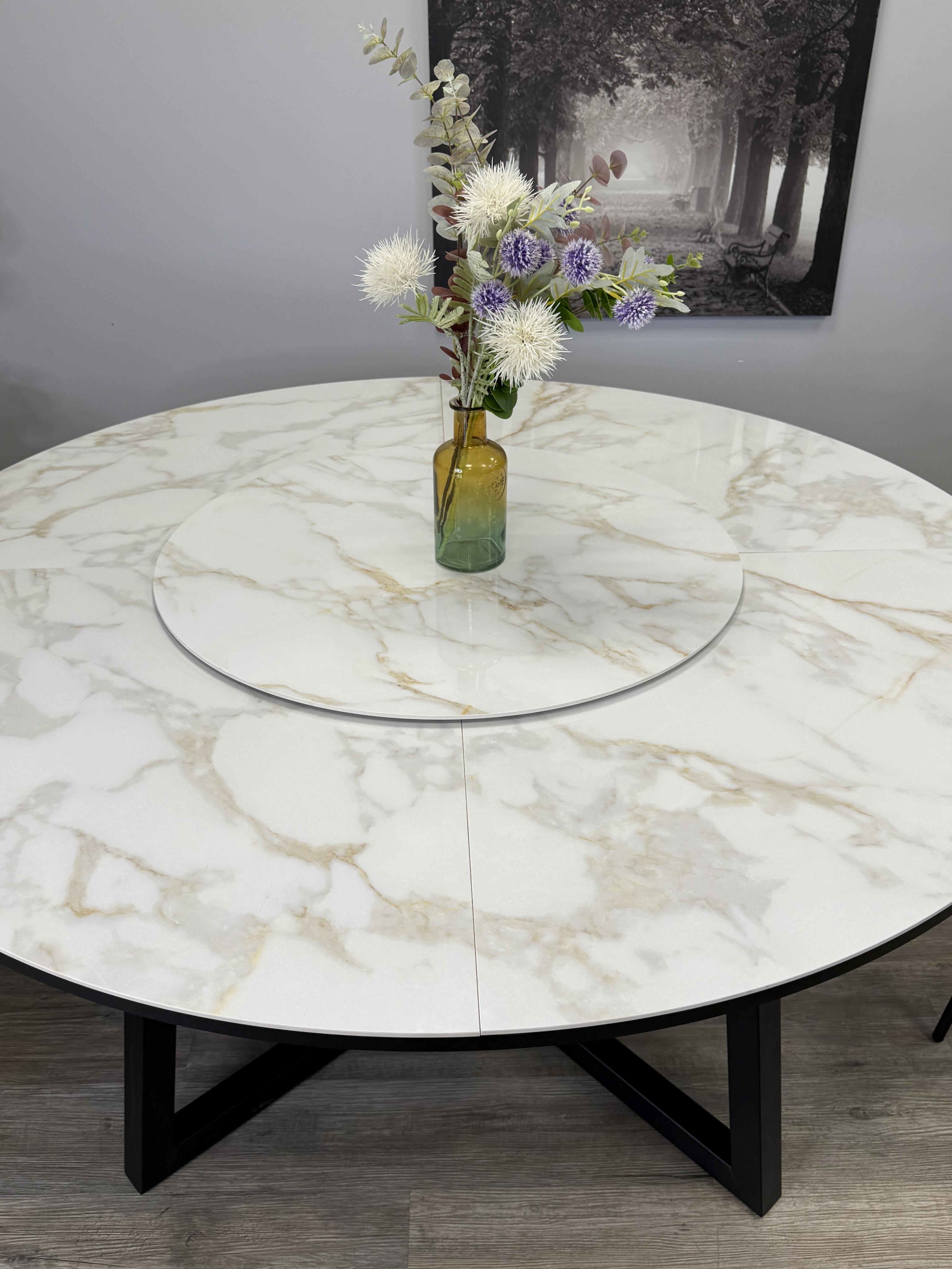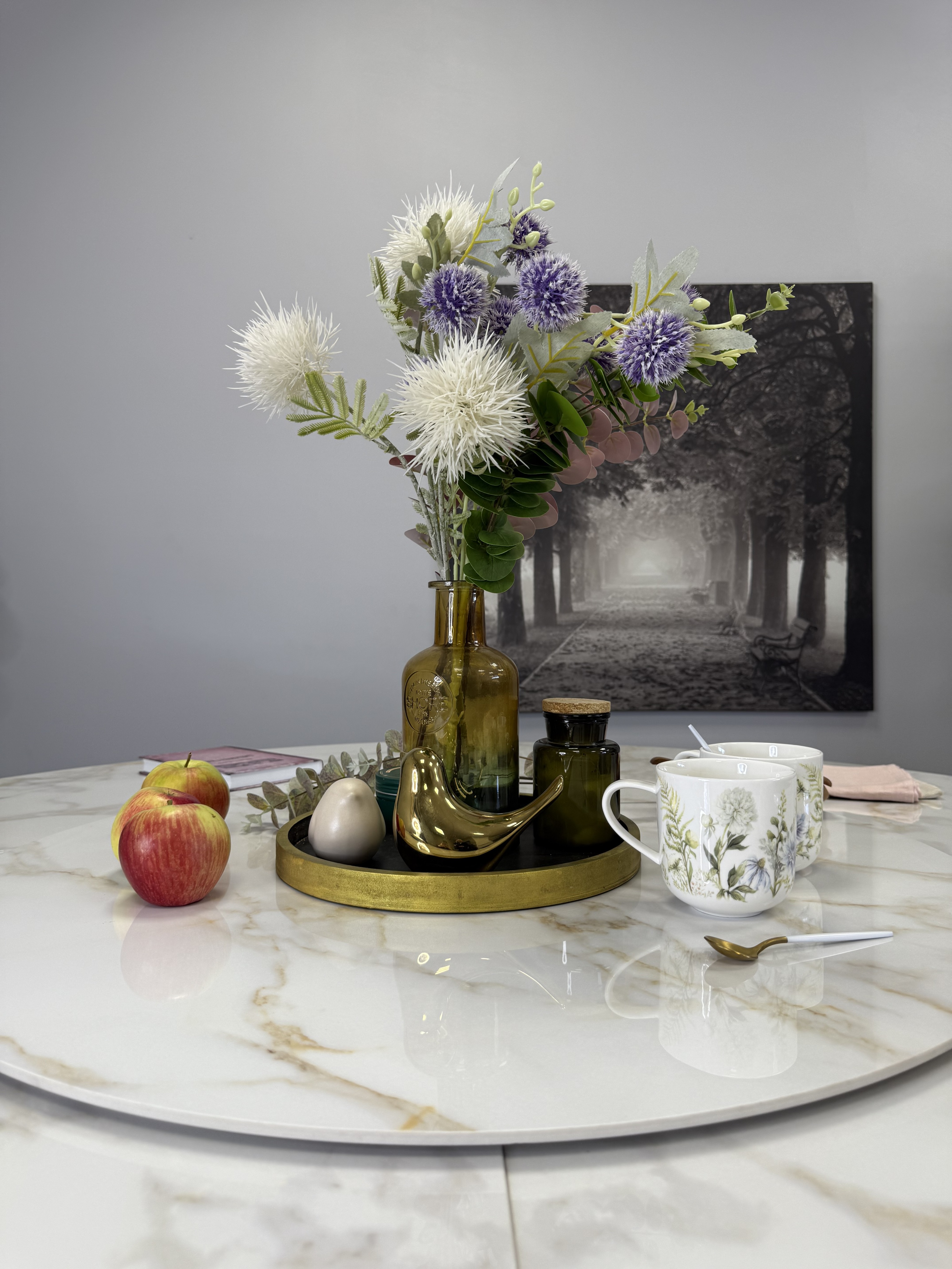 Большая двухсоставная столешница круглой формы, выполненная из высококачественной керамики, обеспечивает повышенную прочность и долговечность. Благодаря устойчивости к механическим повреждениям и термошокам, она идеально подходит для интенсивной эксплуатации.