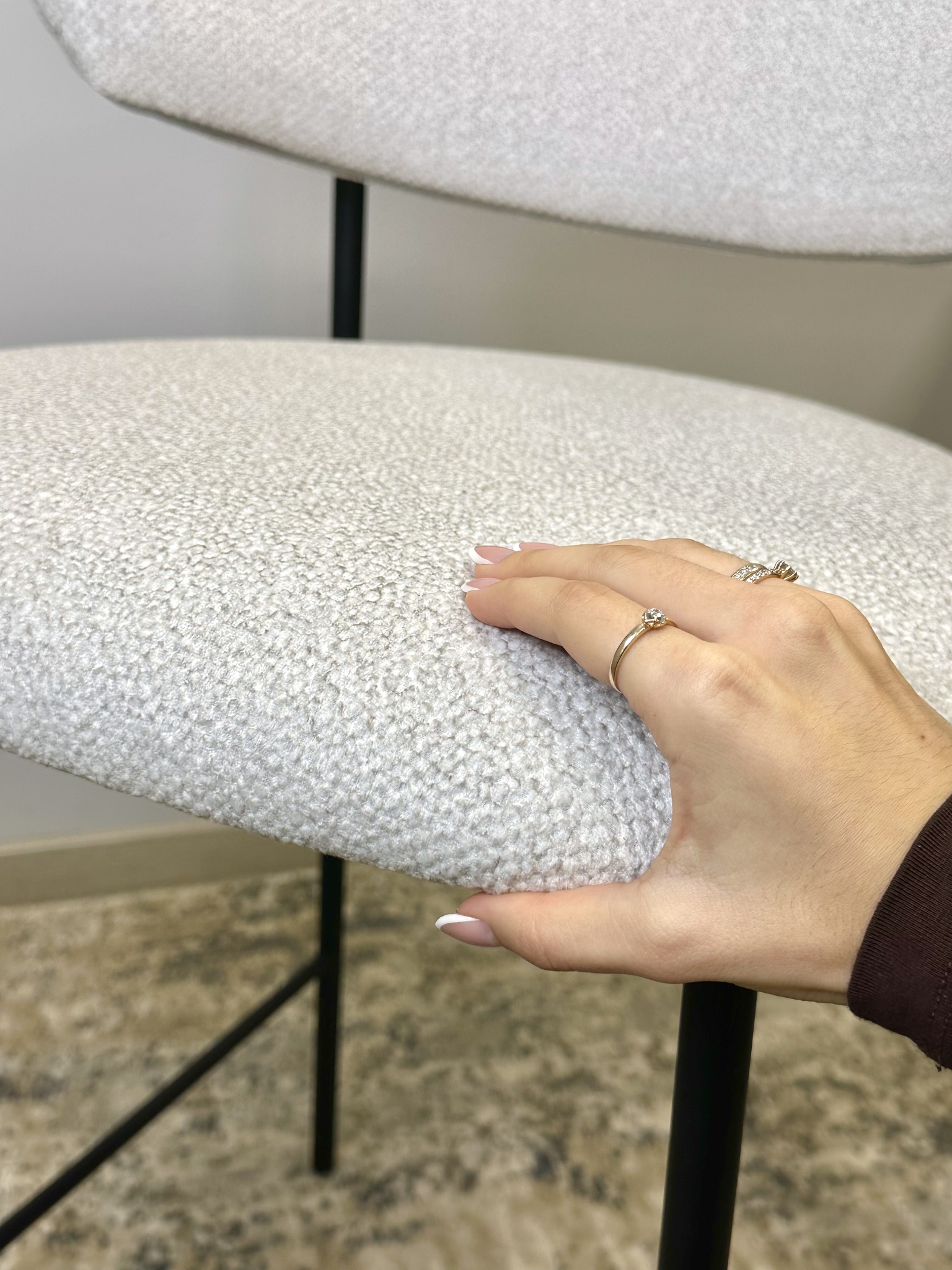 Крепкая конструкция. Высококачественная обивочная ткань. Эстетичность достигается благодаря сочетанию с классическими стульями.